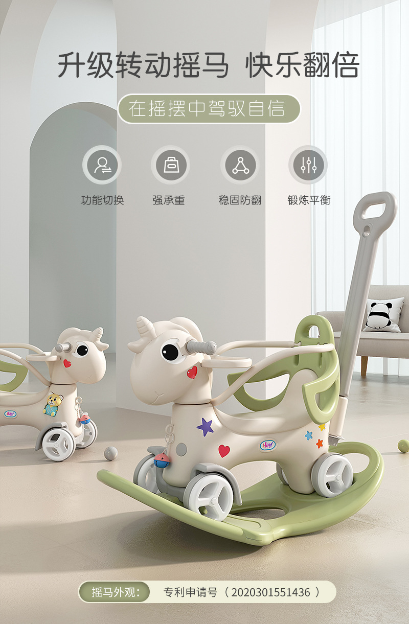 天马塑料木马儿童摇摇马宝宝溜溜车多功能玩具二合一可转头小摇椅