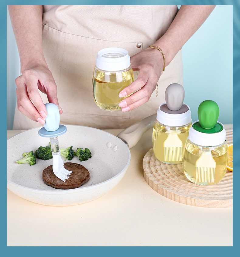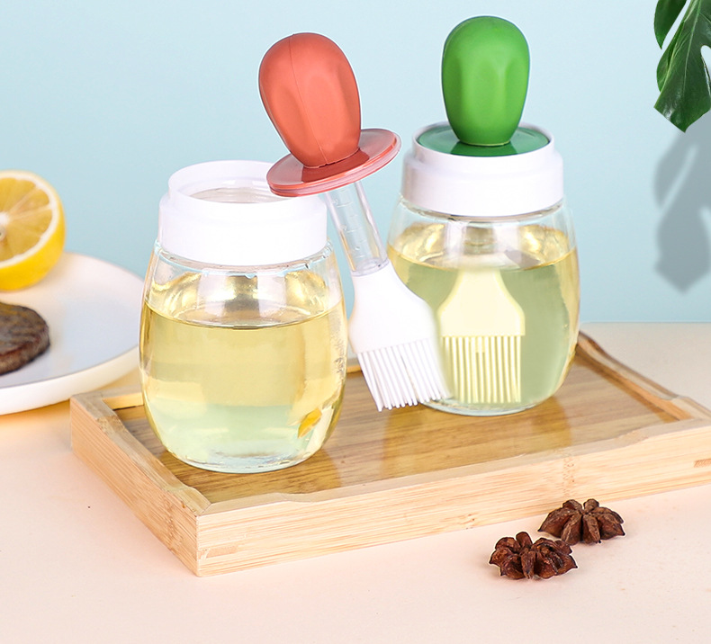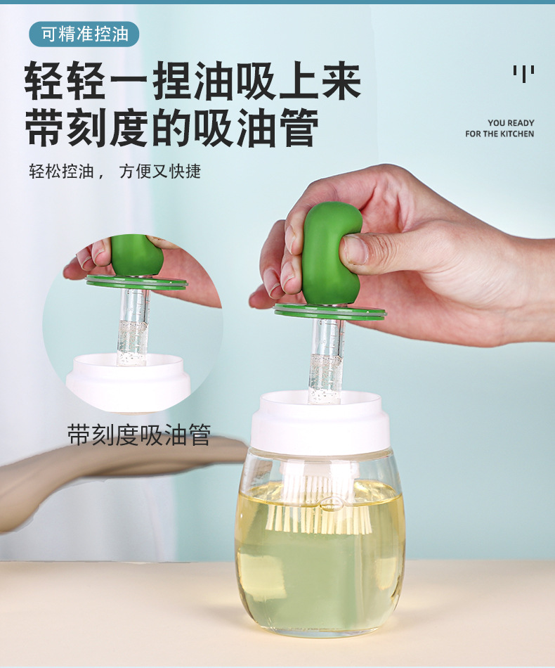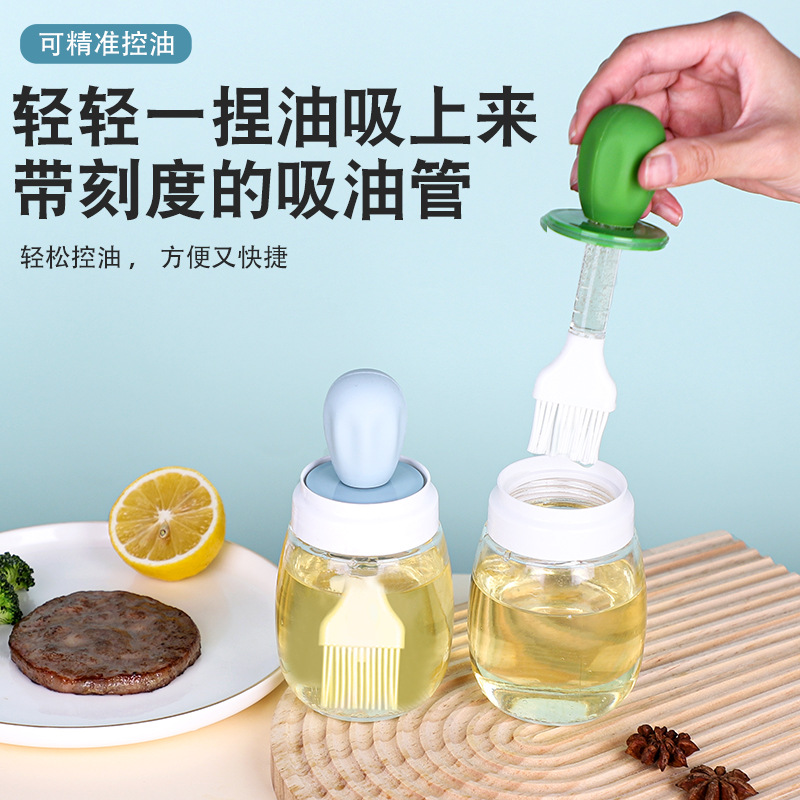 可控刷油瓶透明玻璃油壶厨房用大口带刻度吸油管瓶刷一体罐玻璃瓶