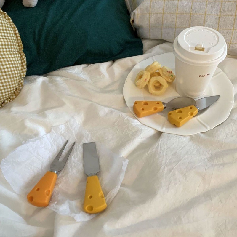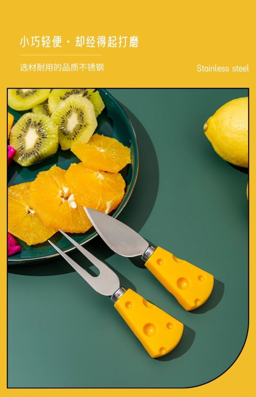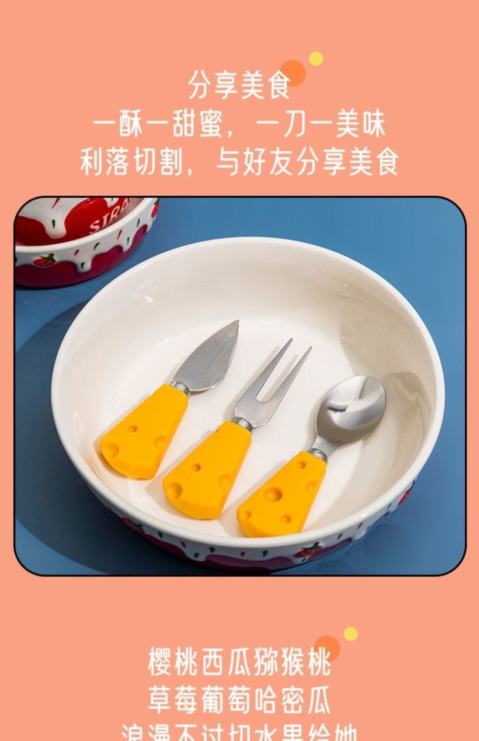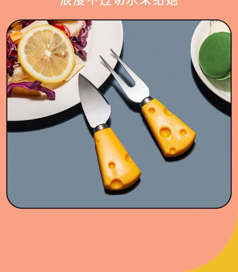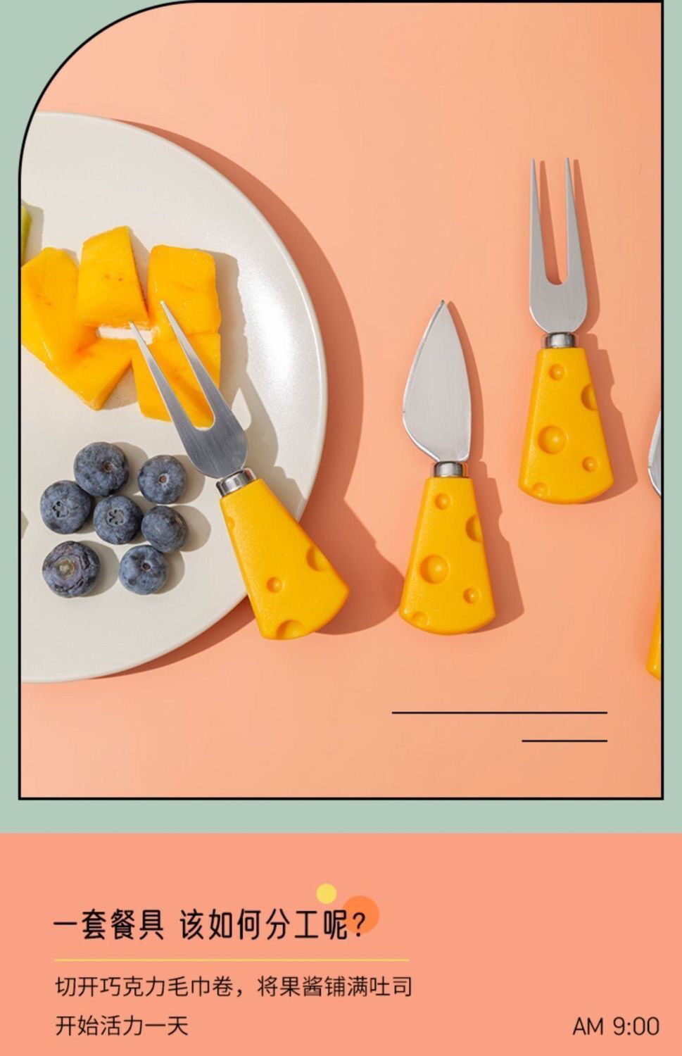奶酪芝士水果刀叉子可爱西餐便携餐具手柄刀勺子水果叉抹酱小叉子