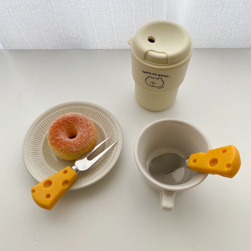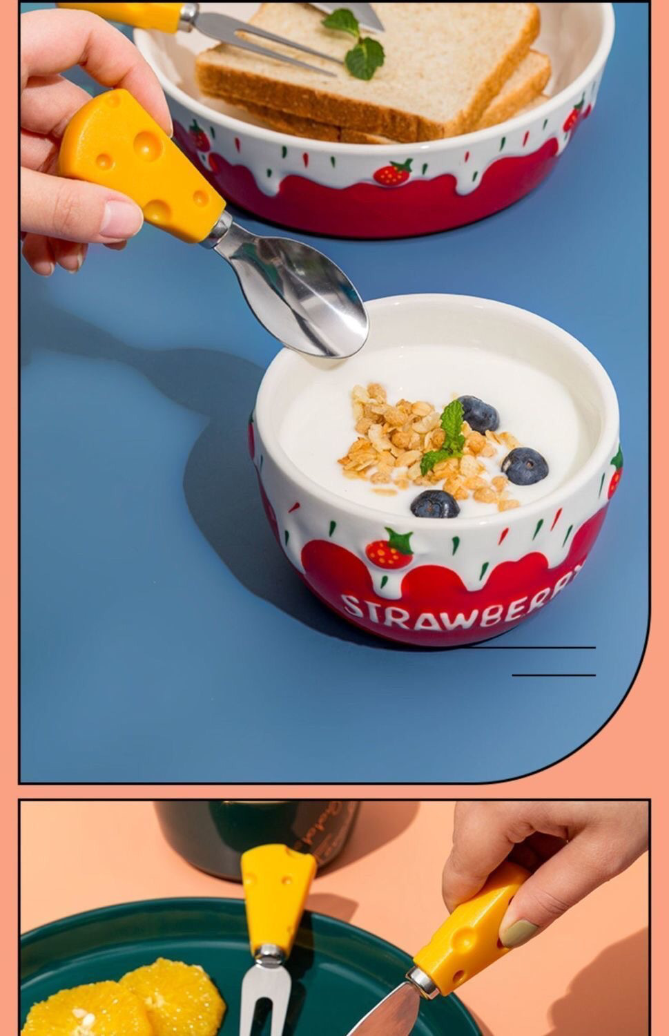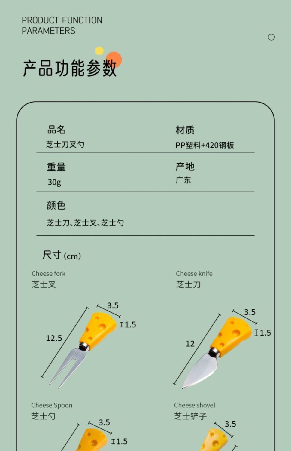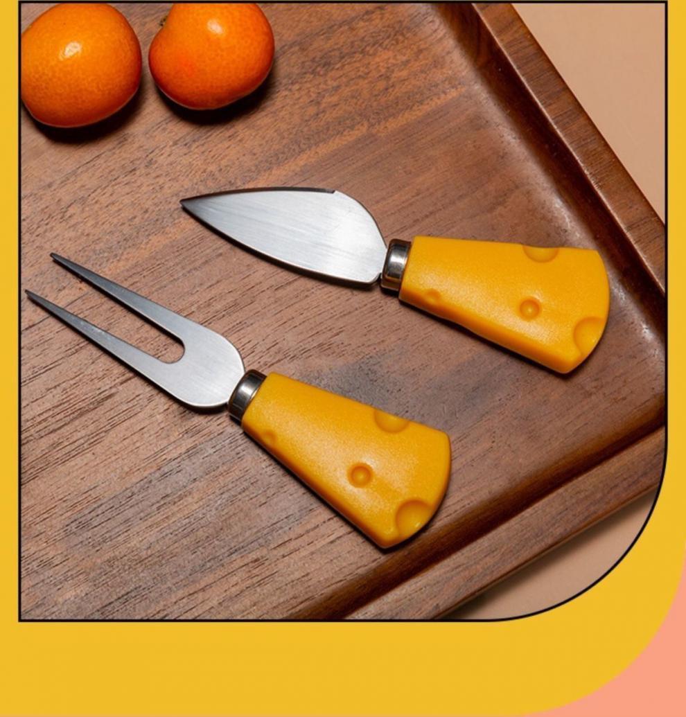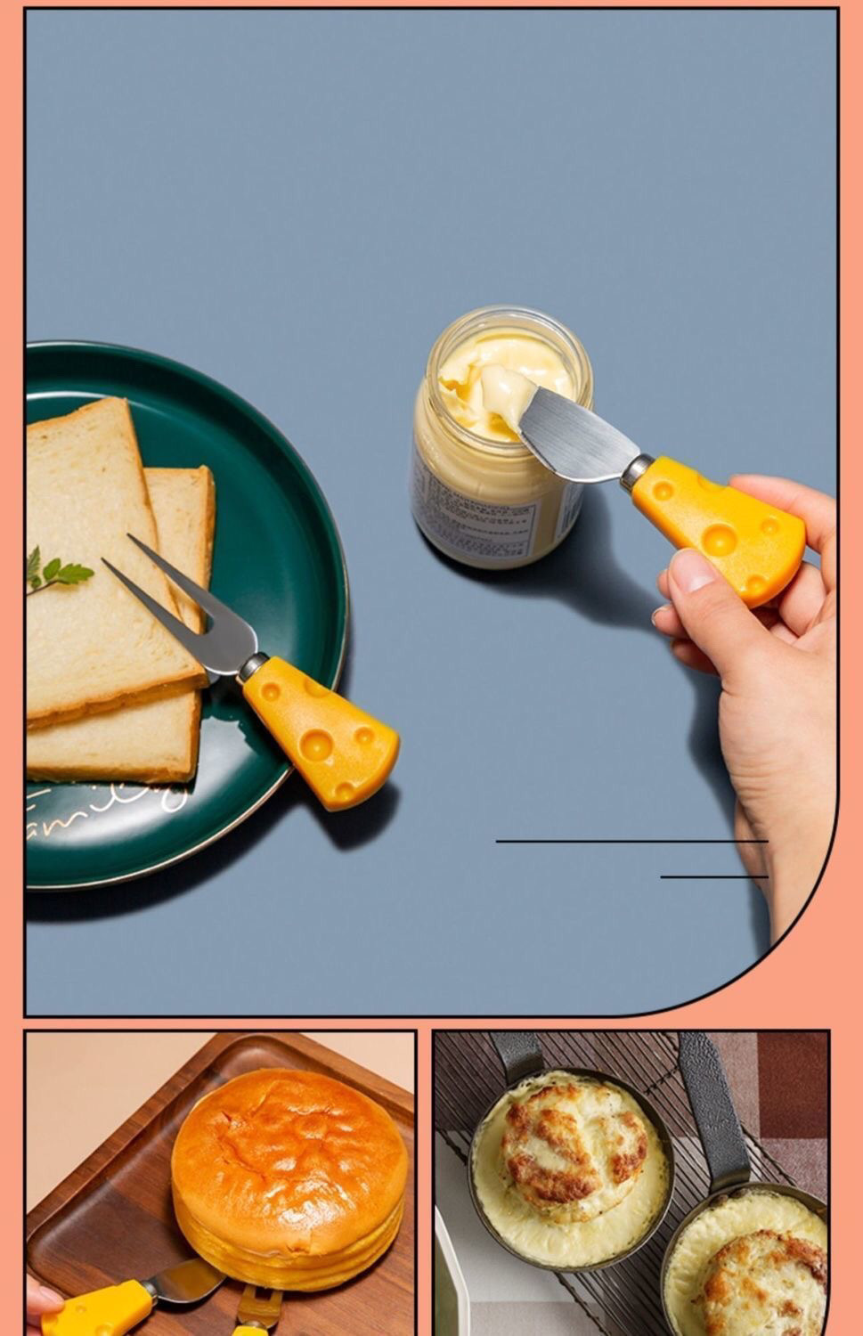 奶酪芝士水果刀叉子可爱西餐便携餐具手柄刀勺子水果叉抹酱小叉子