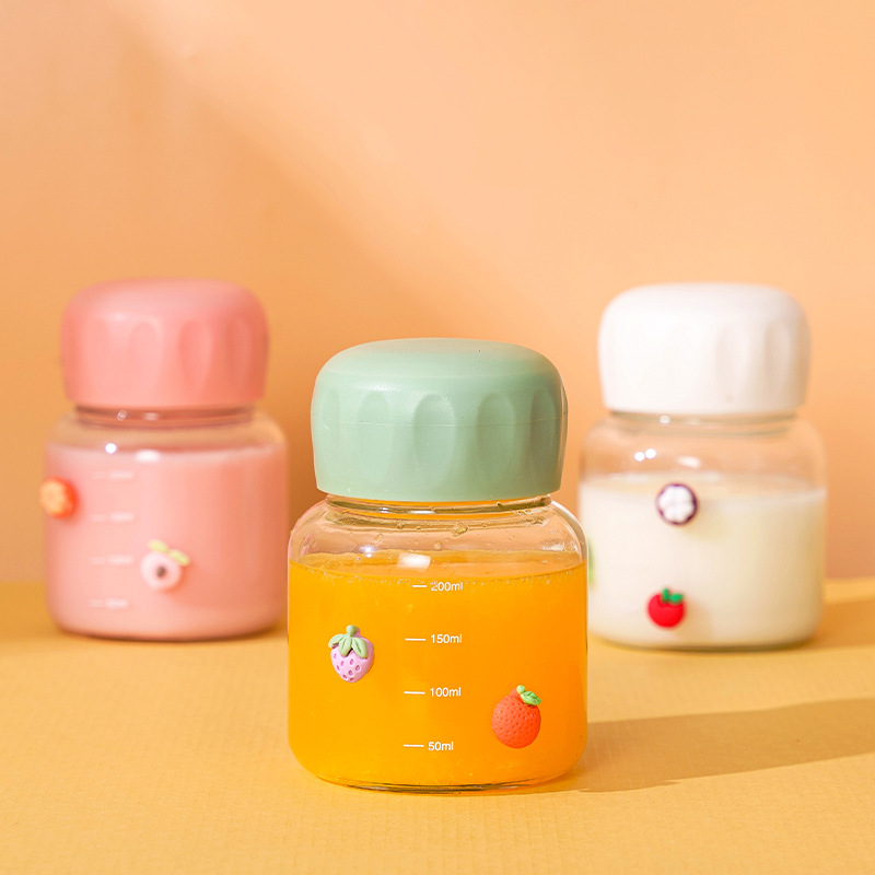 小可爱胖胖杯玻璃水杯燕麦分装牛奶杯学生便携带网红杯迷你摇摇杯