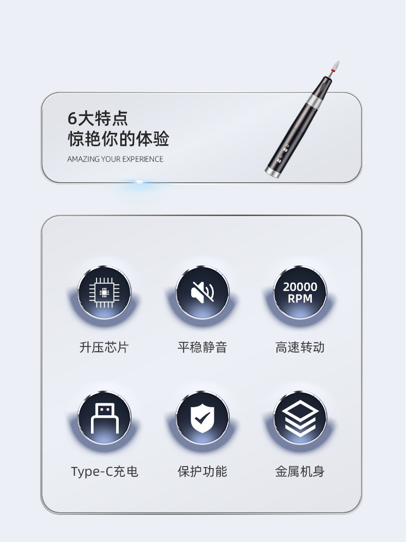 新款充电卸美甲甲蓄电款打磨笔前置处理打磨机2000转数