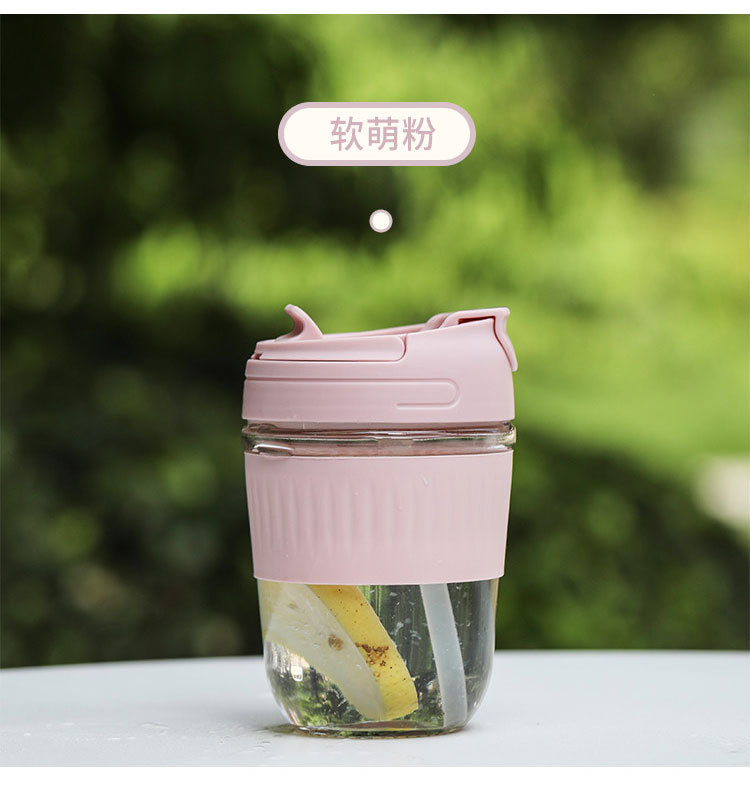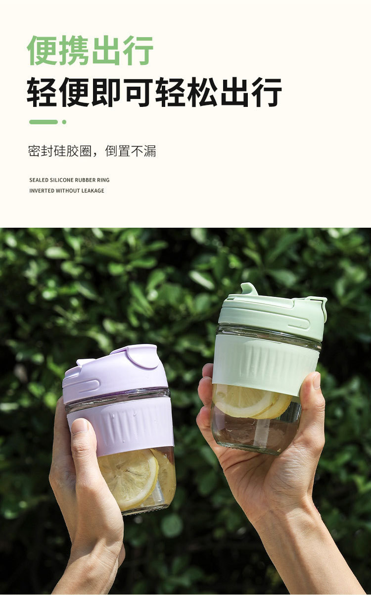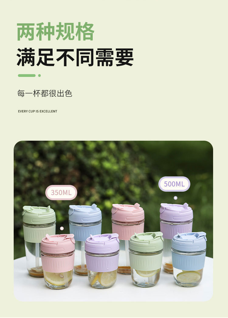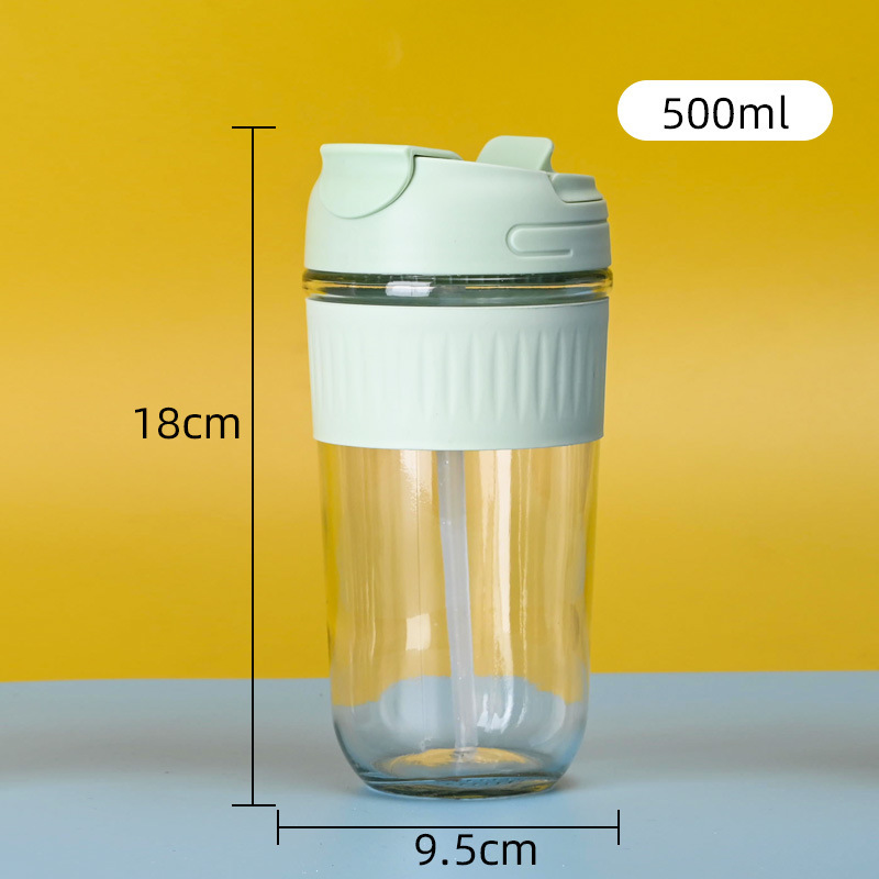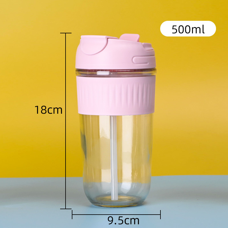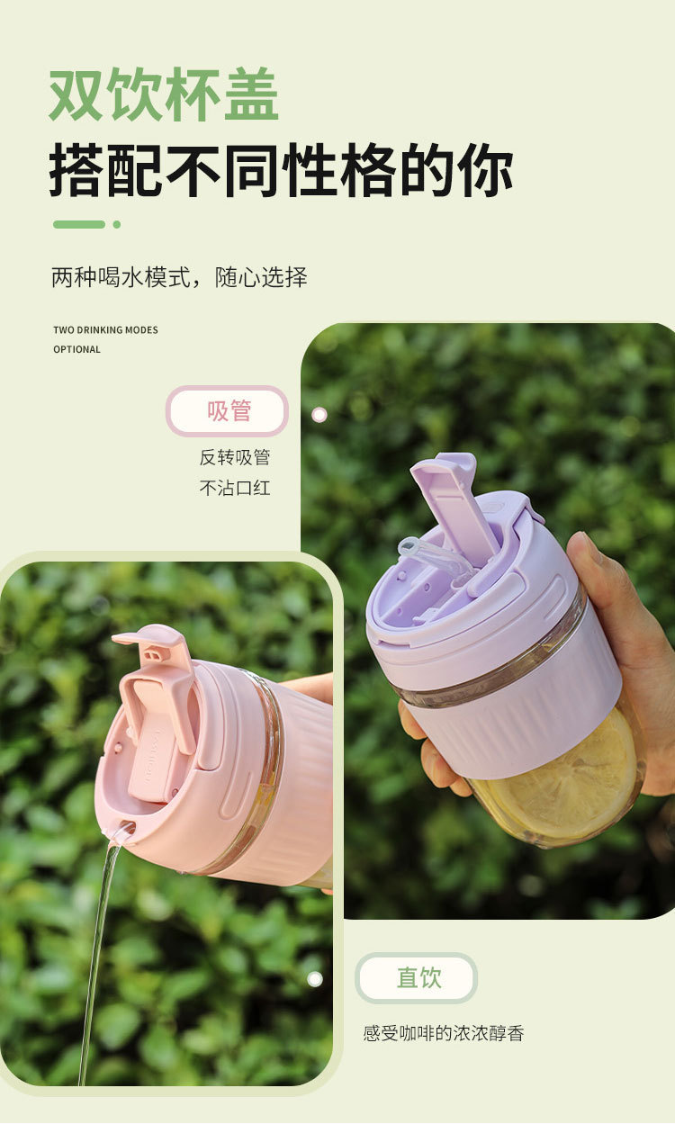 500ml透明玻璃水杯夏季高颜值家用吸管杯便捷咖啡杯双饮玻璃杯