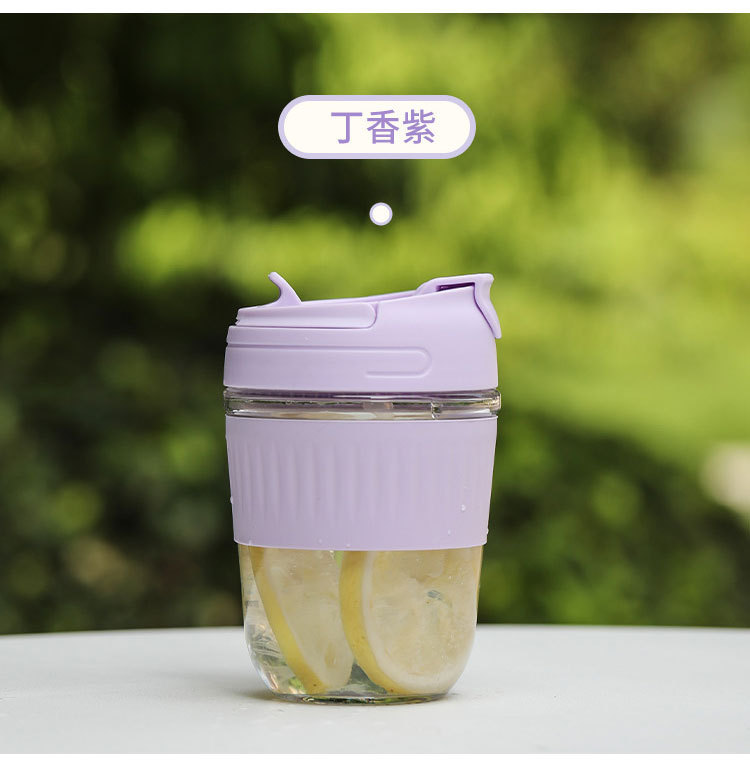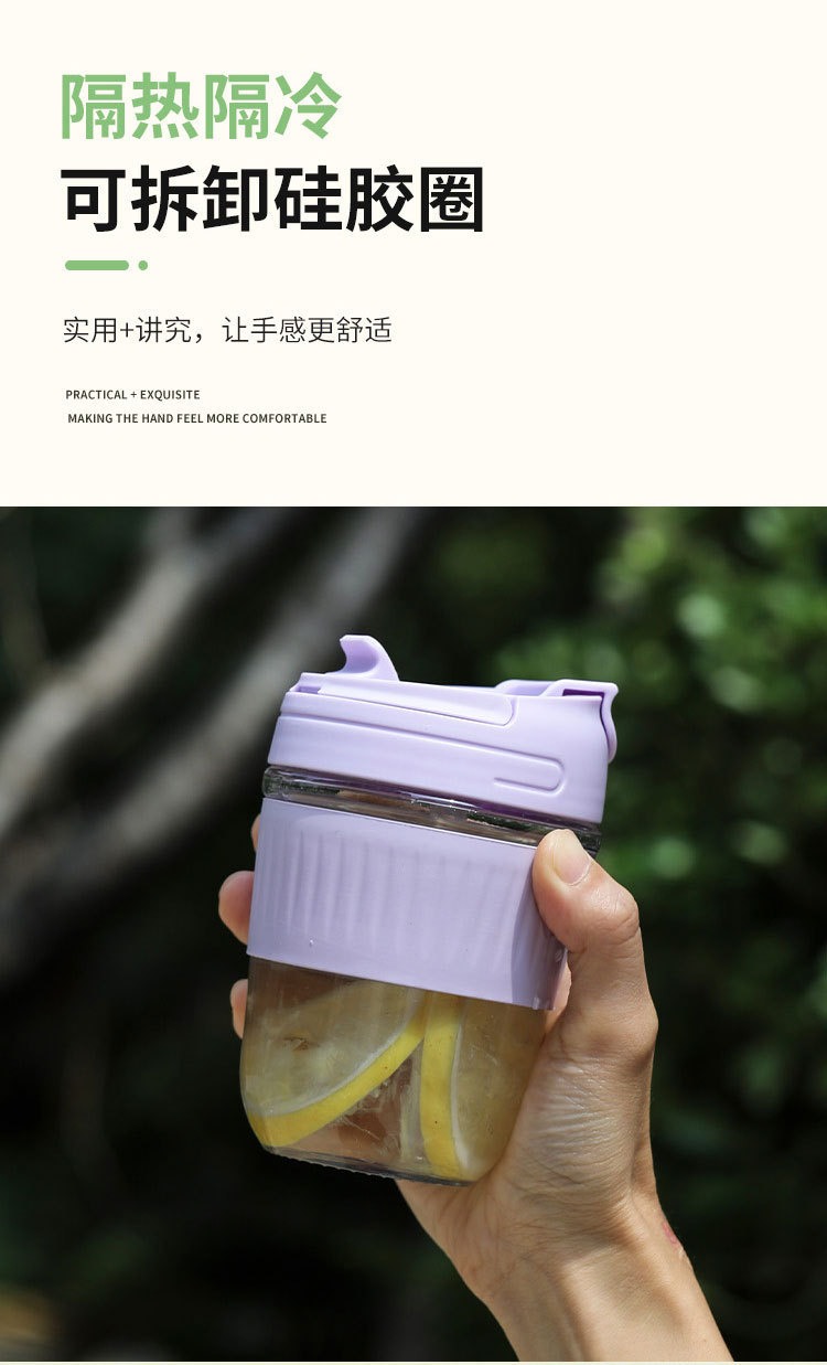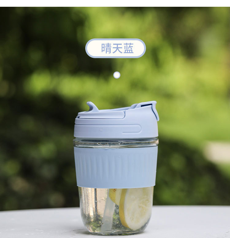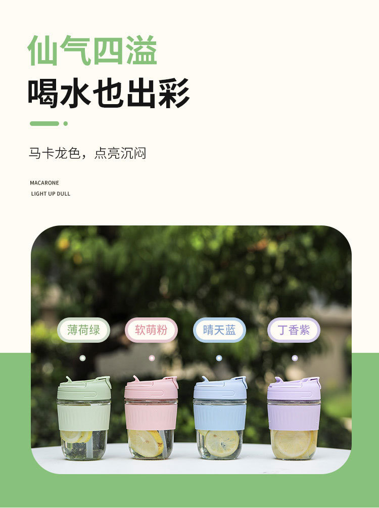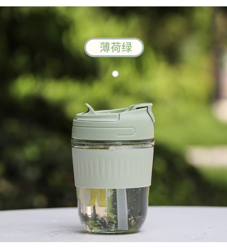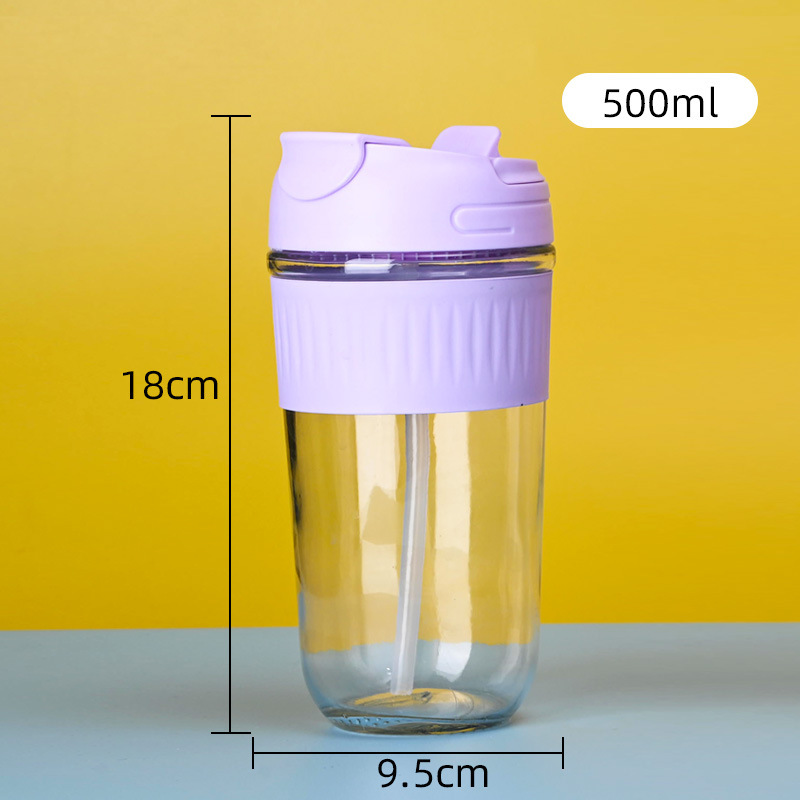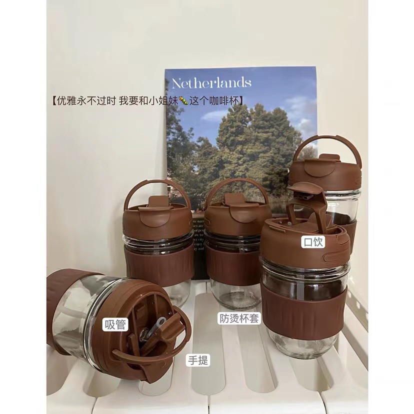 500ml透明玻璃水杯夏季高颜值家用吸管杯便捷咖啡杯双饮玻璃杯