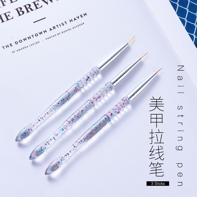 170 3支亚克力闪粉杆美甲笔拉线勾花笔彩绘笔亚克力杆美甲工具