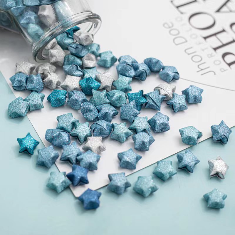 星星折纸渐变色夜光幸运星纸五角星折纸闪钻发光DIY手工卡通 折纸