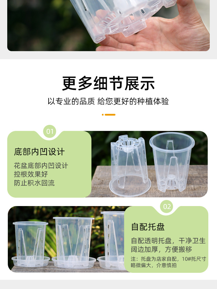 透明青山控根盆兰花水苔蝴蝶兰花盆塑料透气镂空大号花盆家用