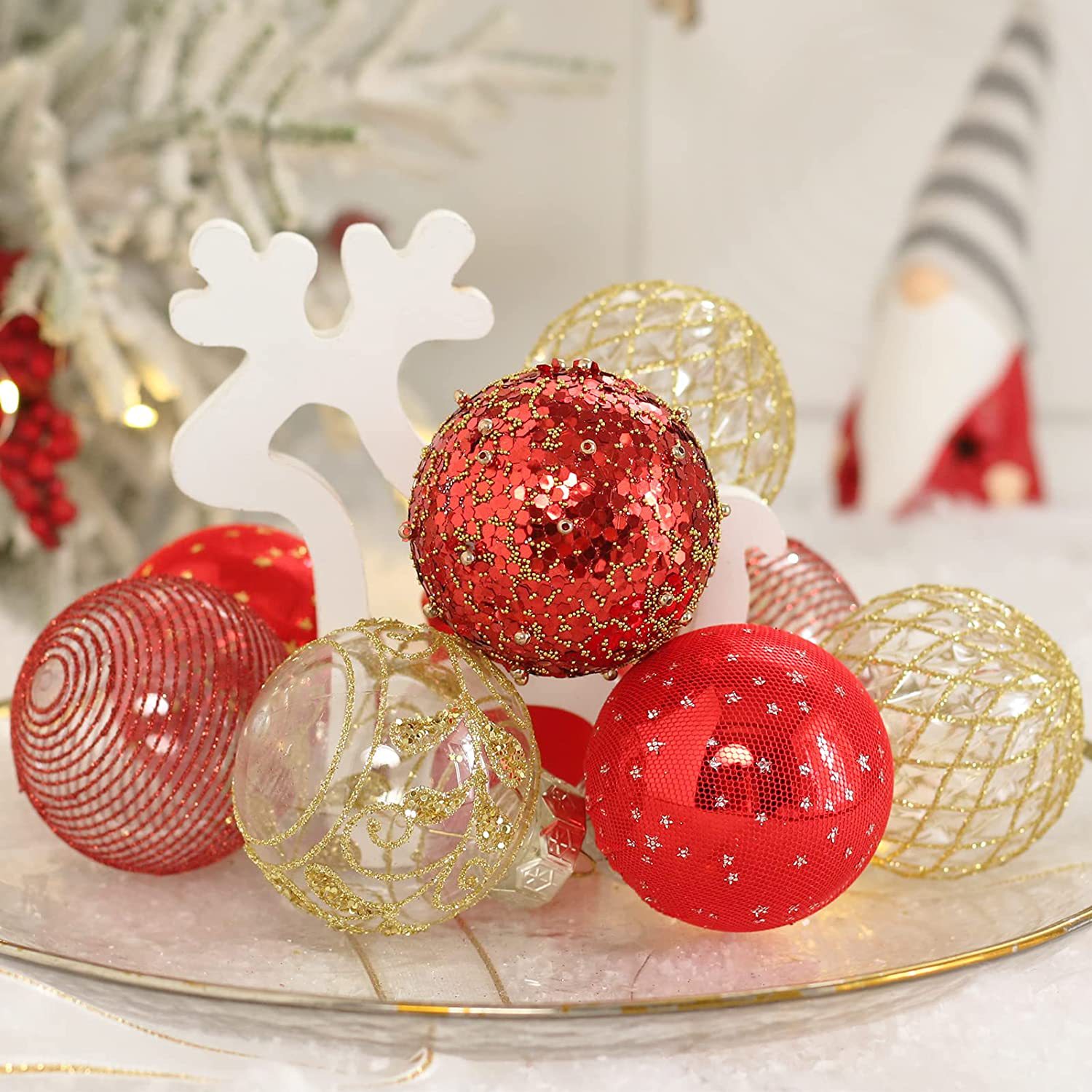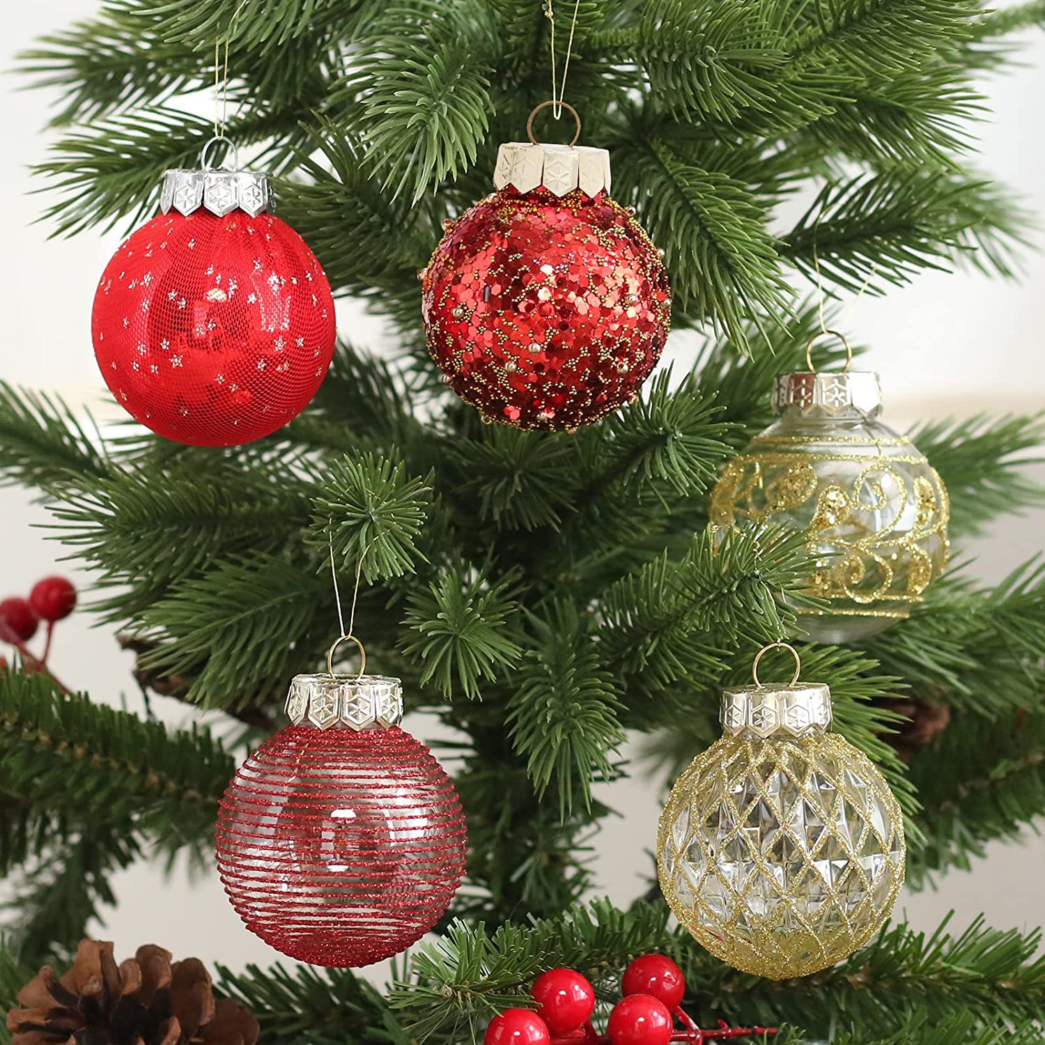 跨境 圣诞节装饰品 6cm/25pcs电镀彩绘圣诞球套装 圣诞树挂件批发