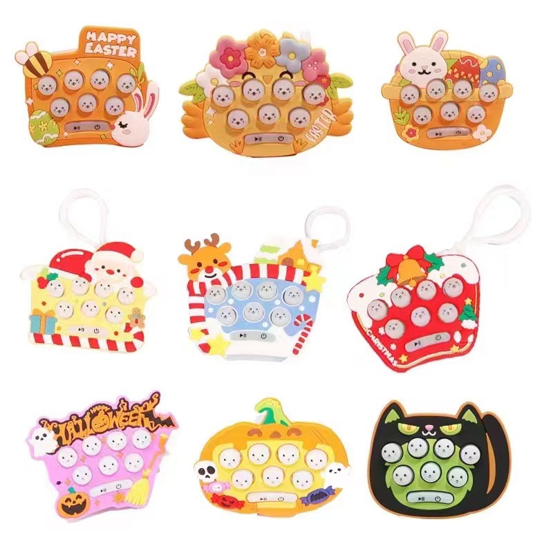 跨境迷你掌上打地鼠游戏机儿童过关速推机益智解压泡泡钥匙扣挂件