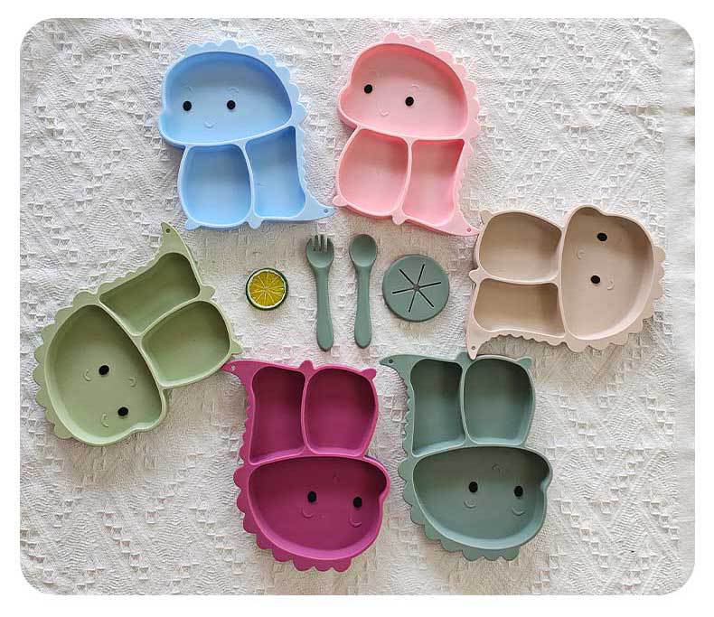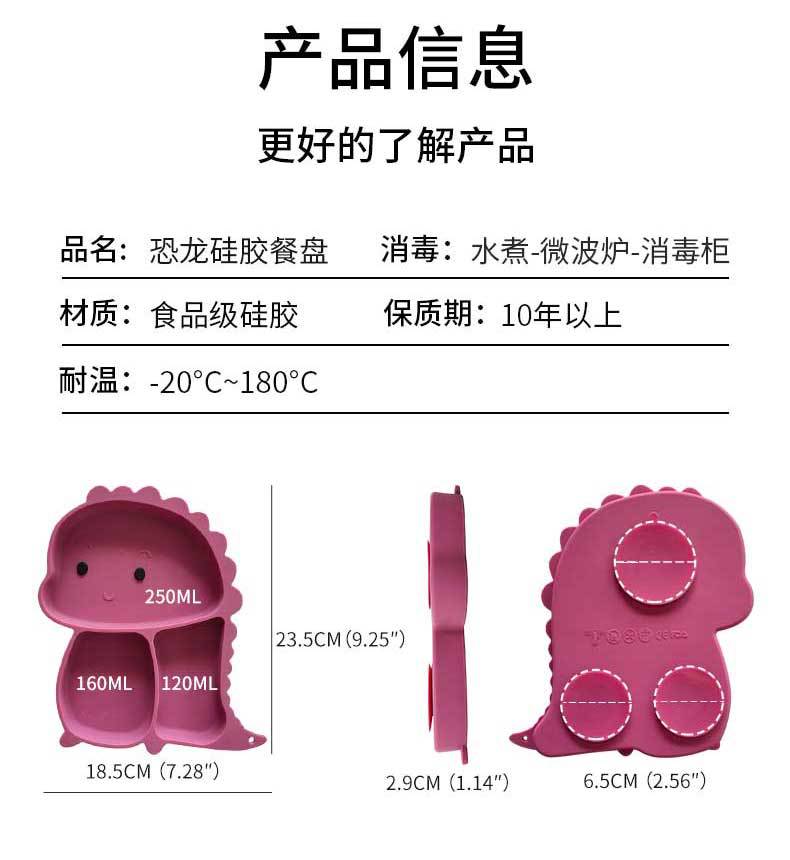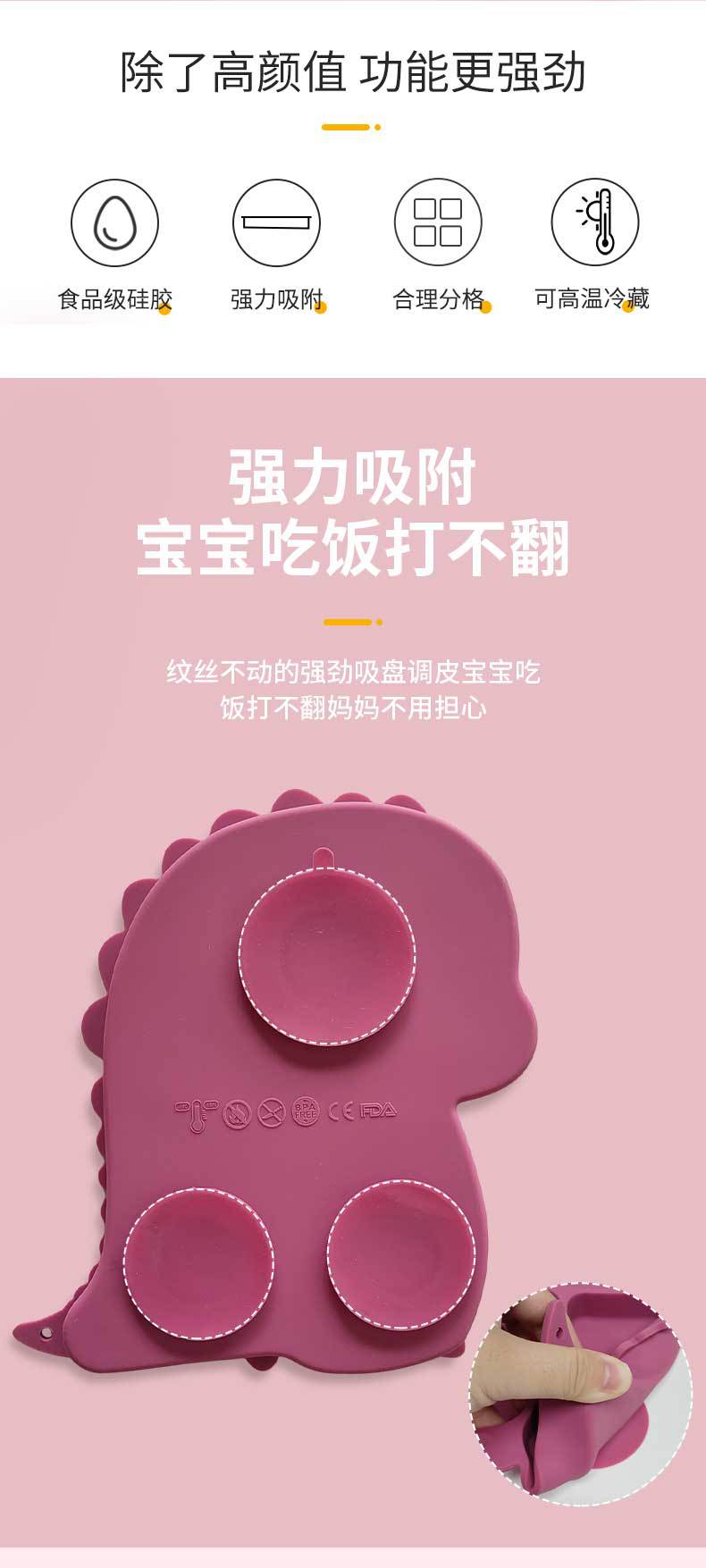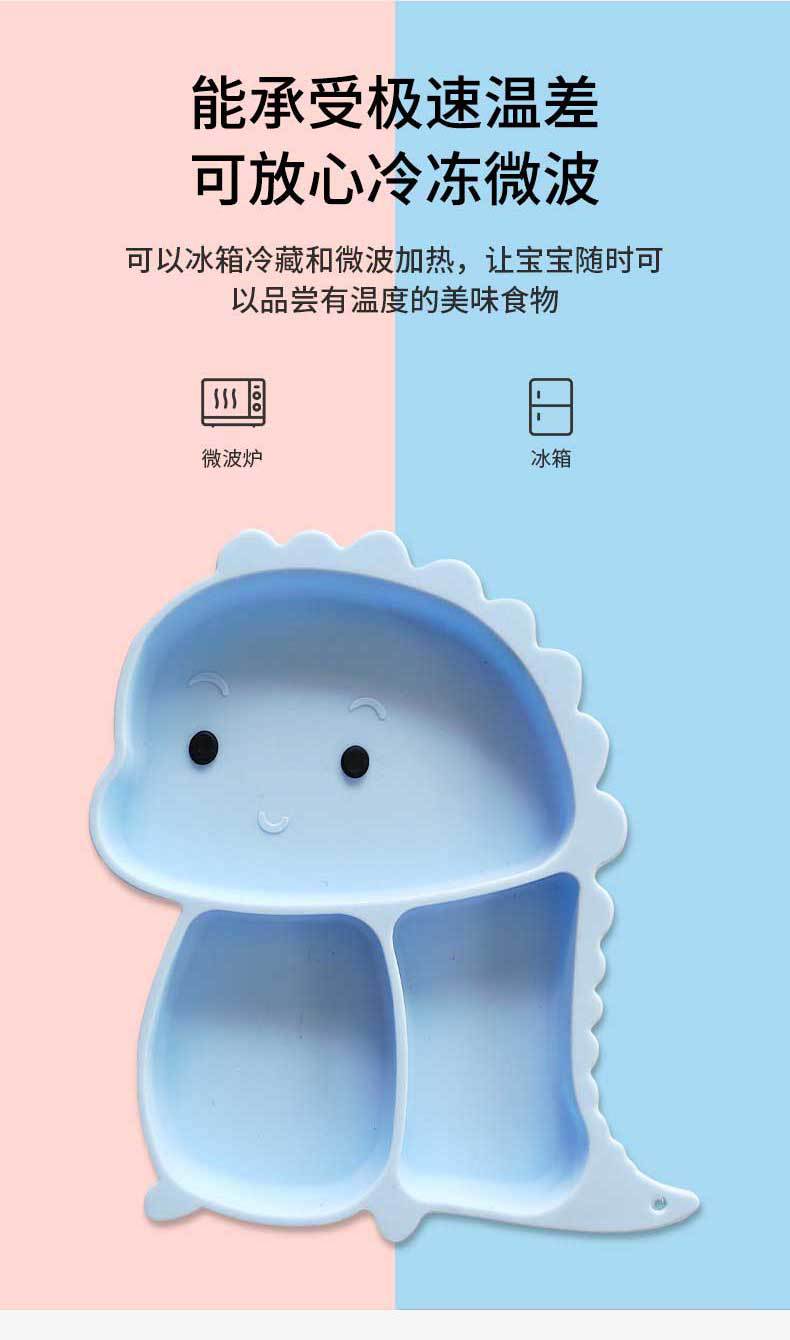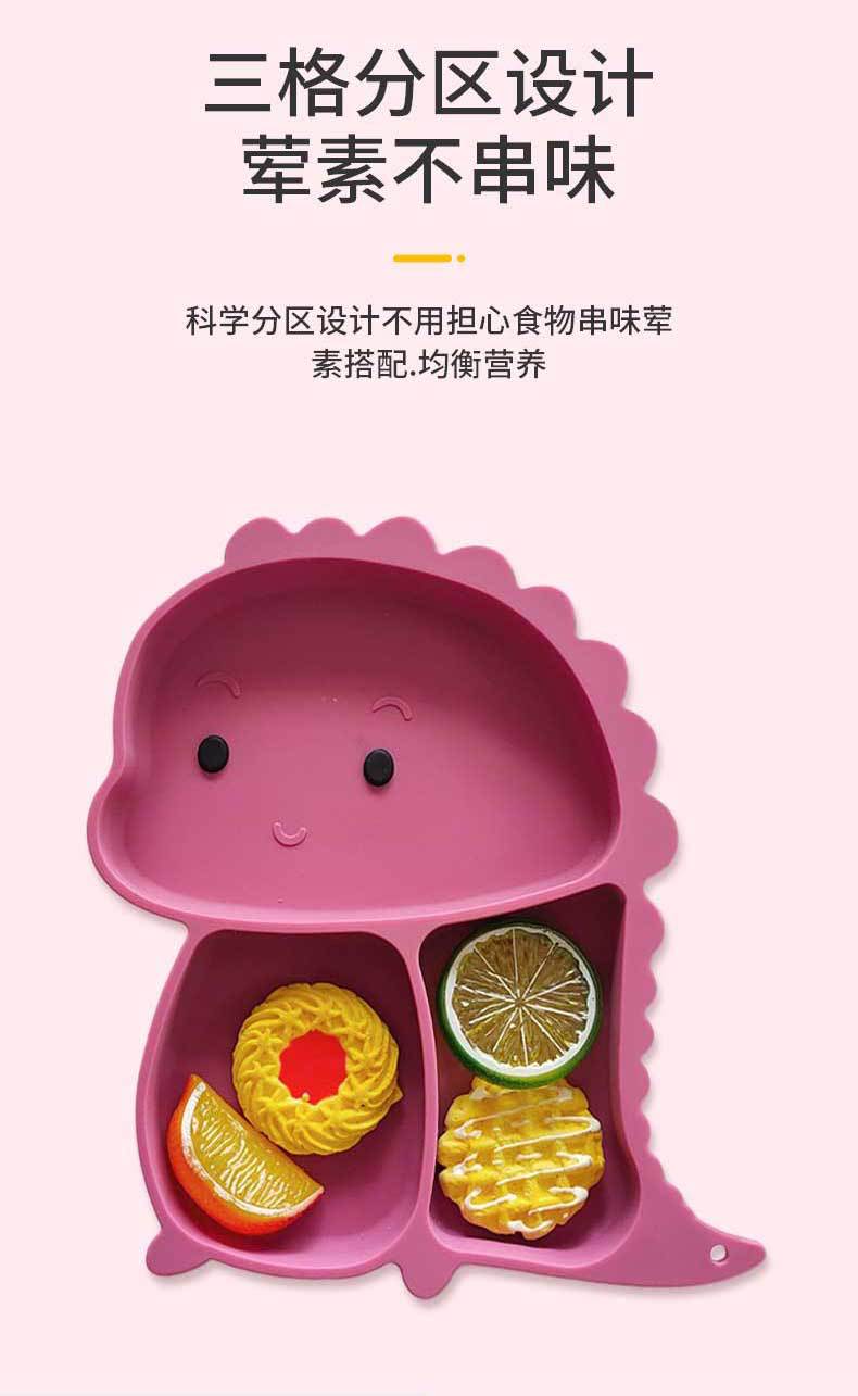 跨境恐龙儿童硅胶餐盘吸盘一体式碗套装宝宝硅胶餐具卡通分格餐盘