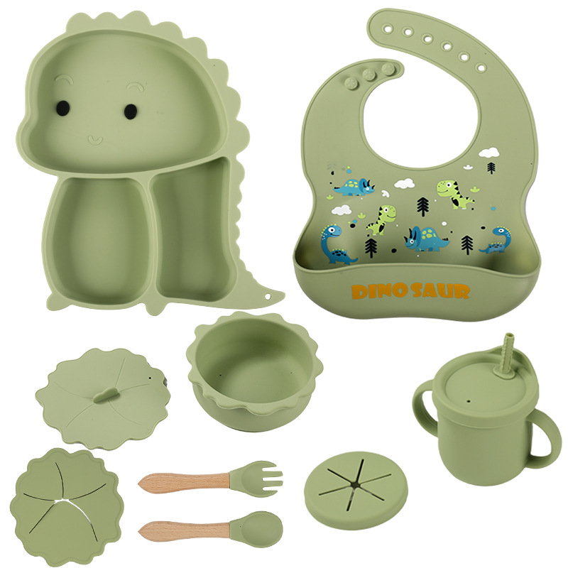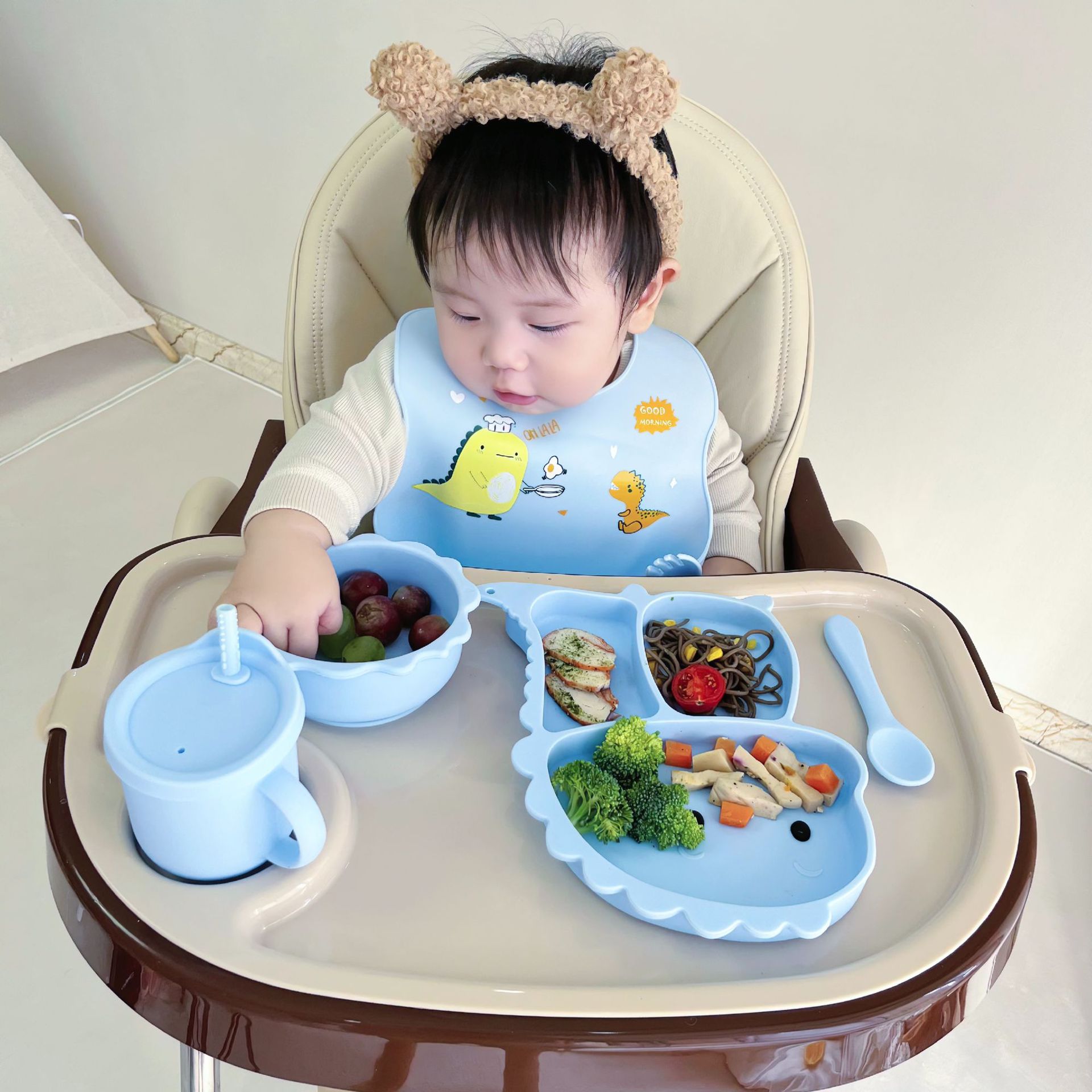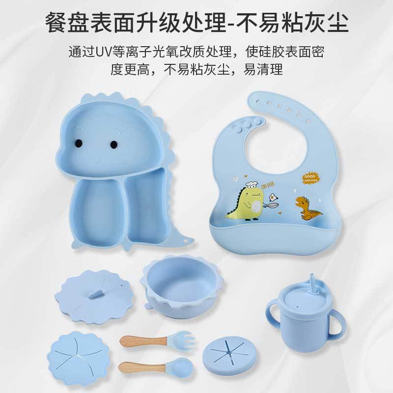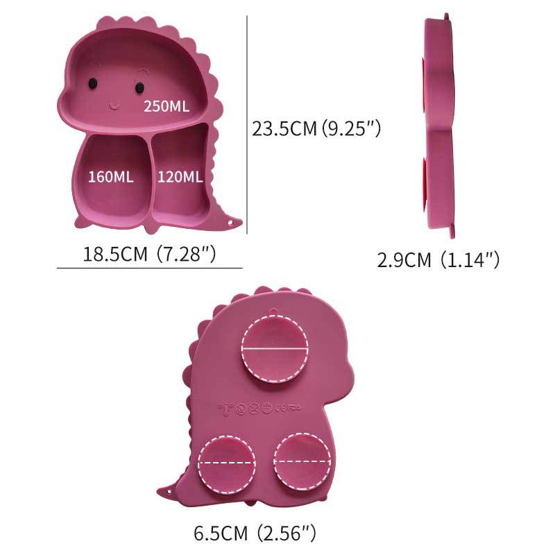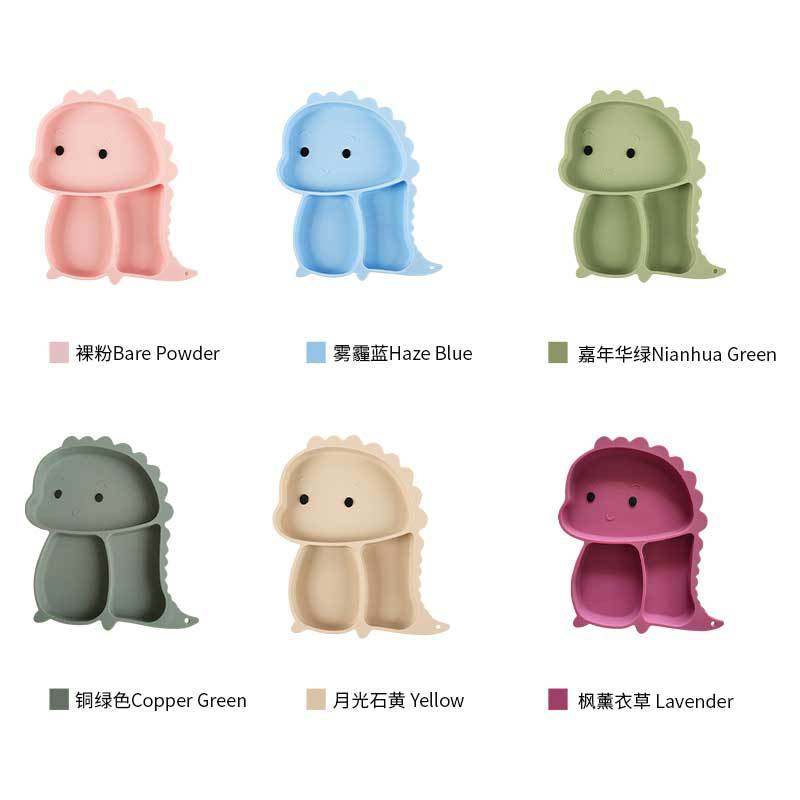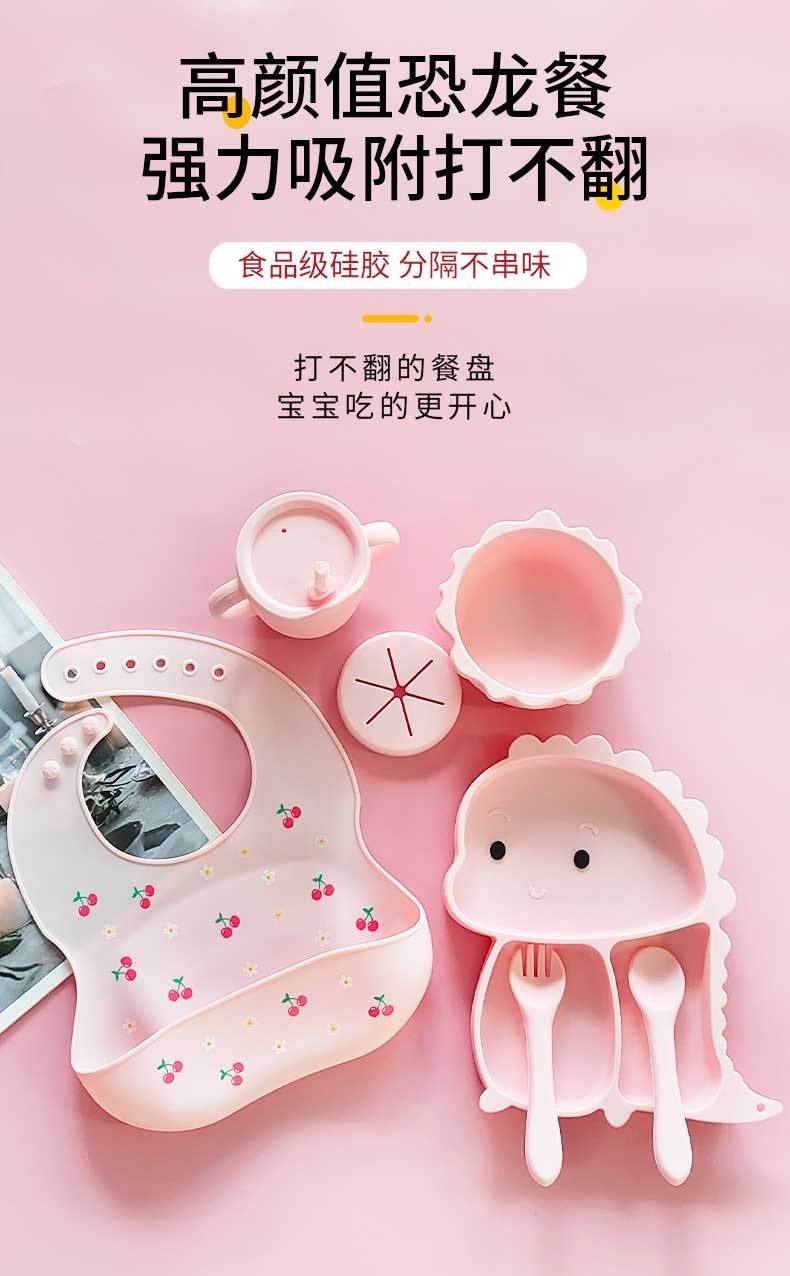 跨境恐龙儿童硅胶餐盘吸盘一体式碗套装宝宝硅胶餐具卡通分格餐盘