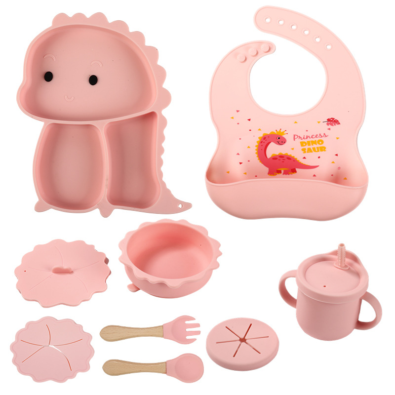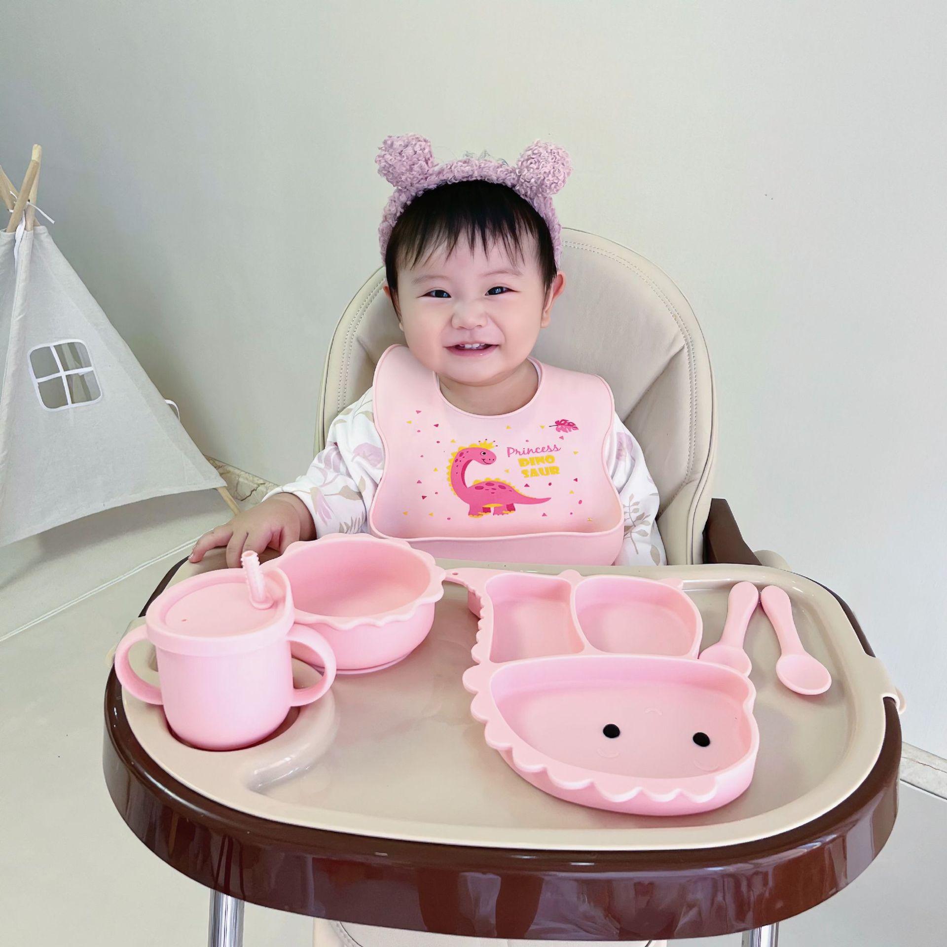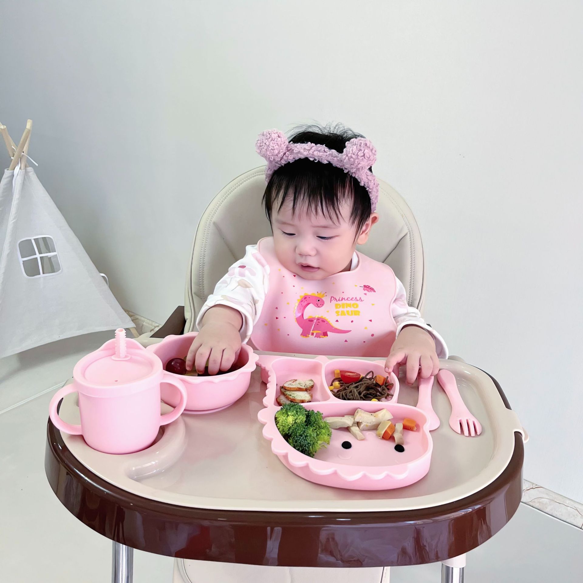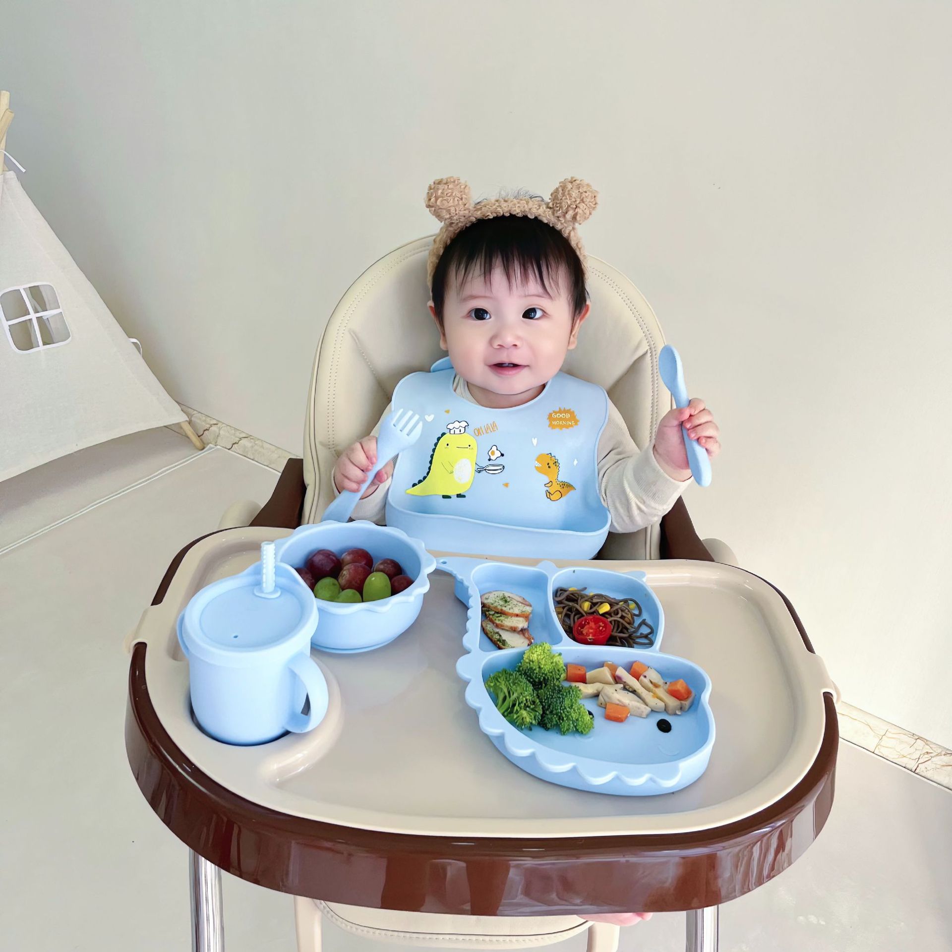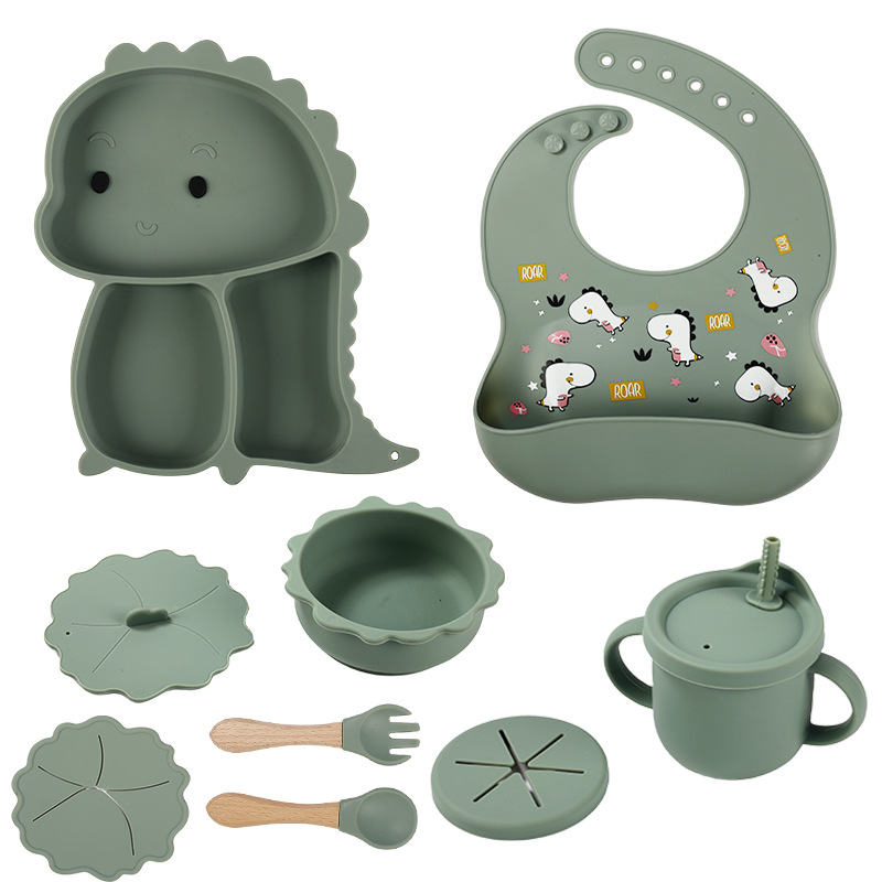 跨境恐龙儿童硅胶餐盘吸盘一体式碗套装宝宝硅胶餐具卡通分格餐盘