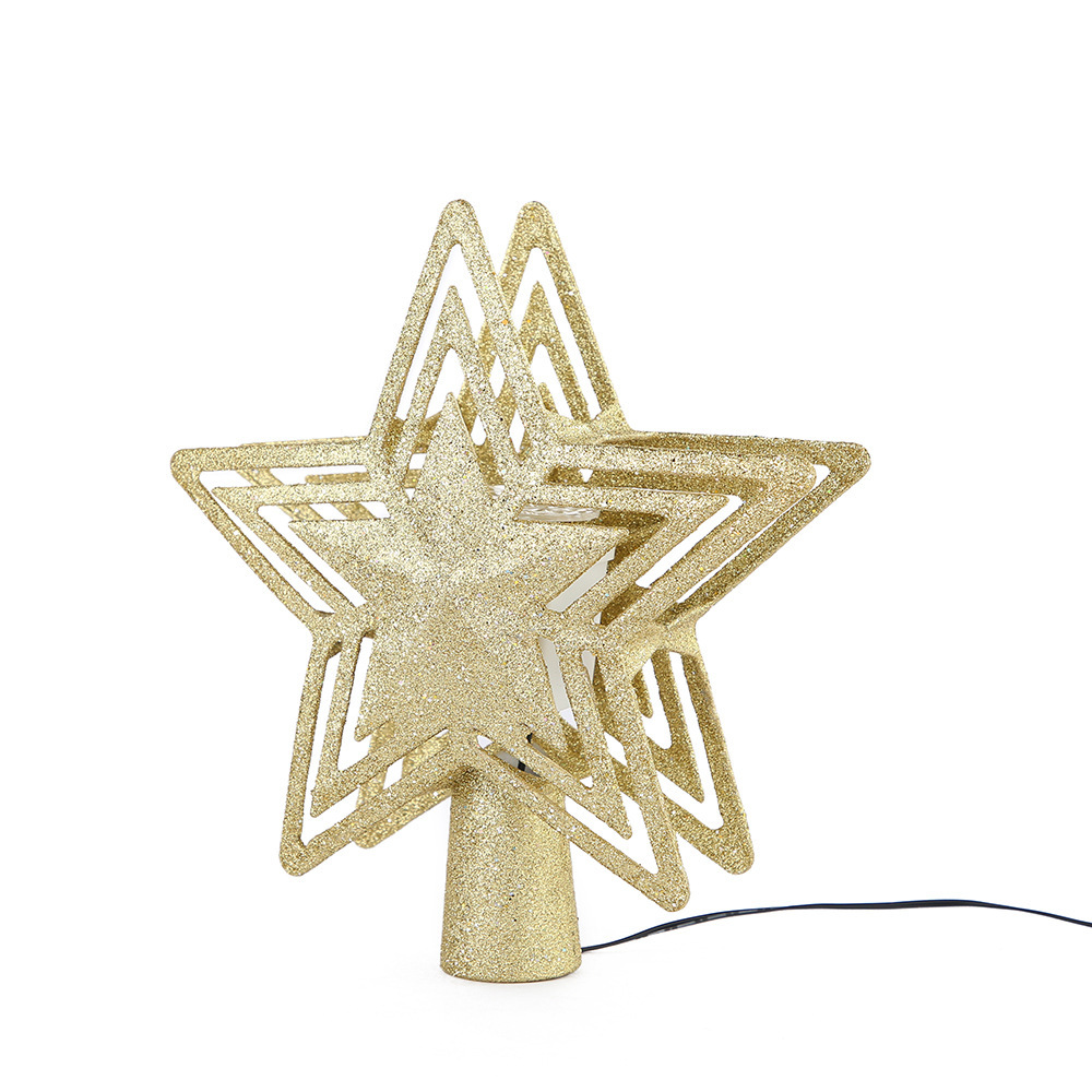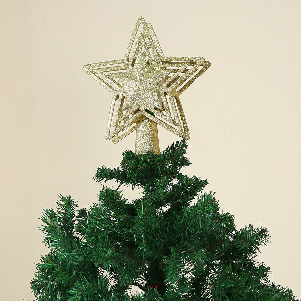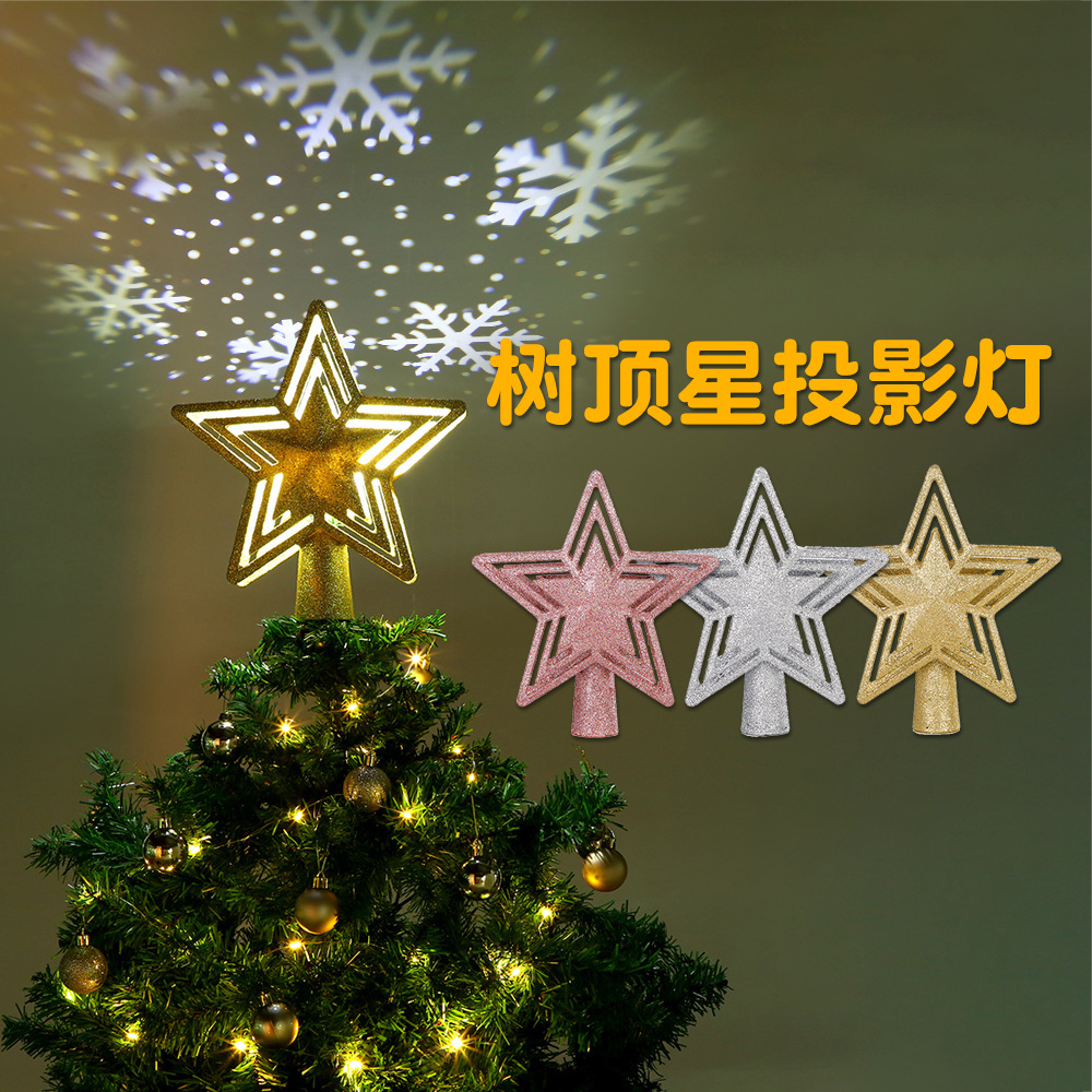 圣诞节装饰品金色银色粉色五角星节日布置挂件雪花射灯圣诞树顶星