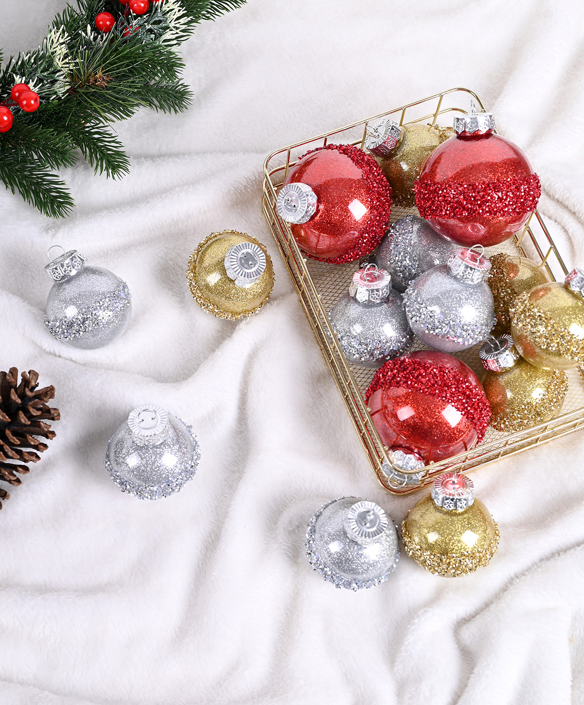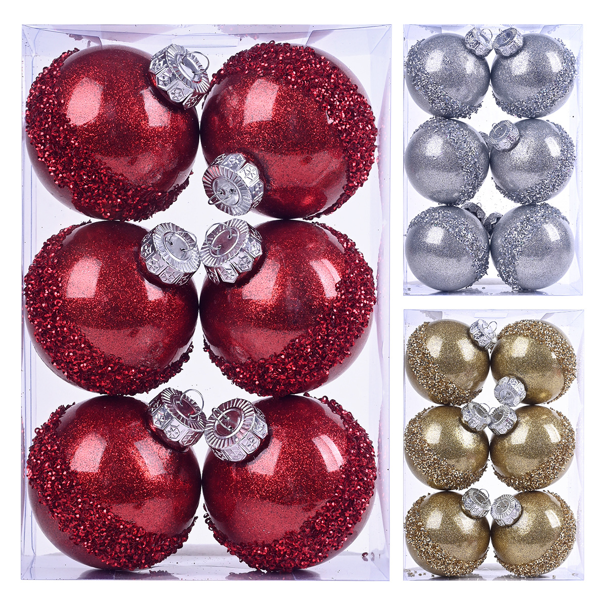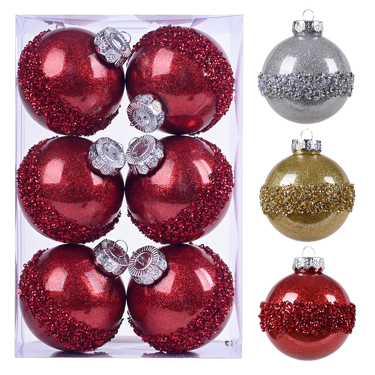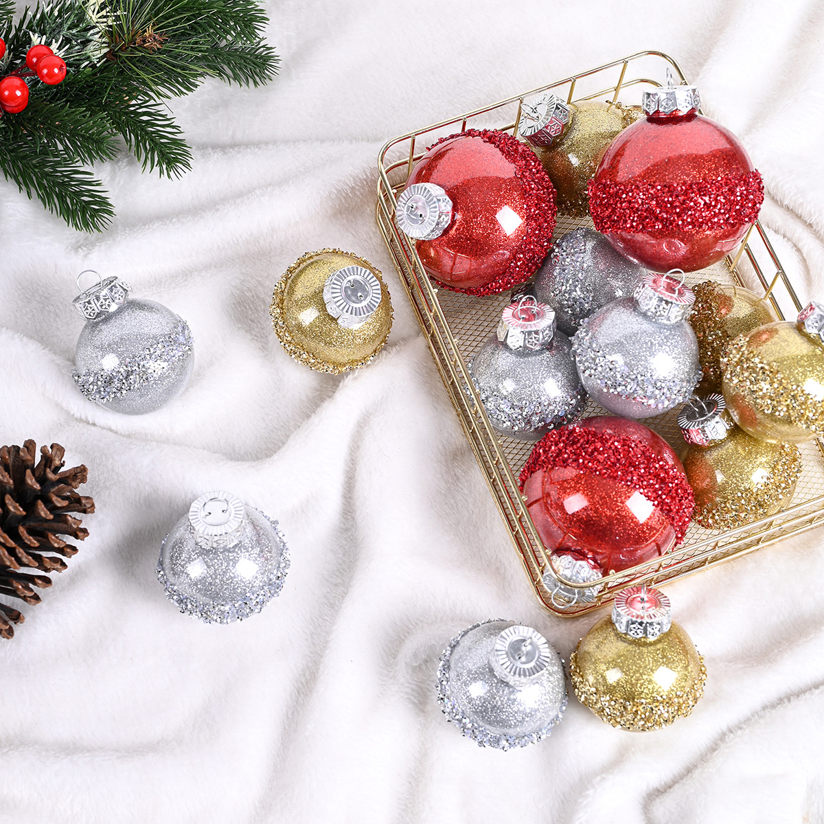 跨境新款PET圣诞球6/8cm塑料亮片透明圣诞节摆挂件装饰品挂球套装