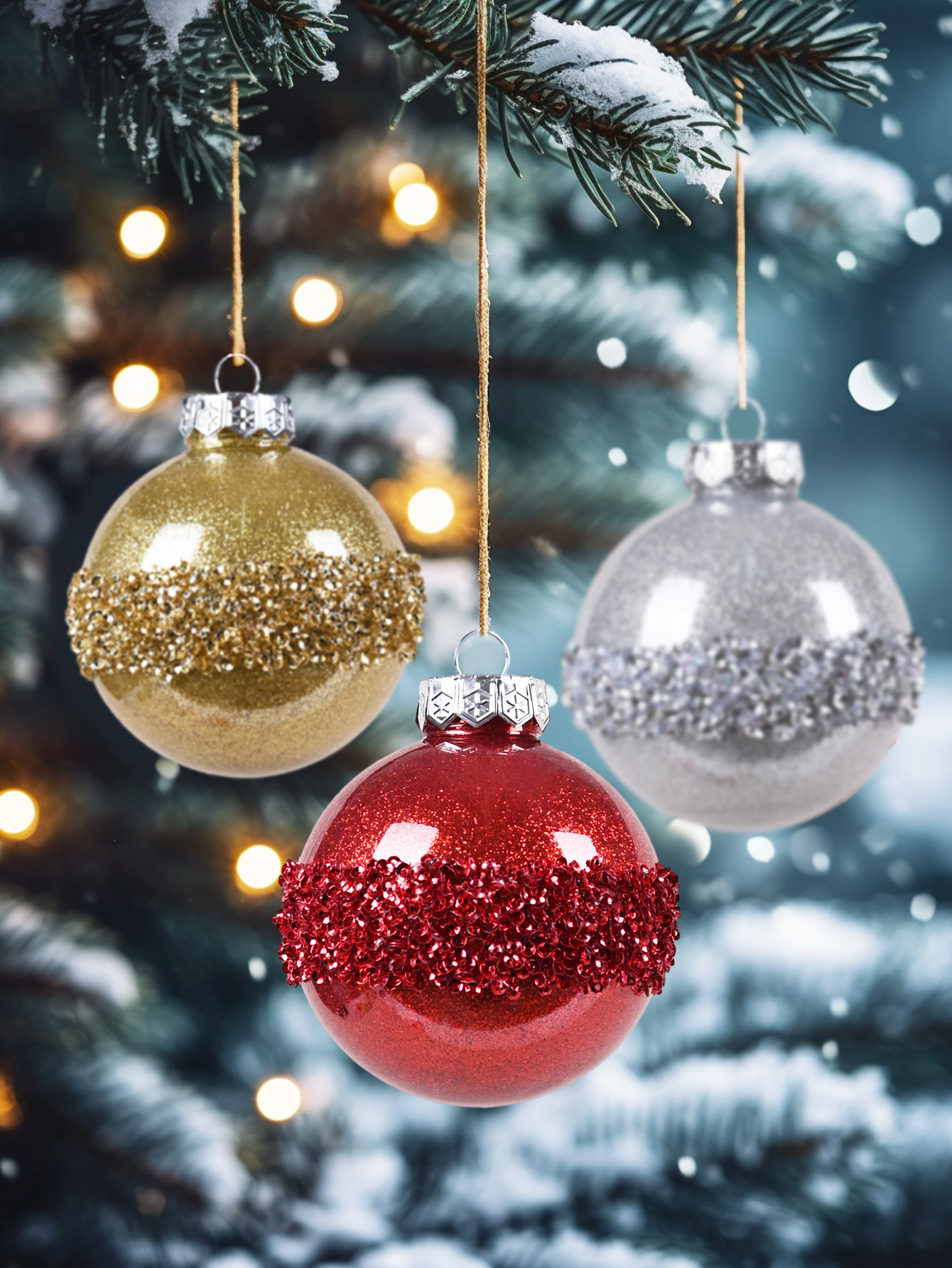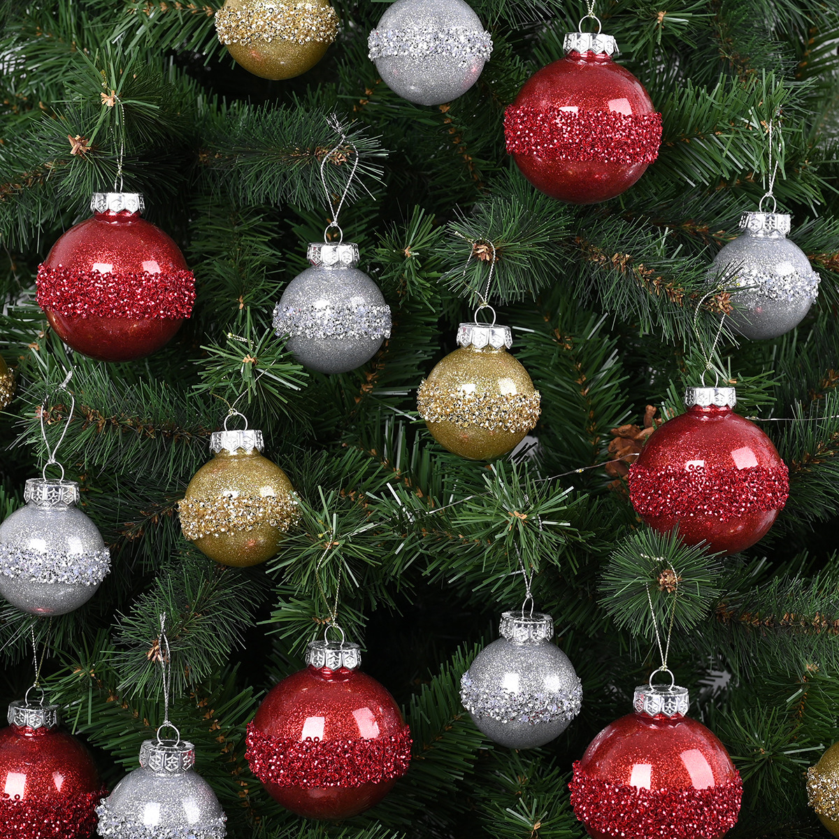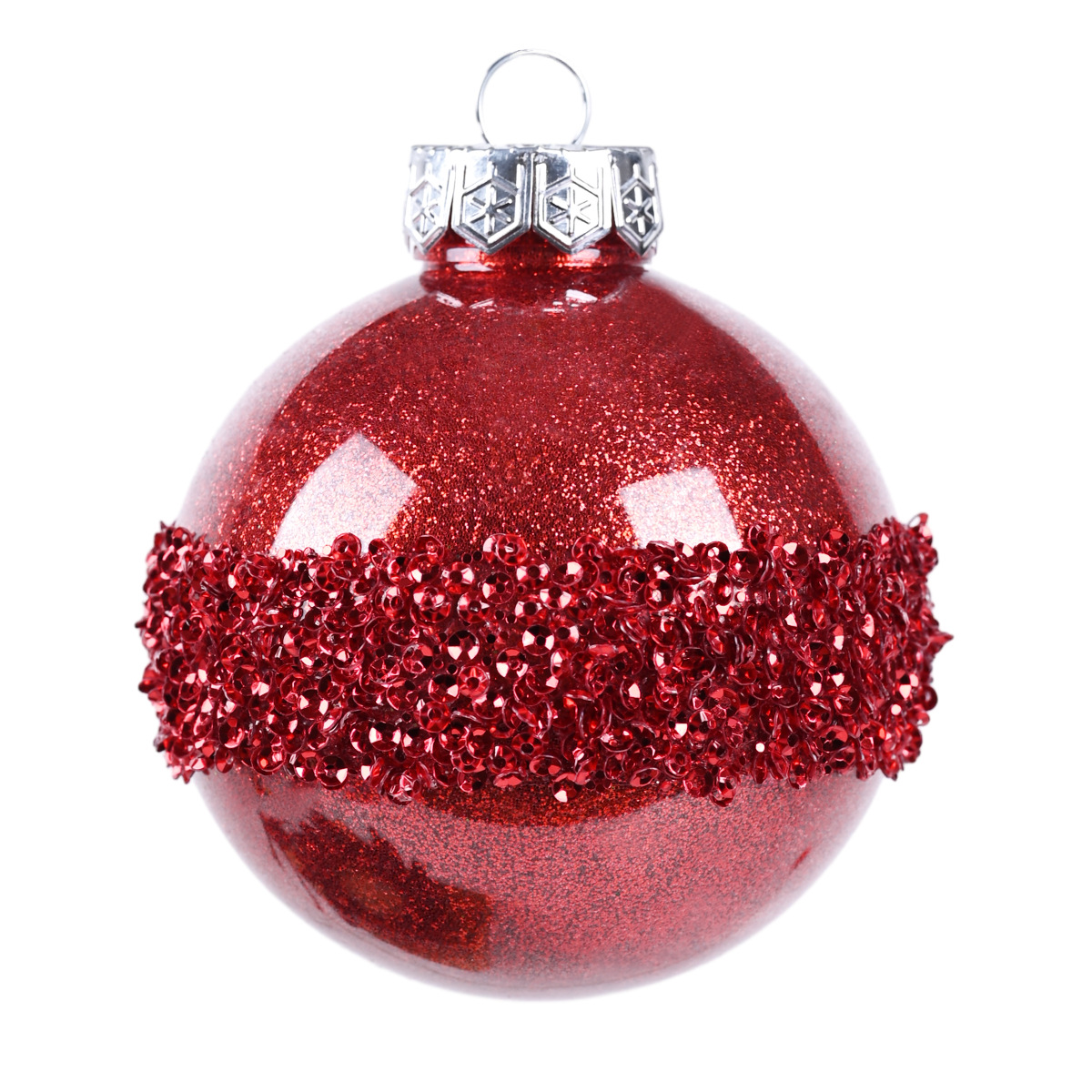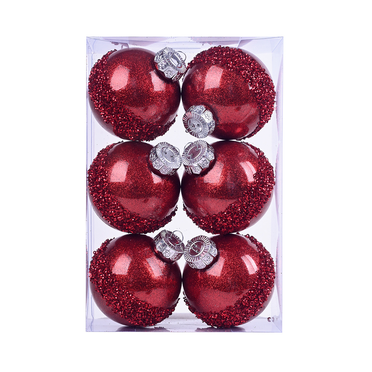 跨境新款PET圣诞球6/8cm塑料亮片透明圣诞节摆挂件装饰品挂球套装