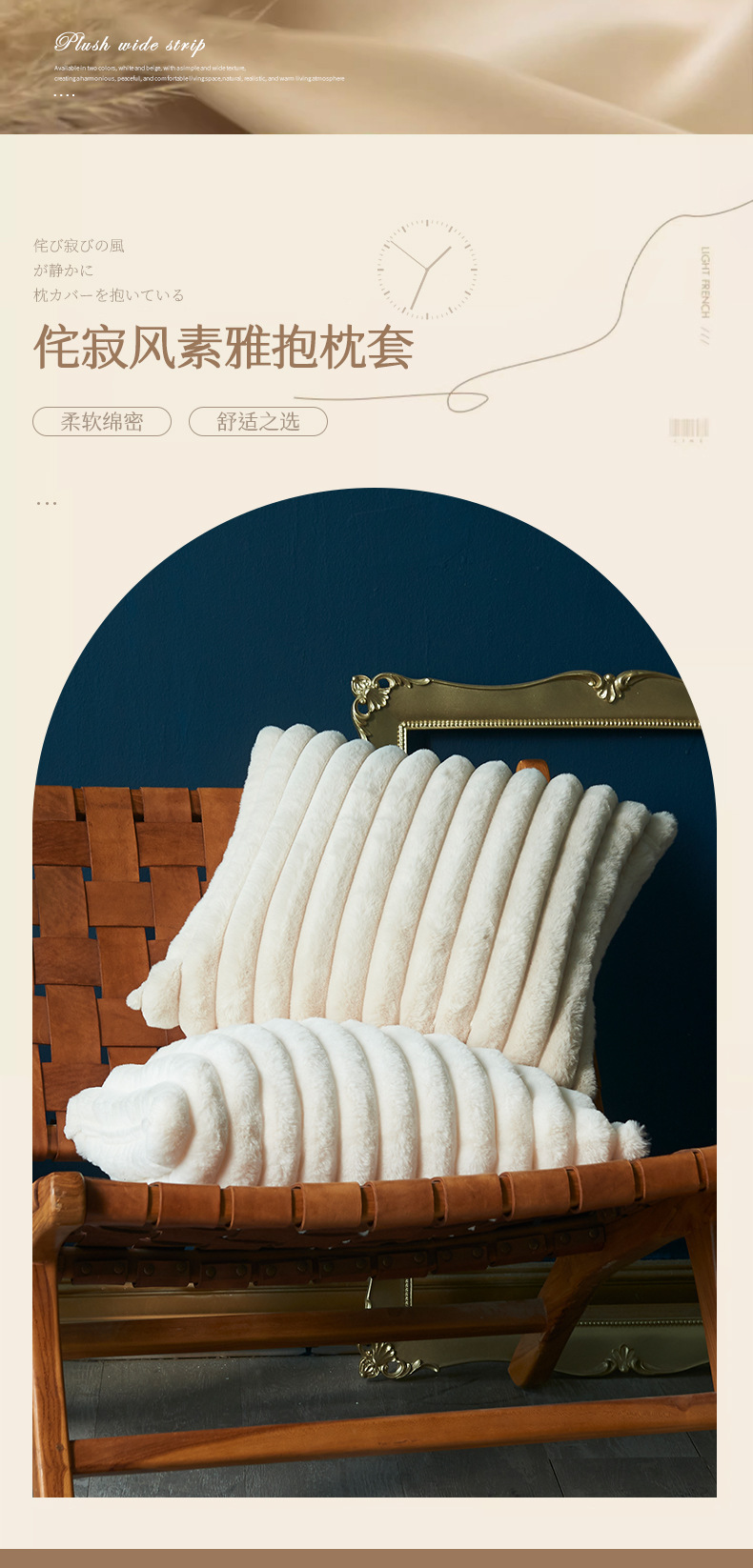宽条纹毛绒抱枕靠枕靠垫沙发抱枕套床上靠枕套