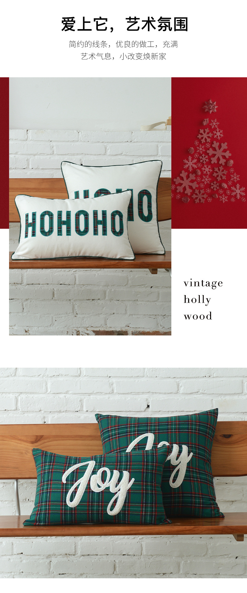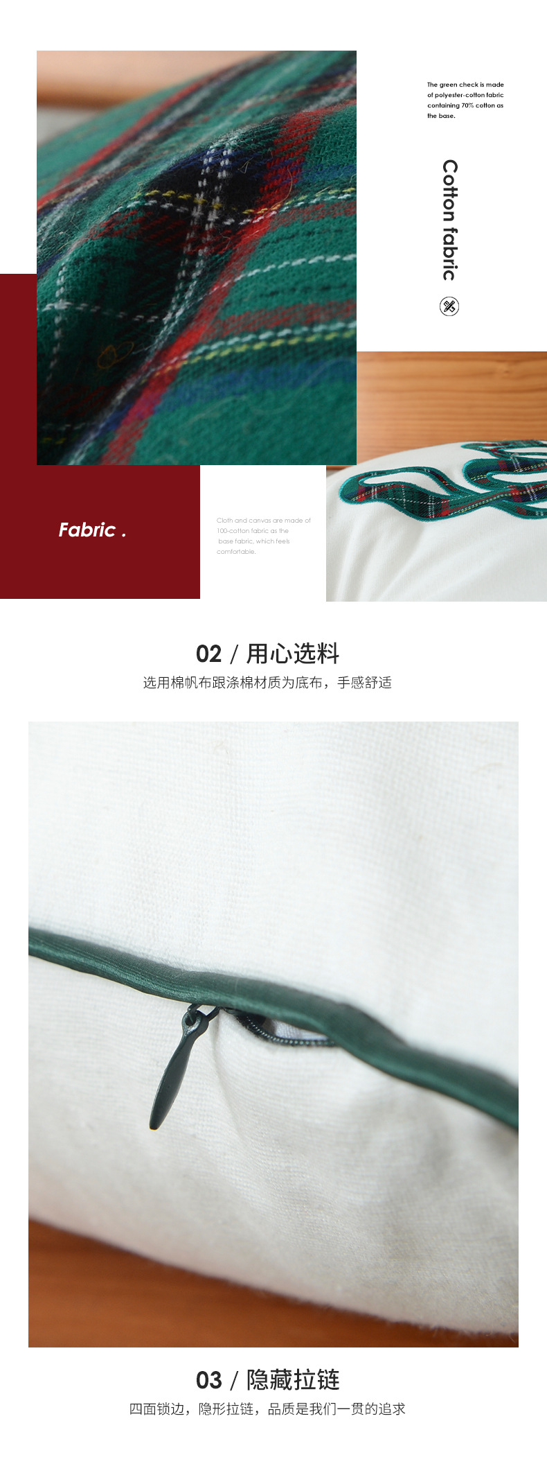 绿格子绣花包边毛毛边贴布绣抱枕靠枕靠垫套