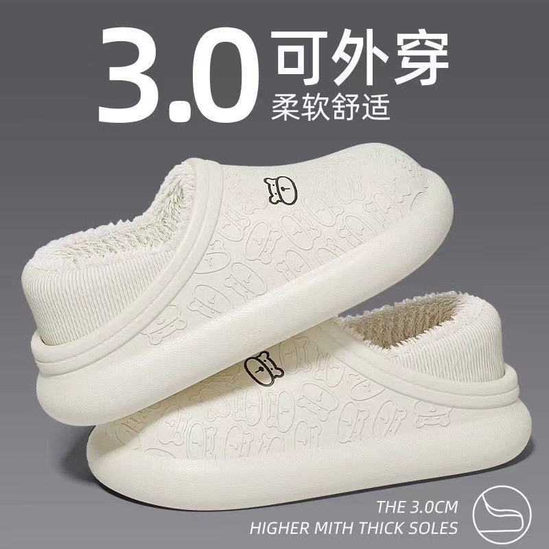 踩屎感棉拖鞋室内包跟冬家居保暖防滑防水月子加厚家用情侣款棉拖