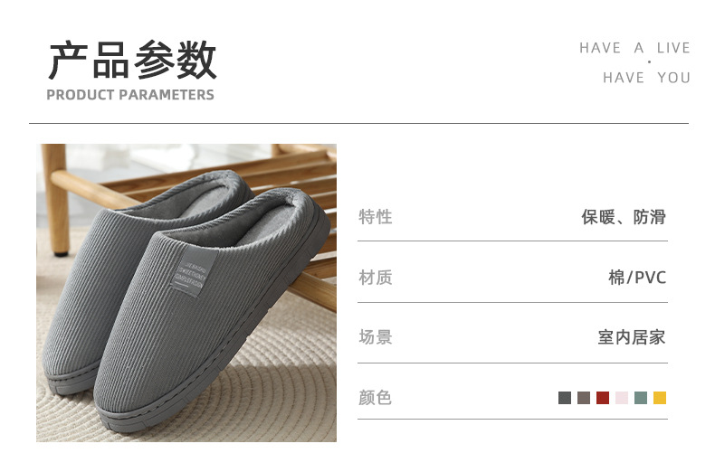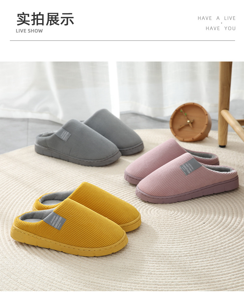 棉拖鞋女秋冬季室内居家加绒保暖情侣厚底月子鞋女家用防滑毛绒拖