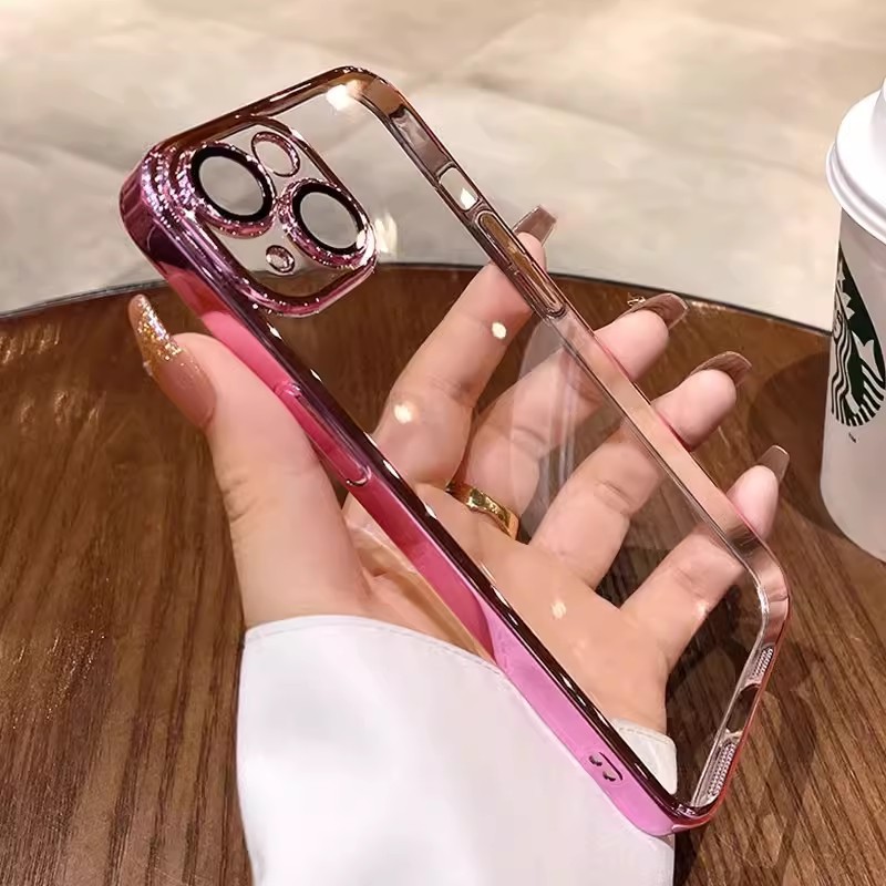 适用iPhone15手机壳电镀tpu自带镜头膜苹果14pro透明全包保护软套
