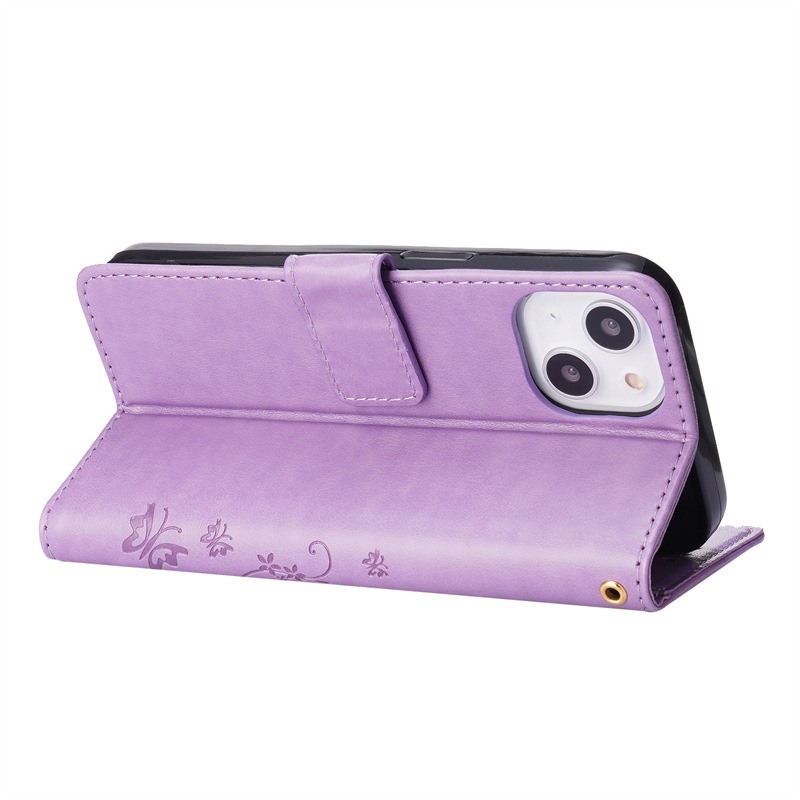 适用苹果15ProMax14131211翻盖皮套S2322蝴蝶压花保护套A14手机壳