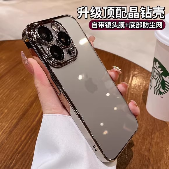 苹果15防尘网透明电镀14手机壳iphone12ProMax一体镜软套i13i适用