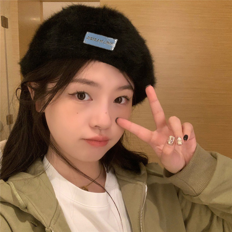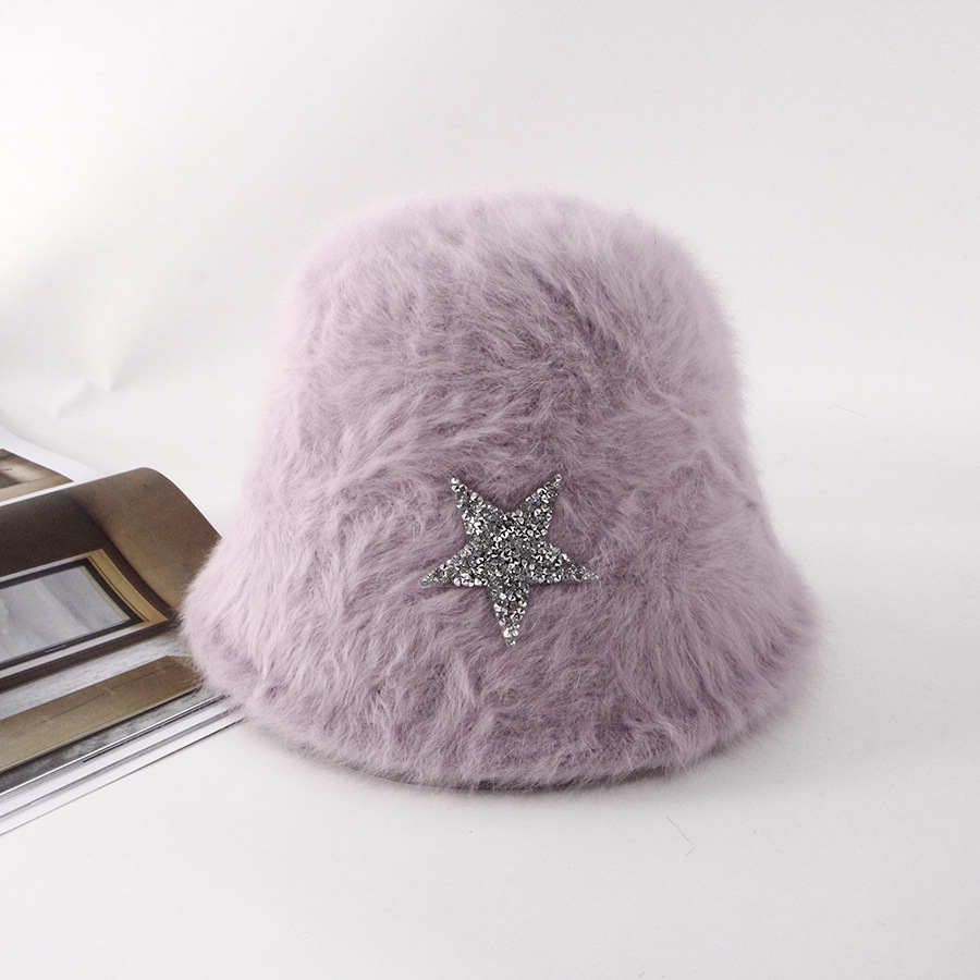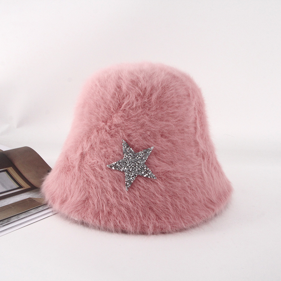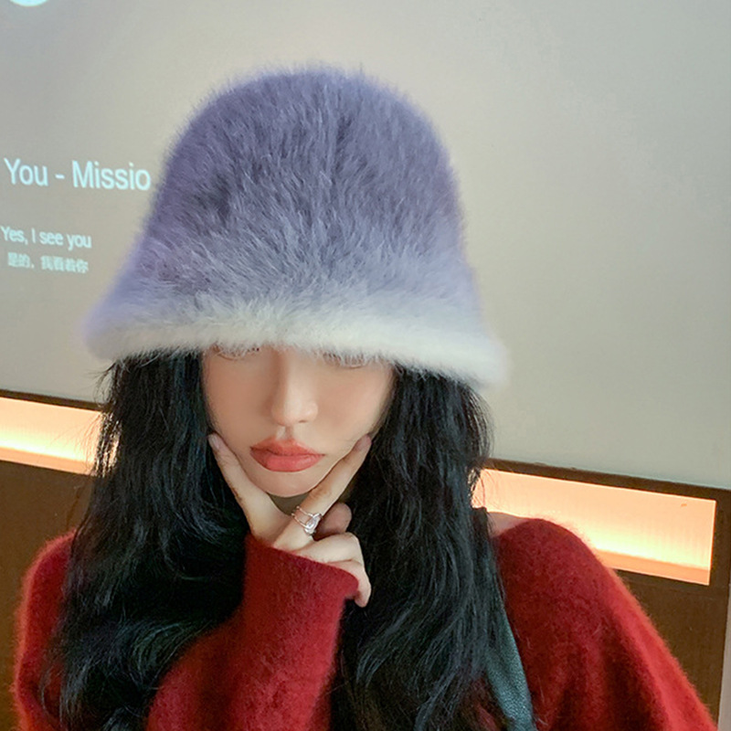 秋冬水桶帽女白色兔毛遮脸素颜盆帽韩版日系防寒保暖毛绒渔夫帽子