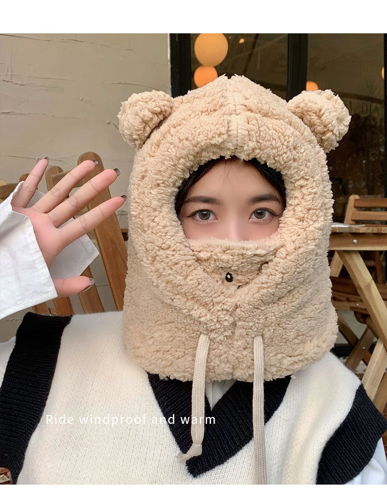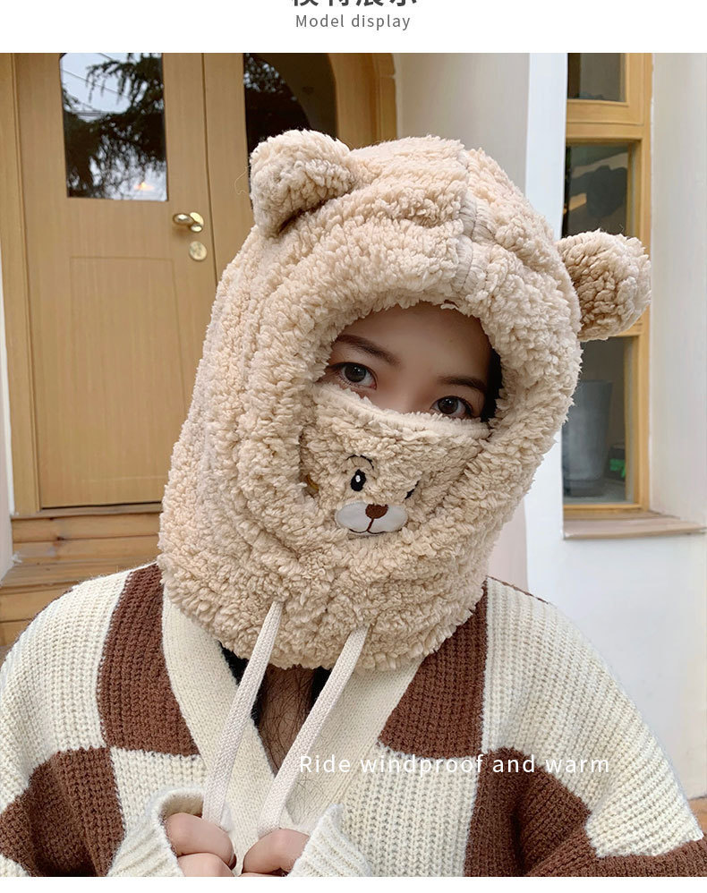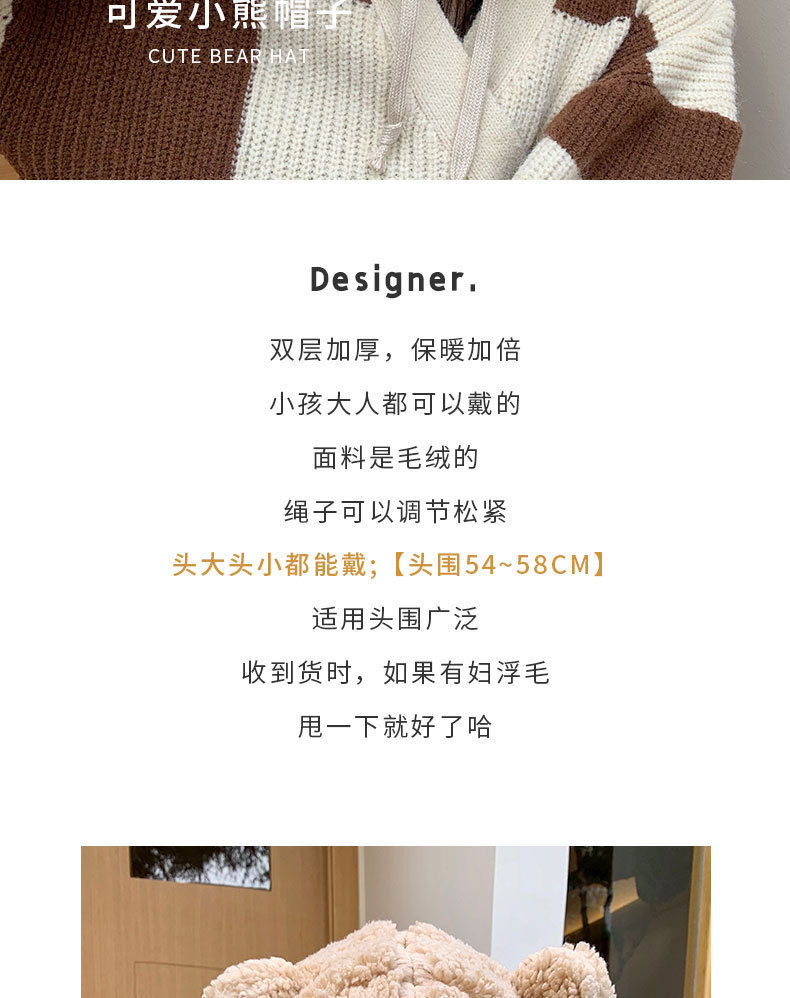新款冬季帽子女可爱小熊针织帽韩版加厚保暖冬天网红毛线帽冬批发