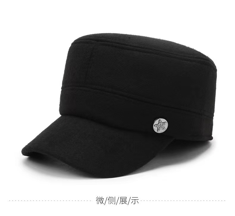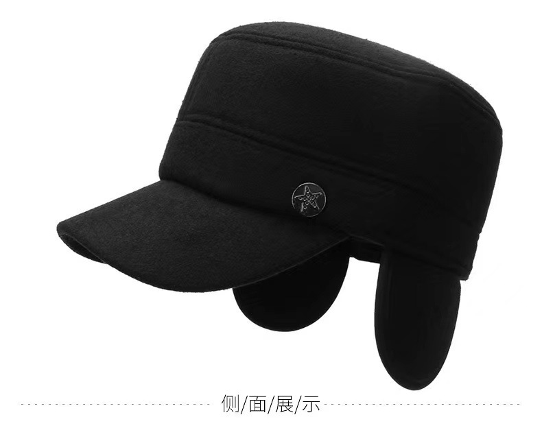 秋冬鸭舌帽加绒护耳中老年老头爸爸爷爷棒球帽毛呢户外保暖棉帽