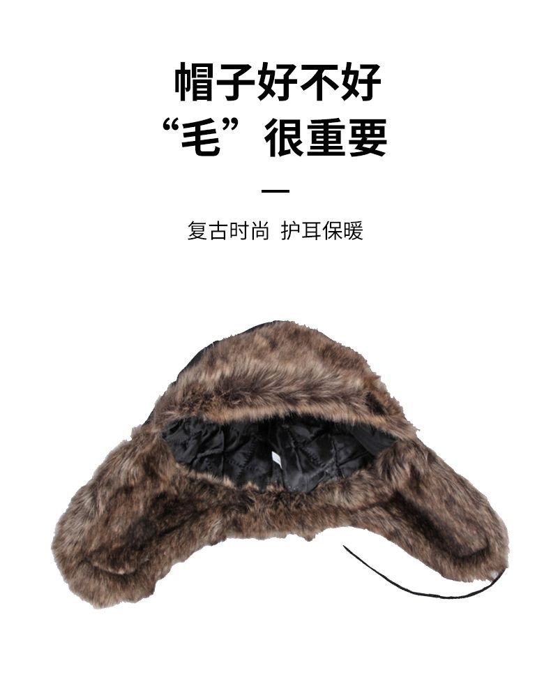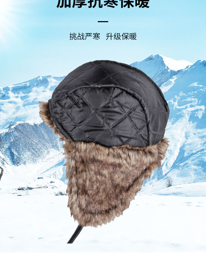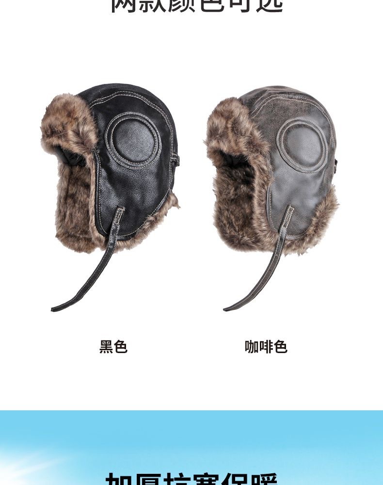 欧美PU皮质雷锋帽男冬季保暖护耳滑雪帽仿毛俄罗斯帽骑行防风帽子