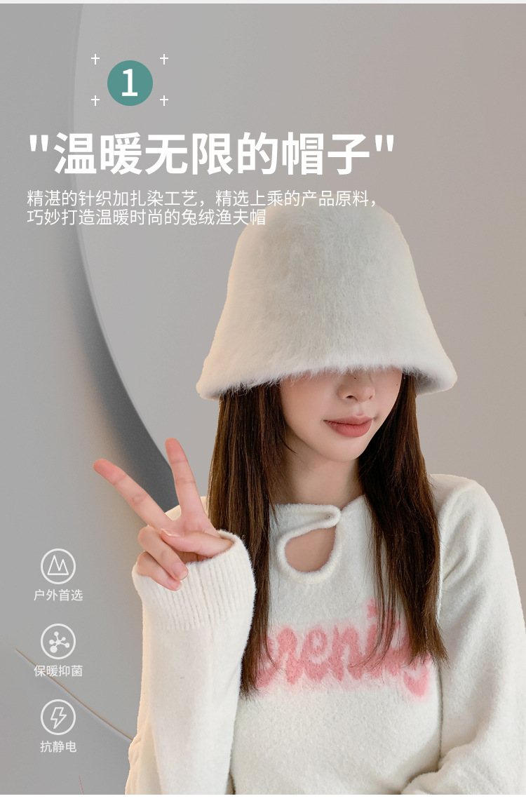兔毛帽秋冬季韩版日系显脸小毛绒保暖防寒防风可爱白塔渔夫帽子女