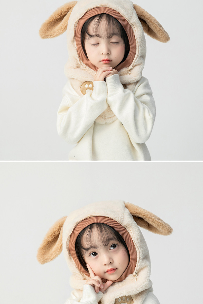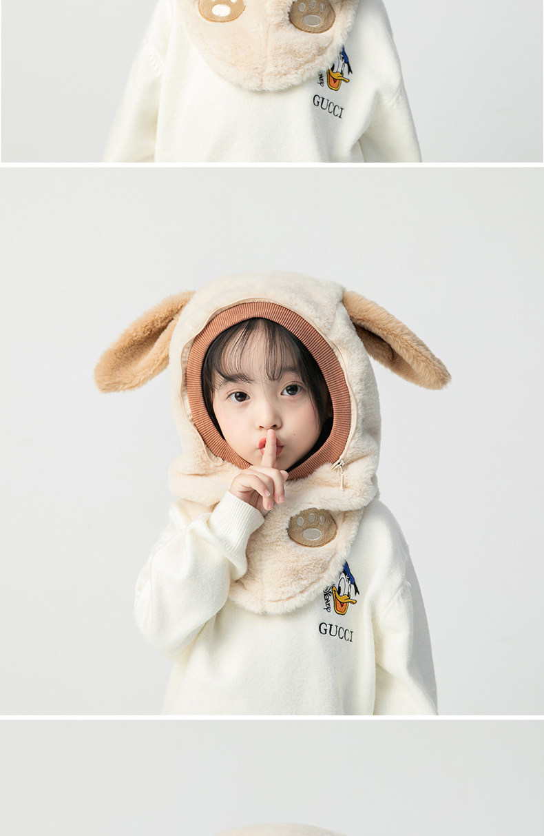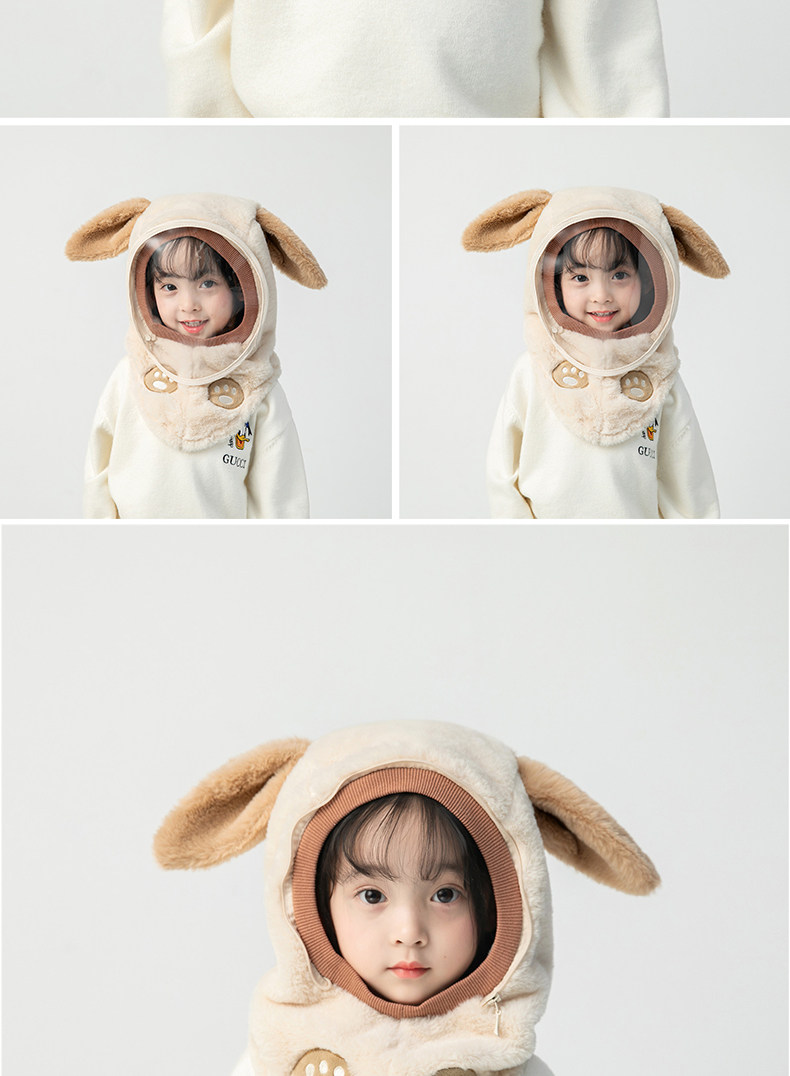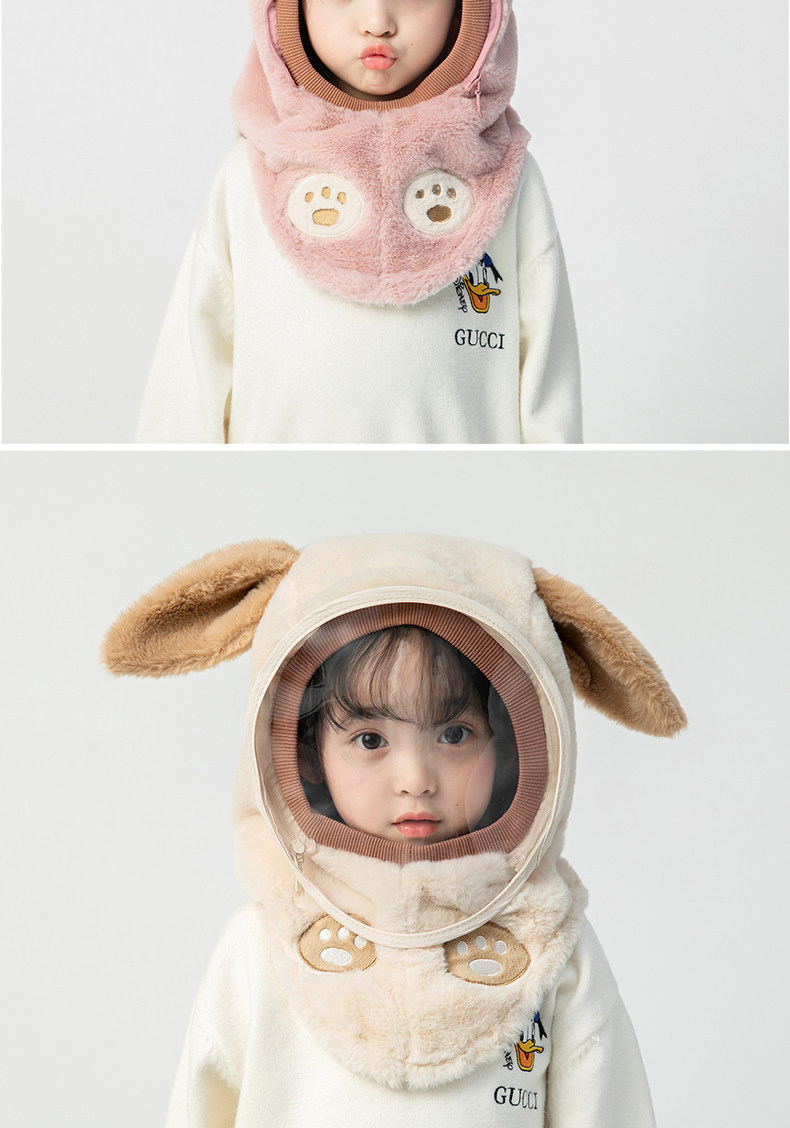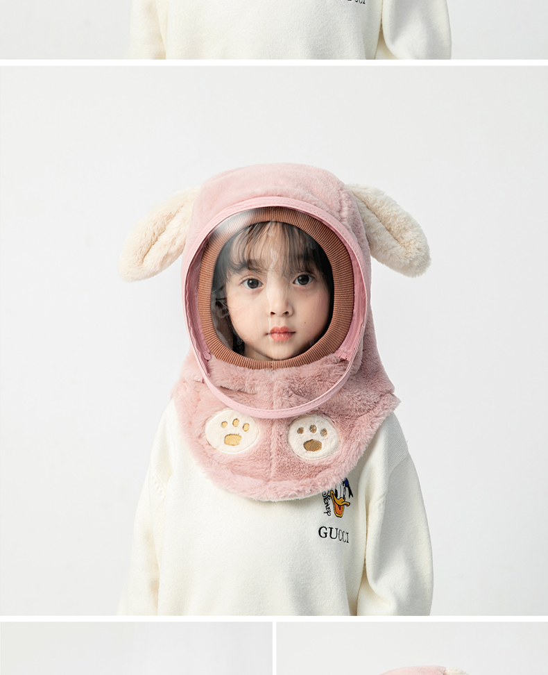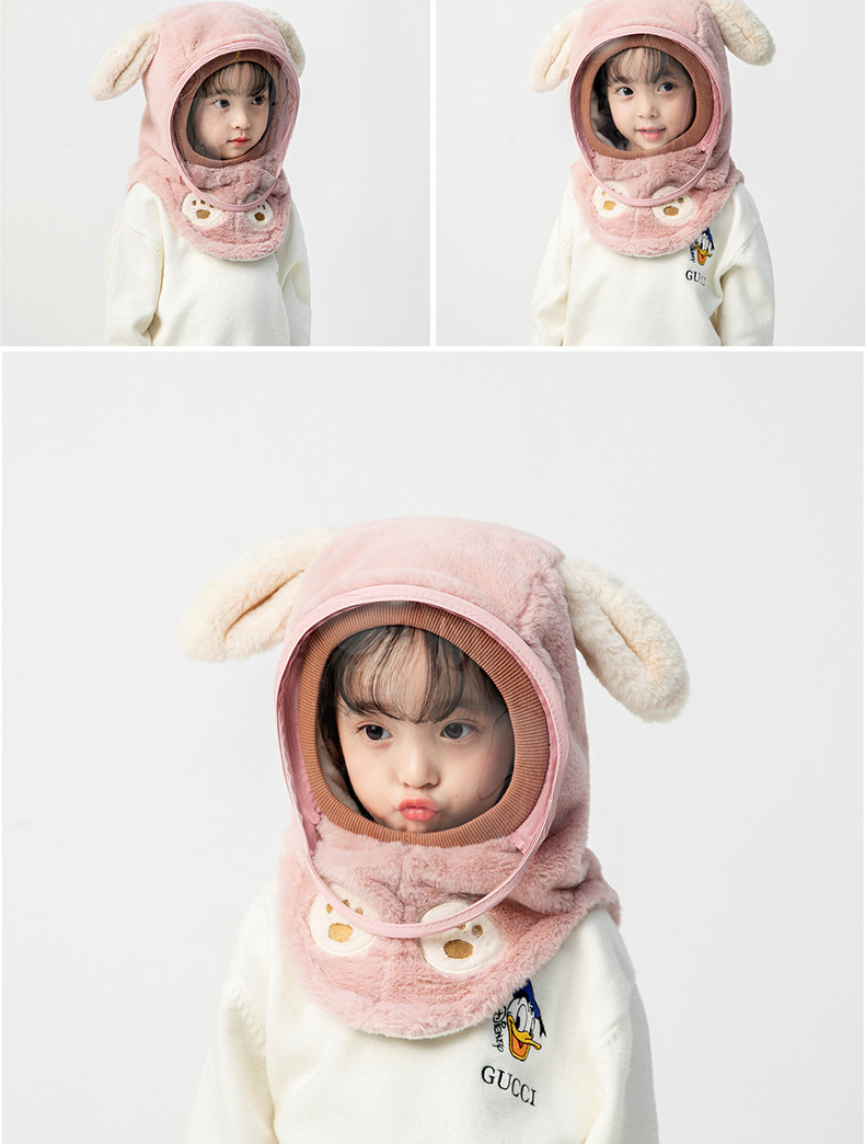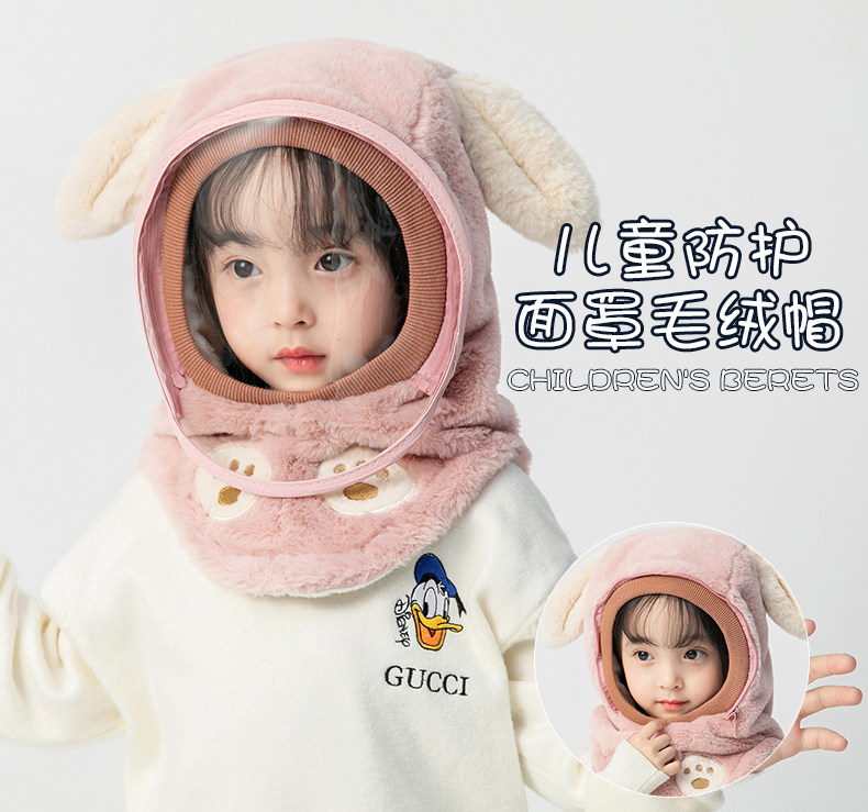 儿童帽子冬天保暖防风帽防护带面罩男女童加厚遮脸围脖一体套头帽