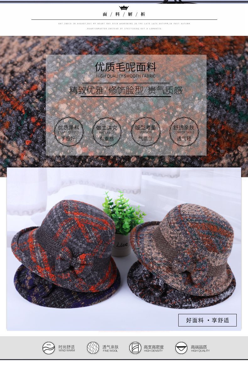 新款中老年人帽子女秋冬季妈妈毛呢加厚奶奶布盆帽春秋休闲渔夫帽