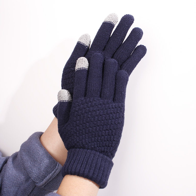 手套女冬季触屏保暖韩版针织手套五指提花加绒防寒户外骑行批发