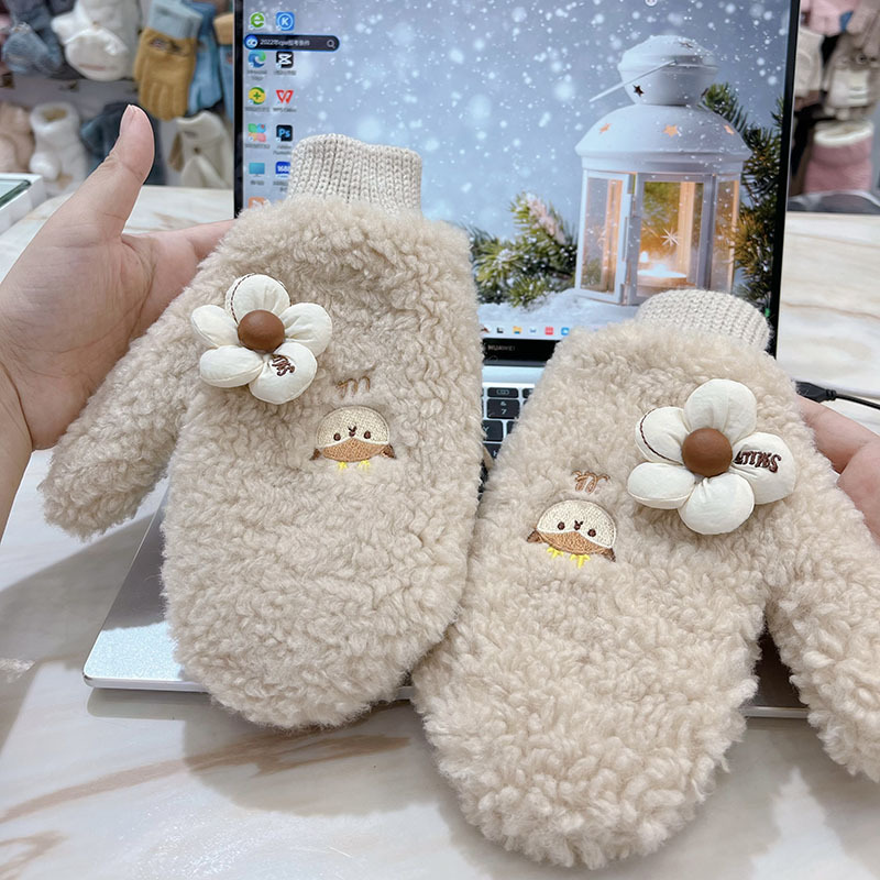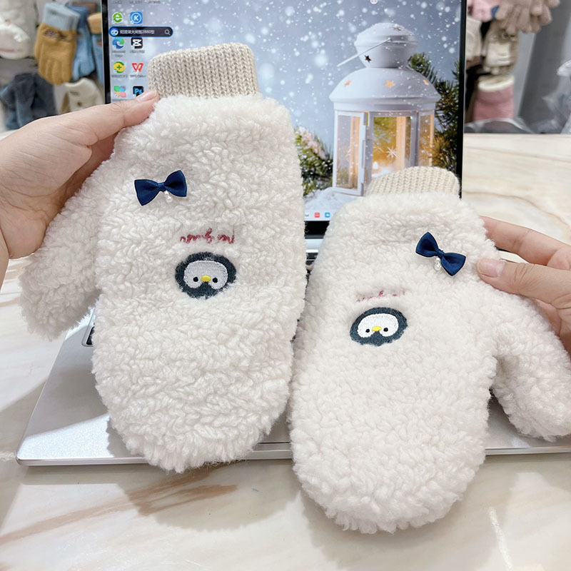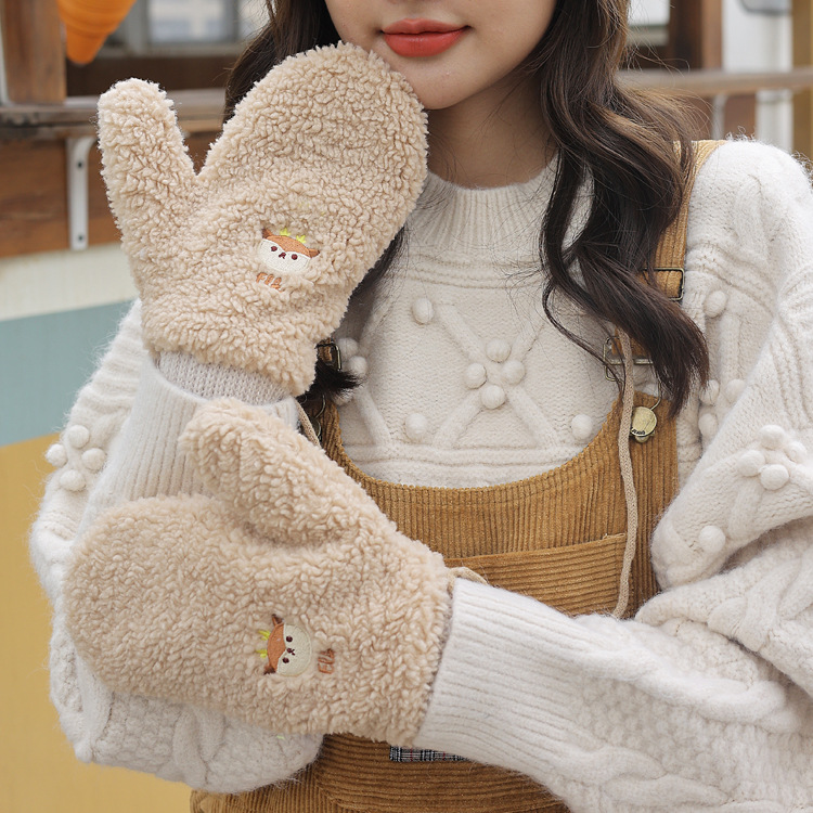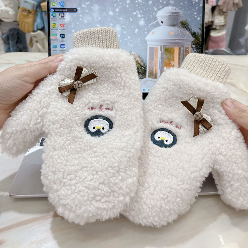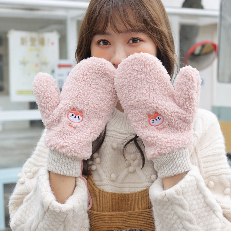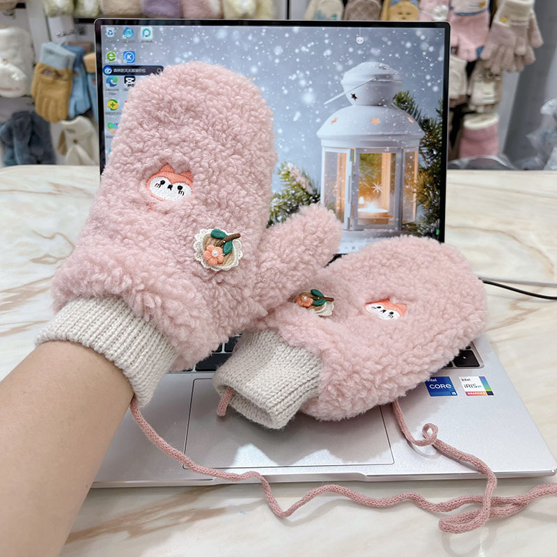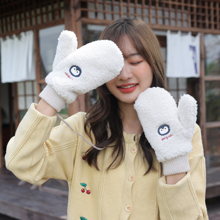手套冬季女可爱韩版学生卡通连指挂脖冬天保暖加厚加绒棉毛绒手套
