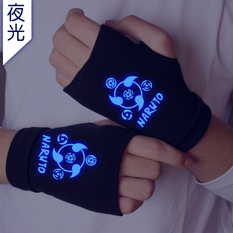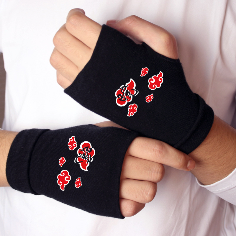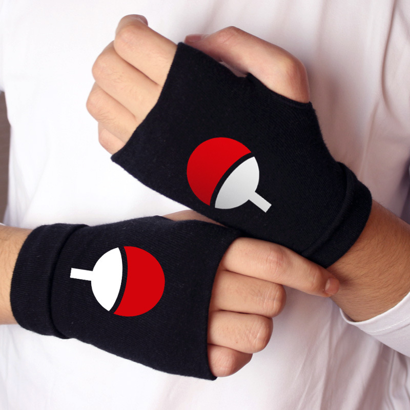 火影新冬卡通动漫半截黑色露指现货保暖通用手套冬季印花手套