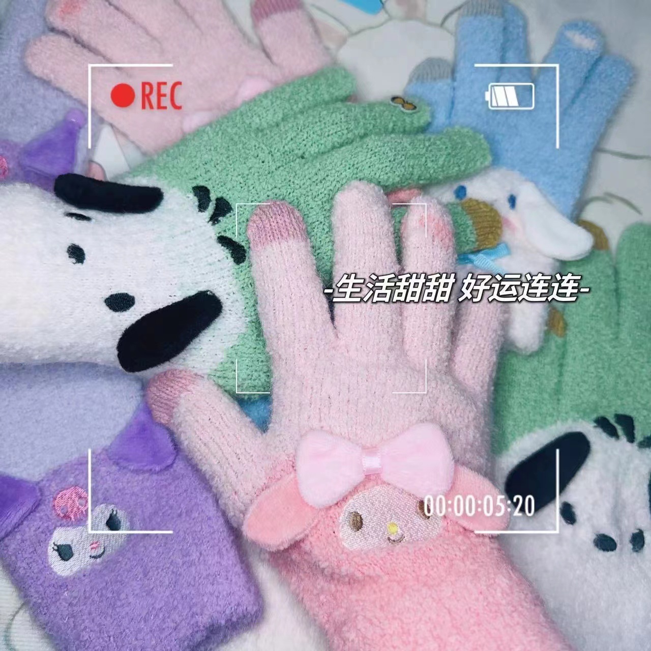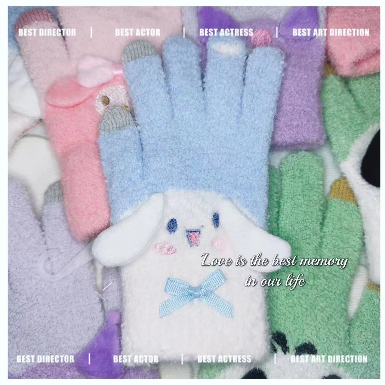 厂家批发高颜值立体耳朵可触屏保暖防寒手套成人韩版少女五指手套
