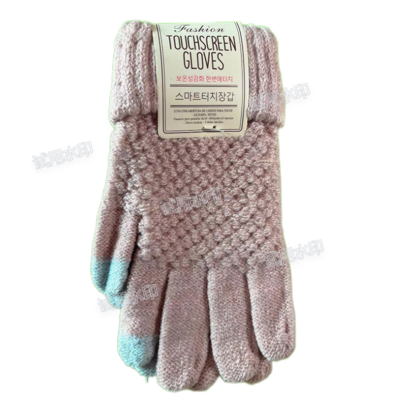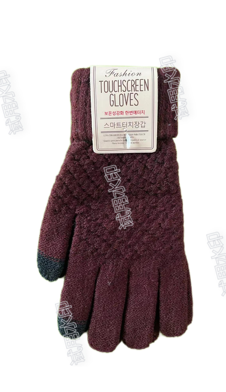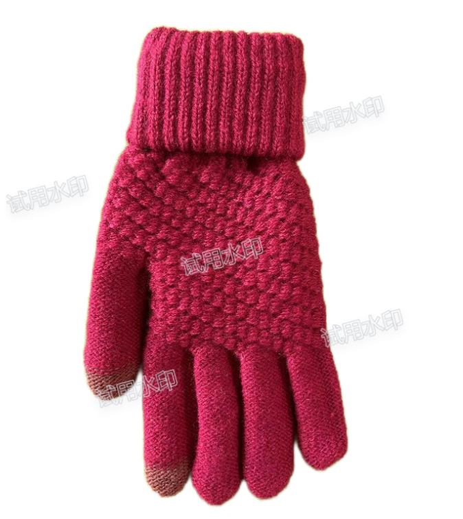 厂家直销秋冬针织手套学生提花触屏加绒加厚情侣保暖时尚玩手机