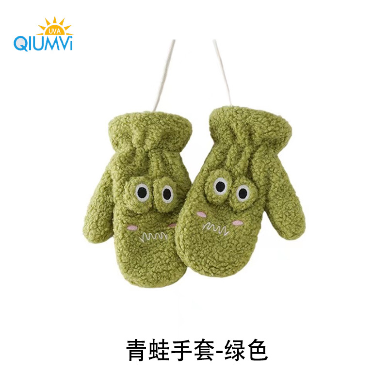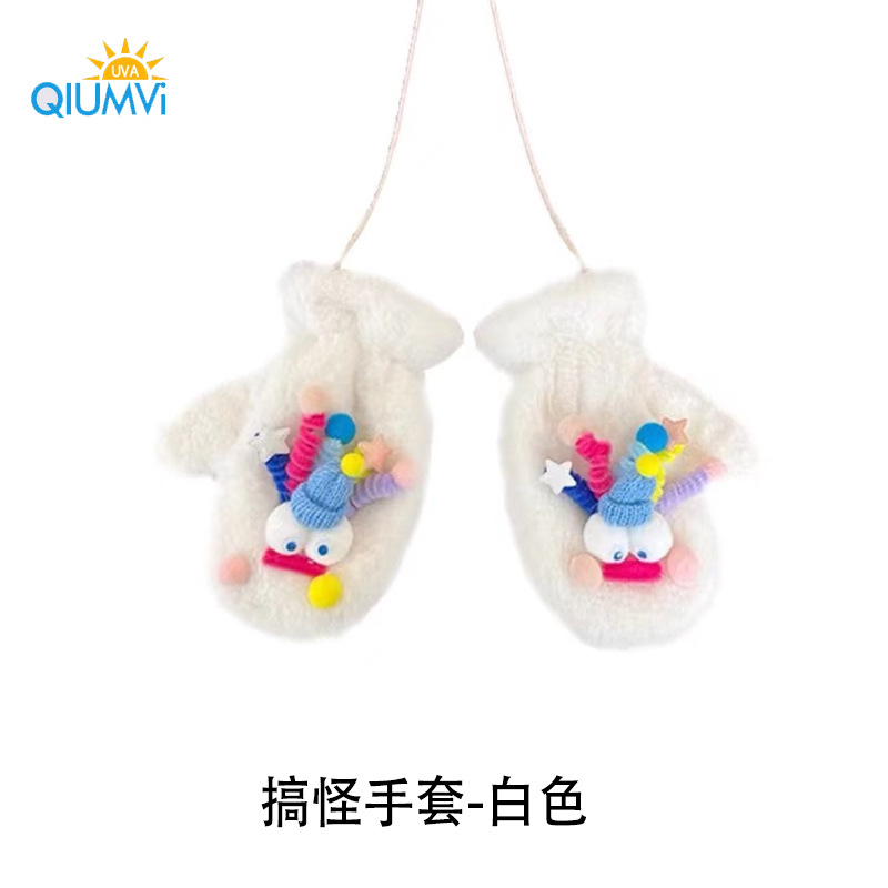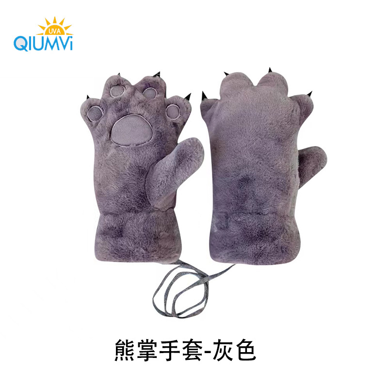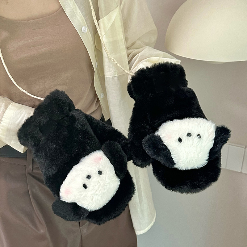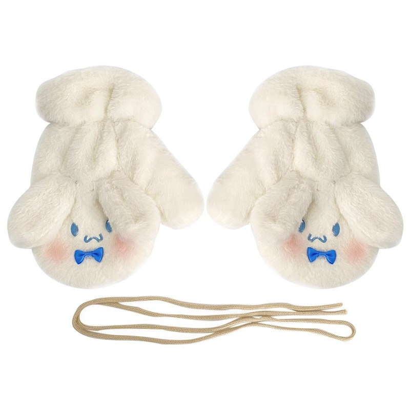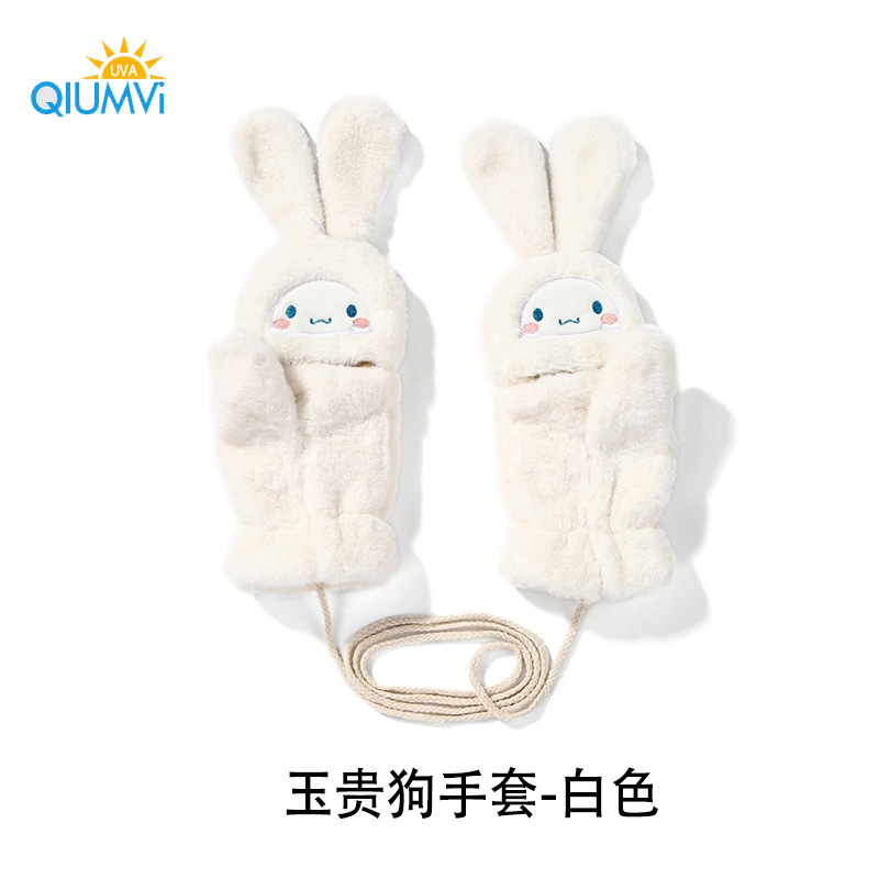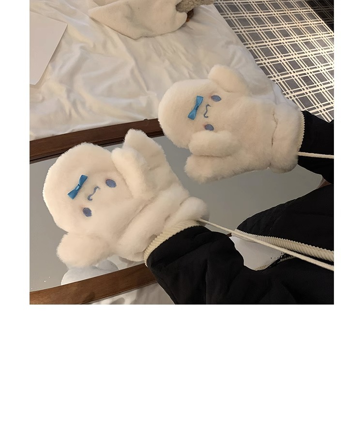 冬季毛绒手套女可爱韩系连指加厚发热挂脖学生冬天保暖手套骑行