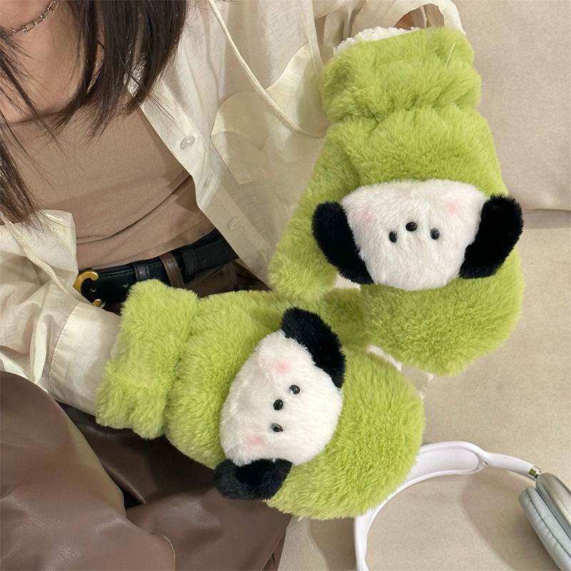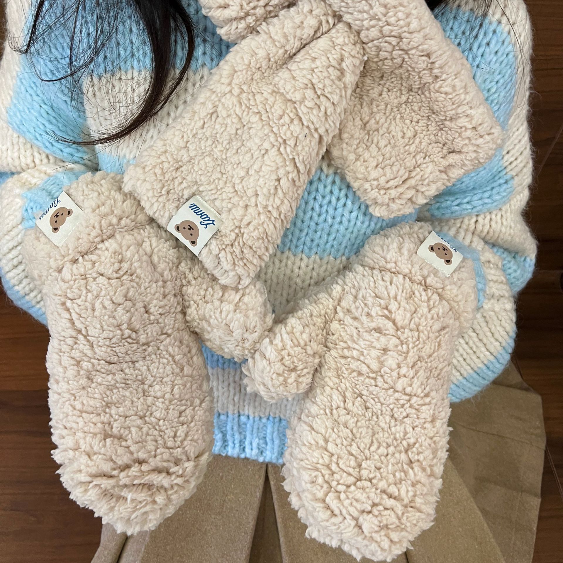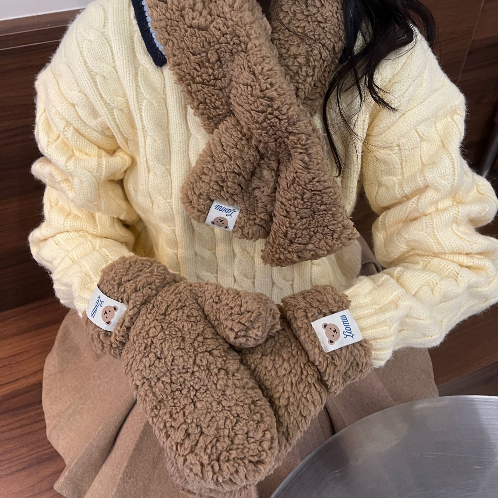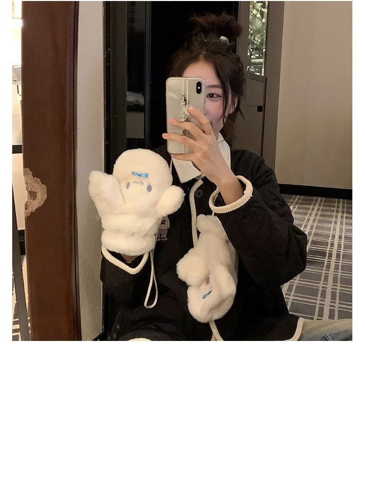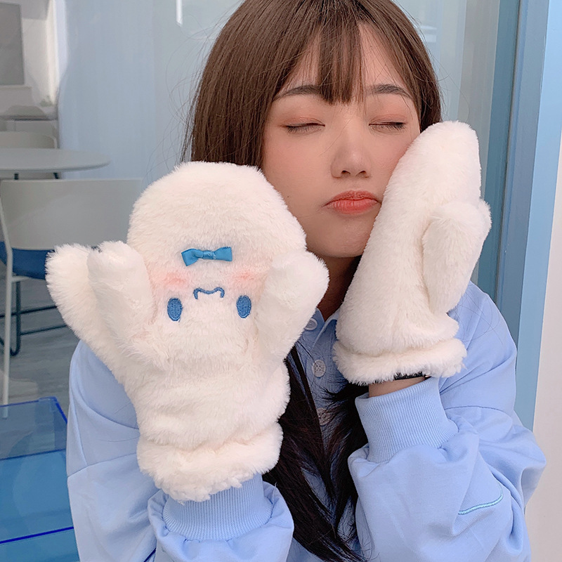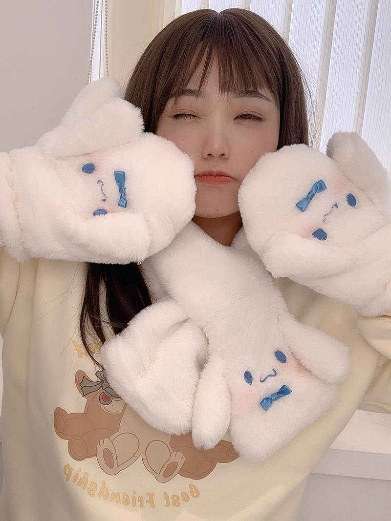 冬季毛绒手套女可爱韩系连指加厚发热挂脖学生冬天保暖手套骑行