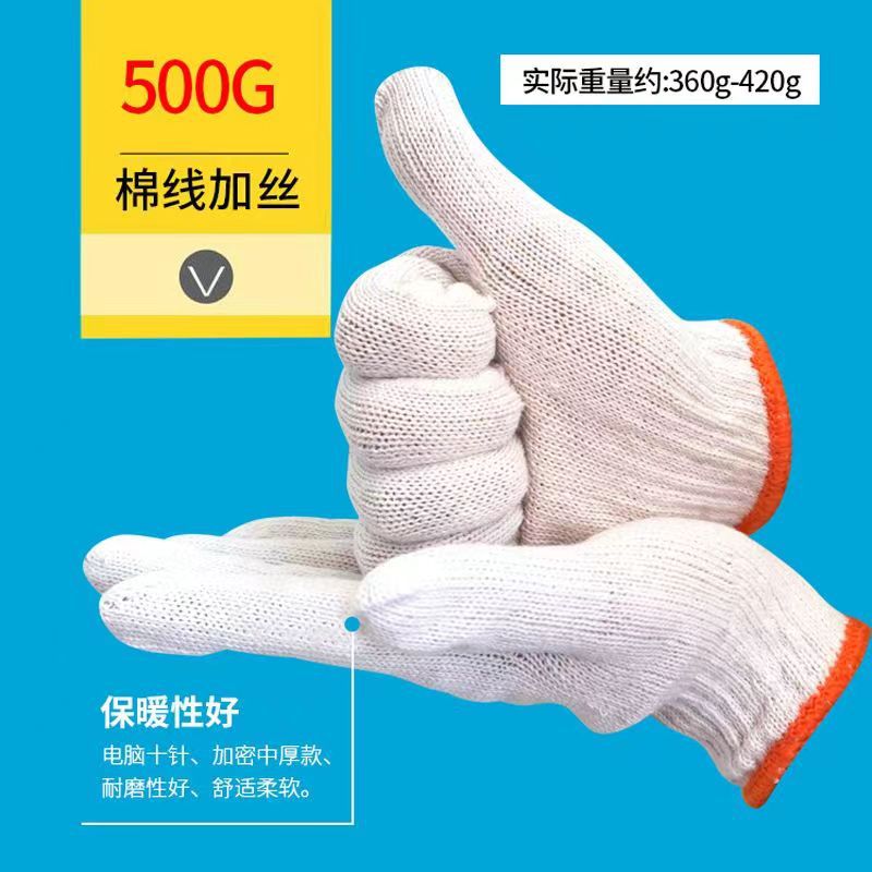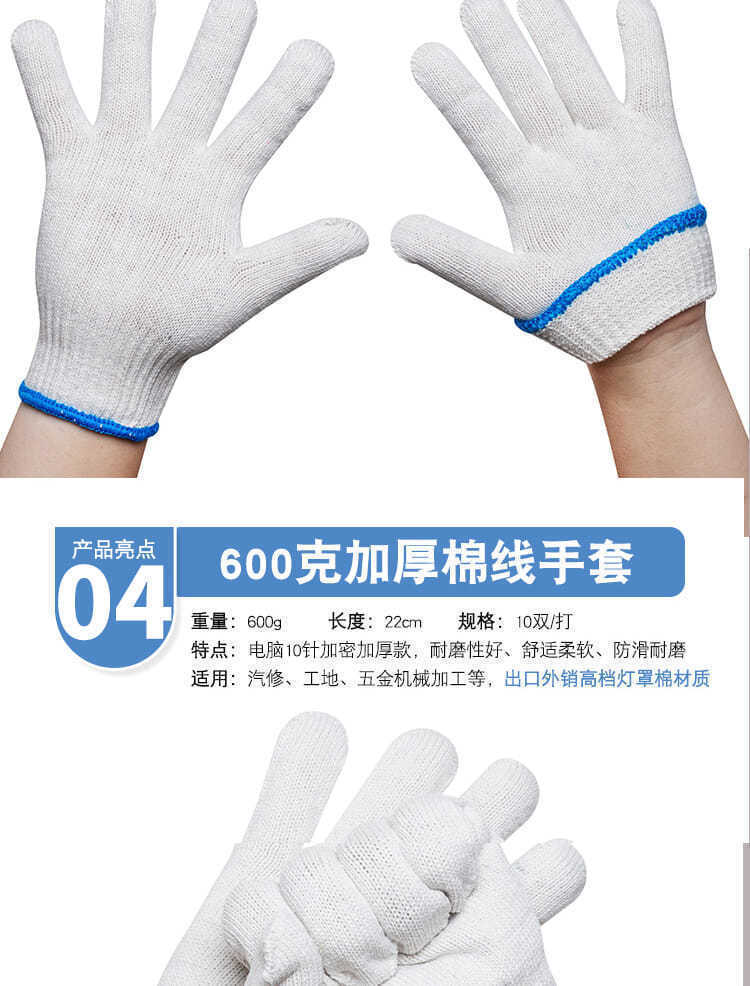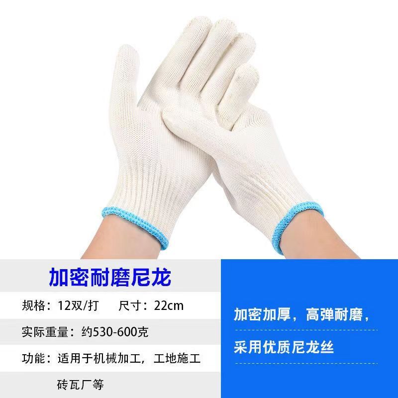 耐磨劳保手套工地耐用工作干活手套防滑男女白棉线尼龙线手套批发