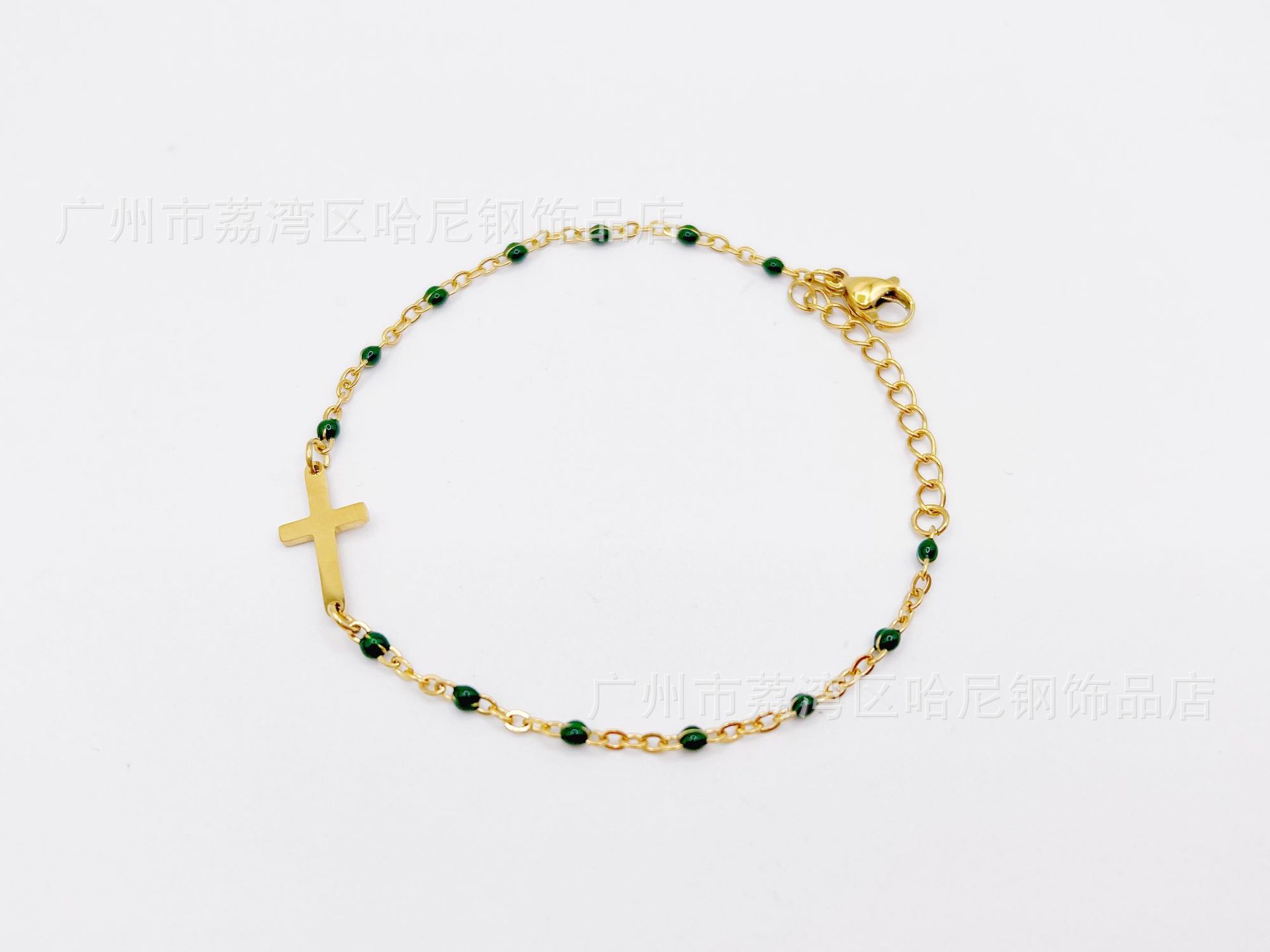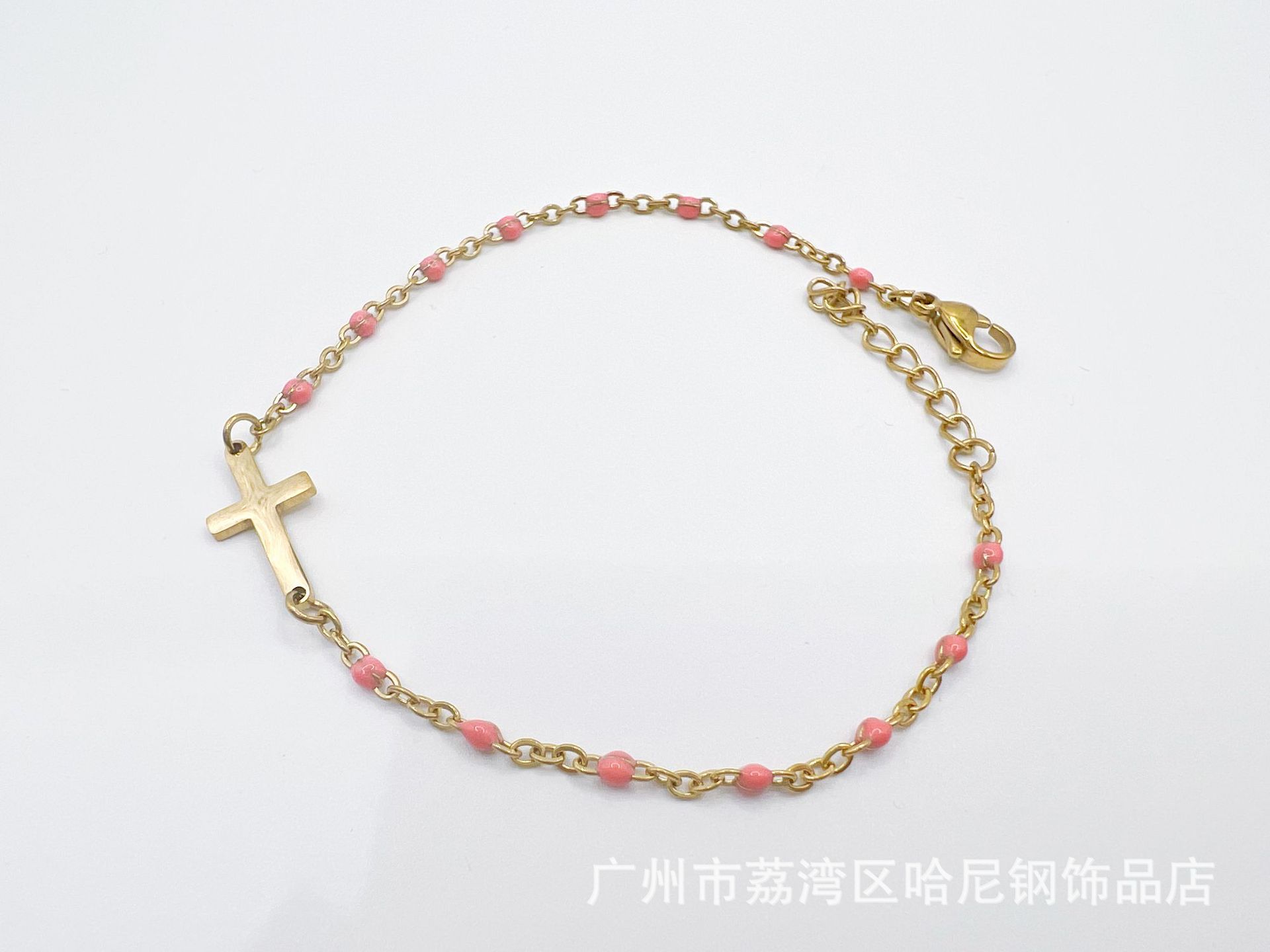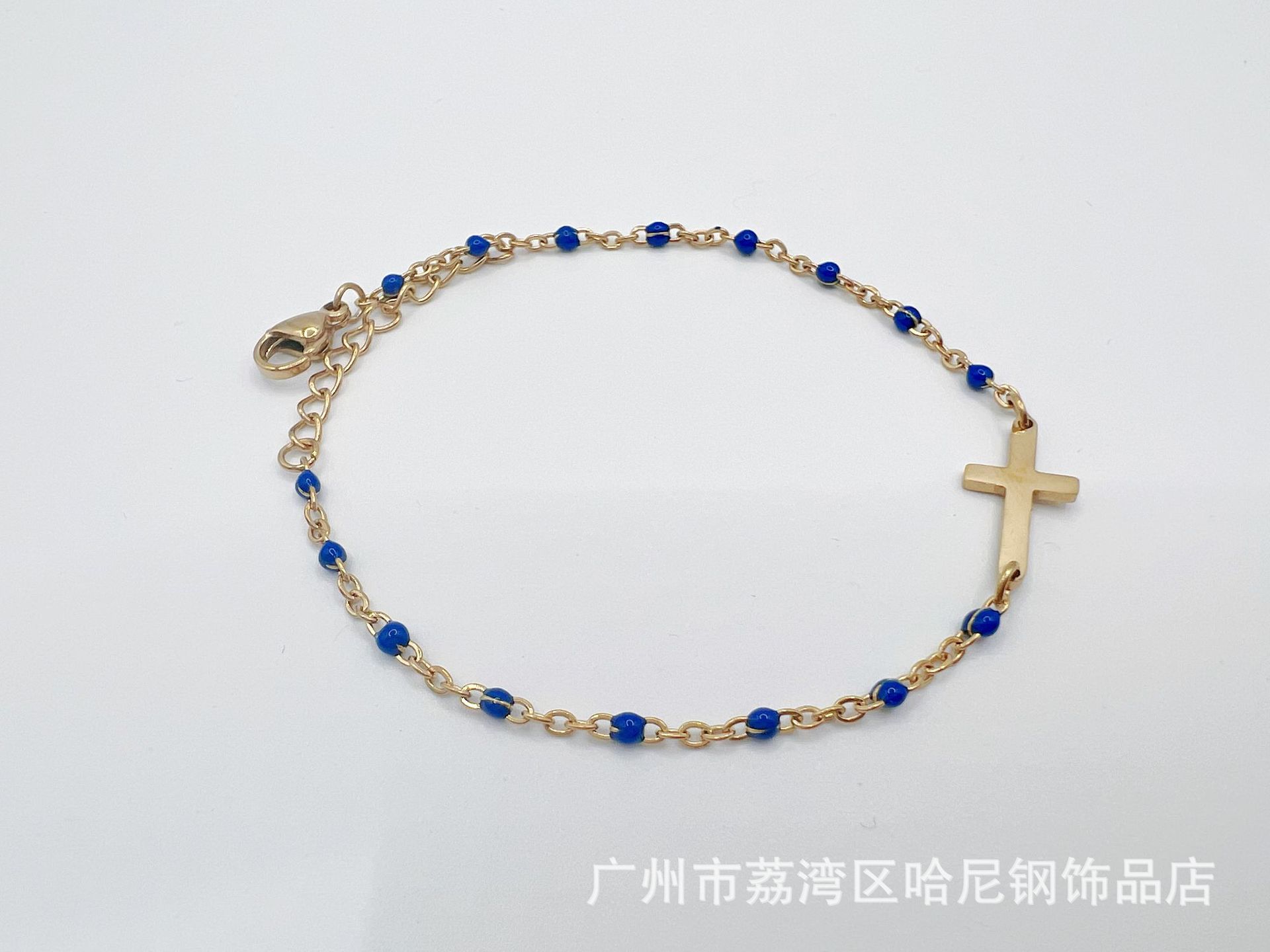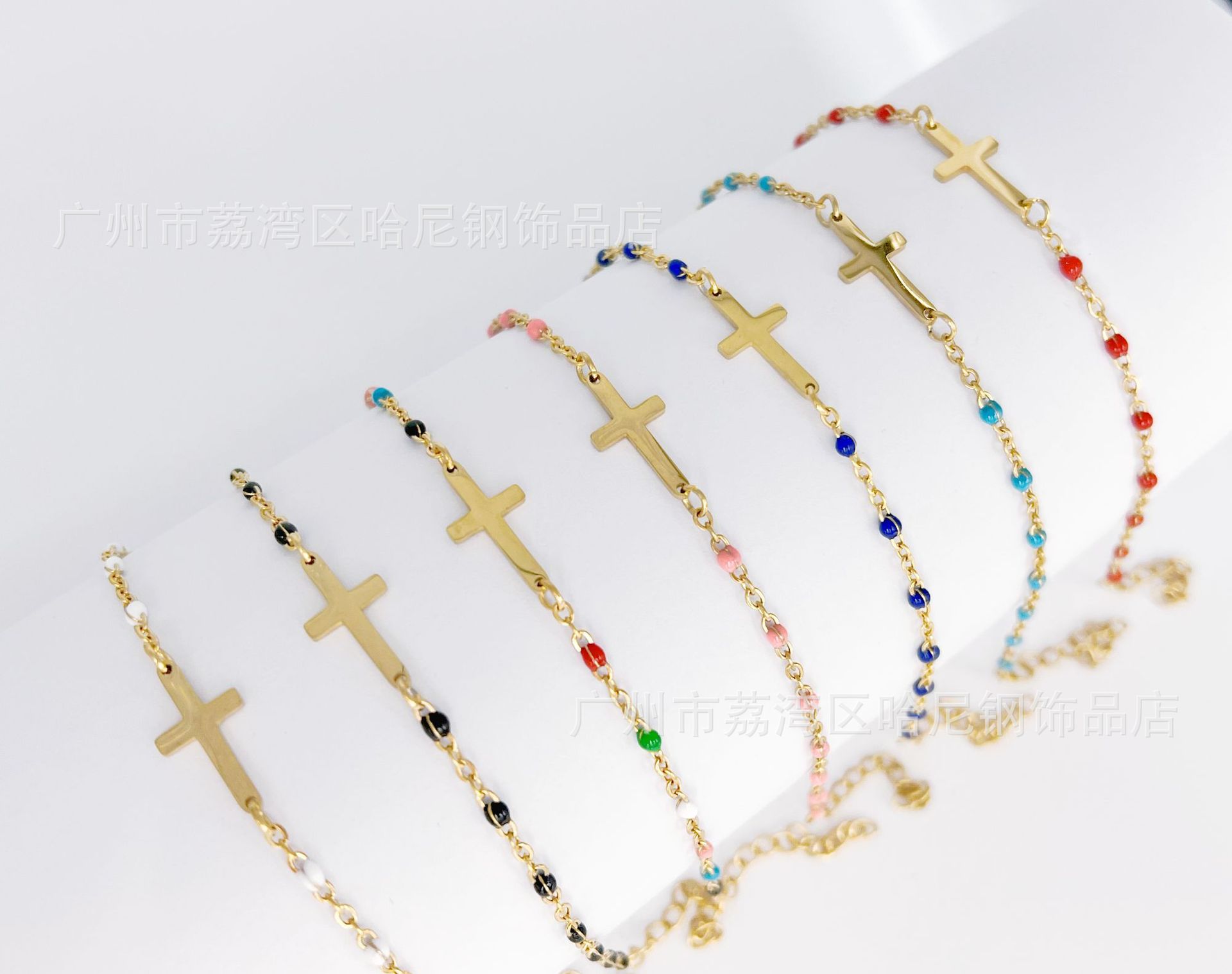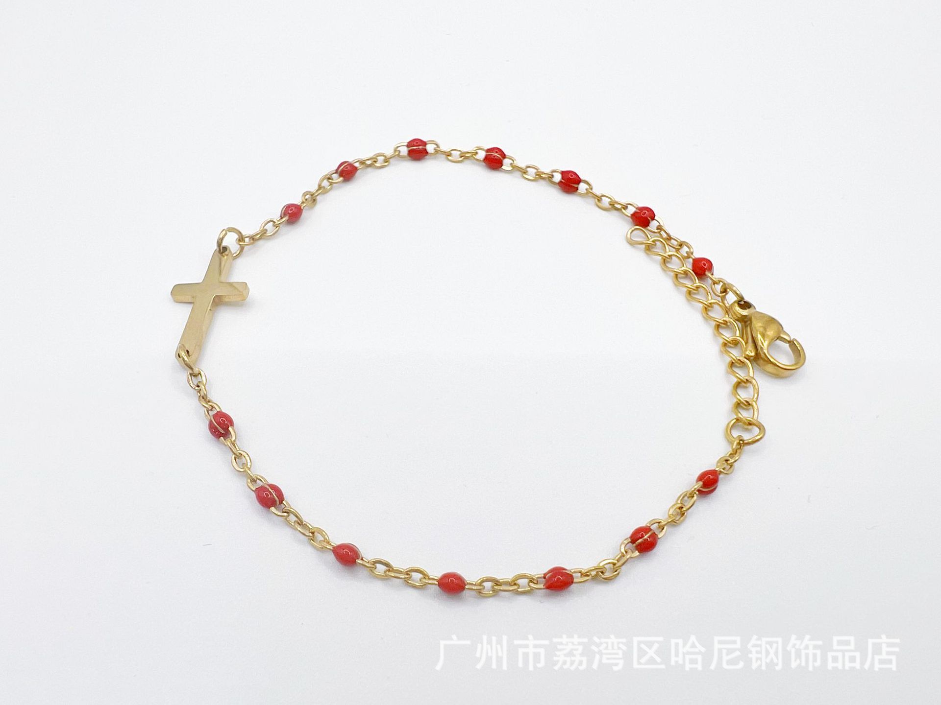 欧美风新款不锈钢十字架滴油手链 宗教图腾滴油手链 女士饰品现货