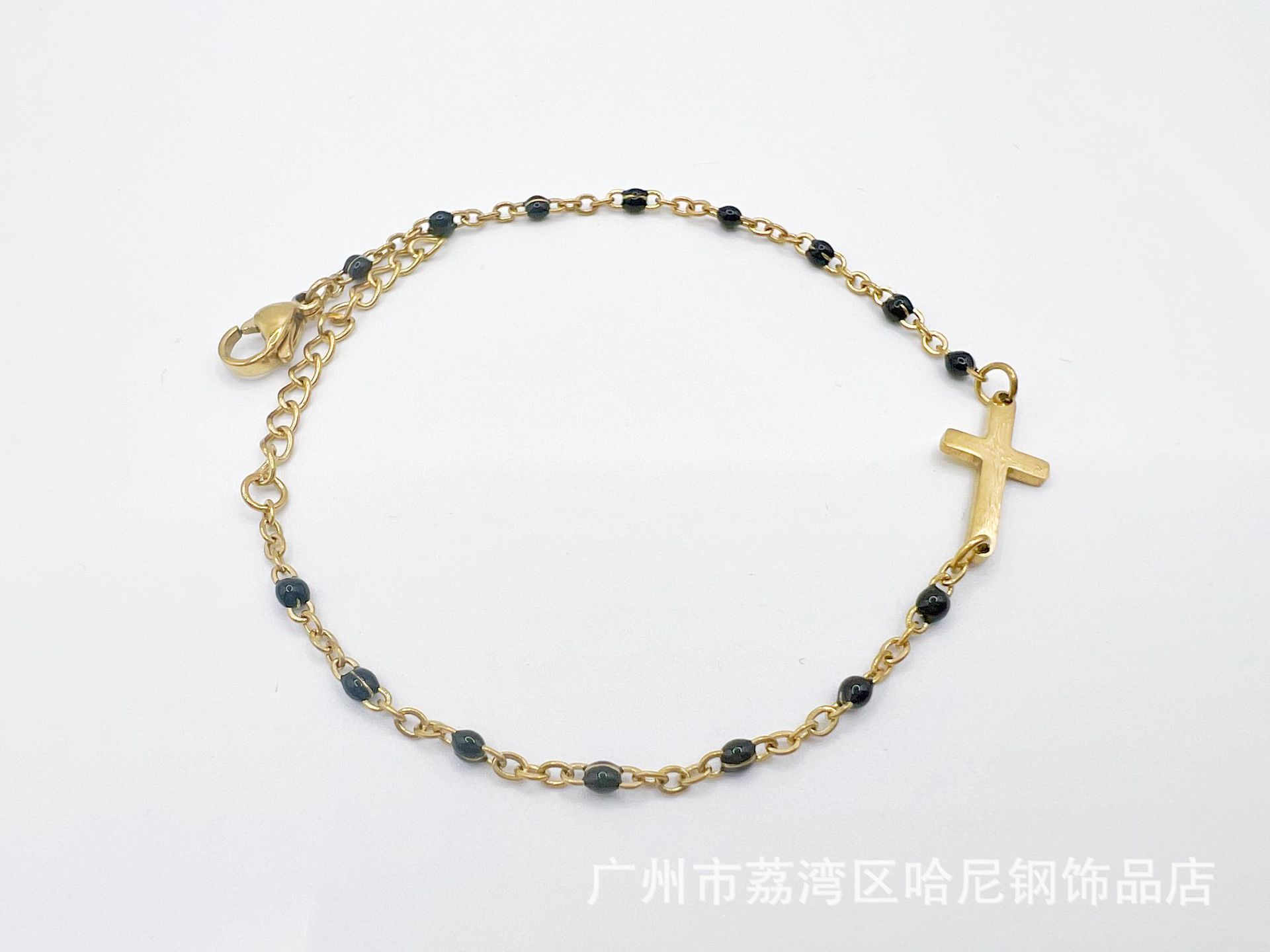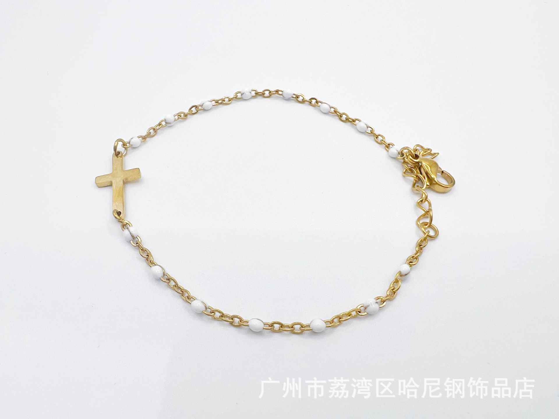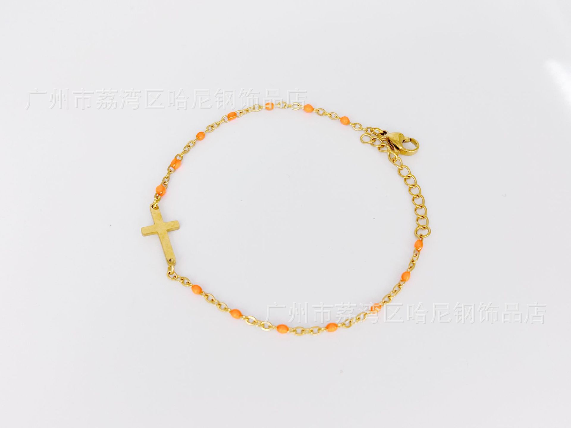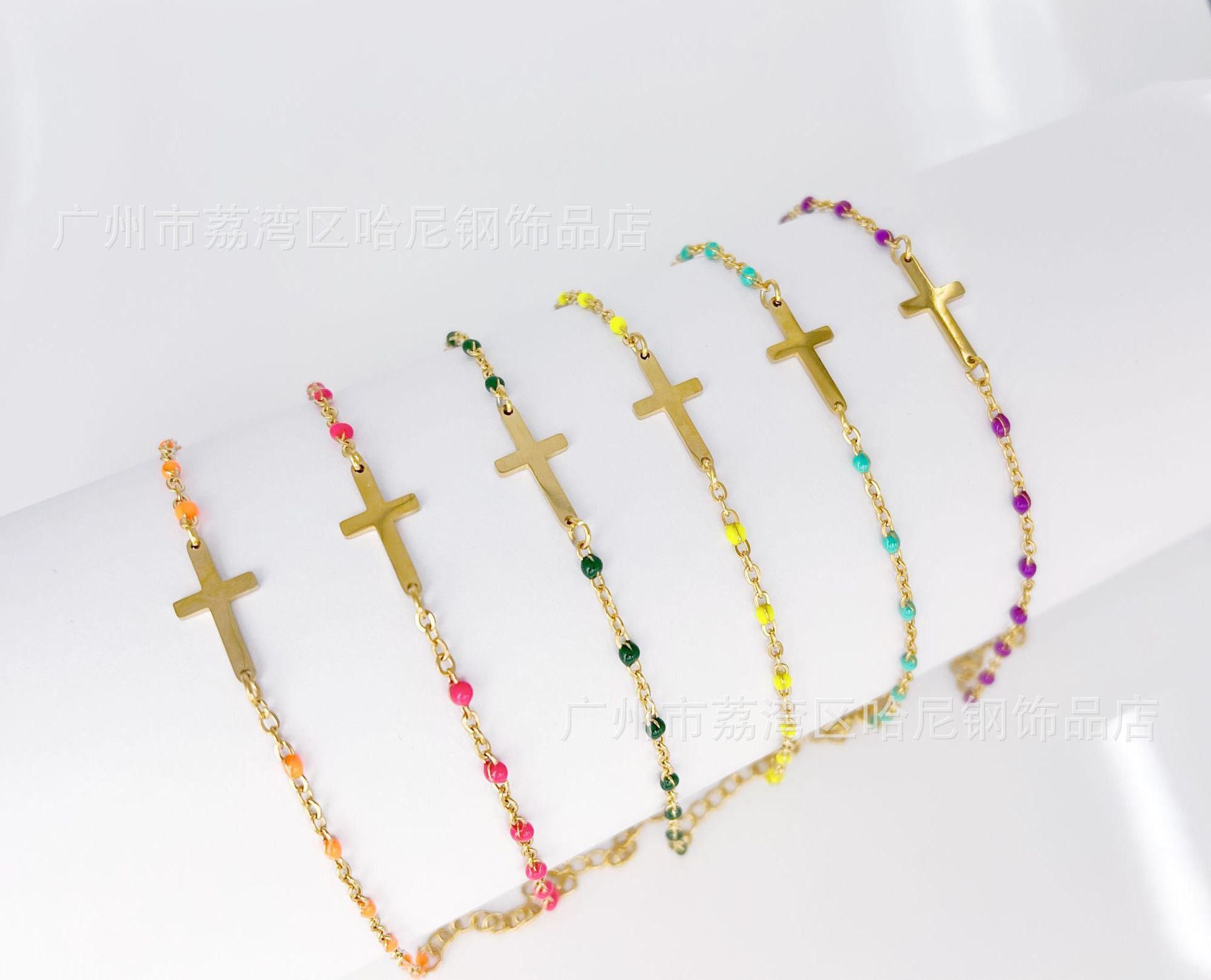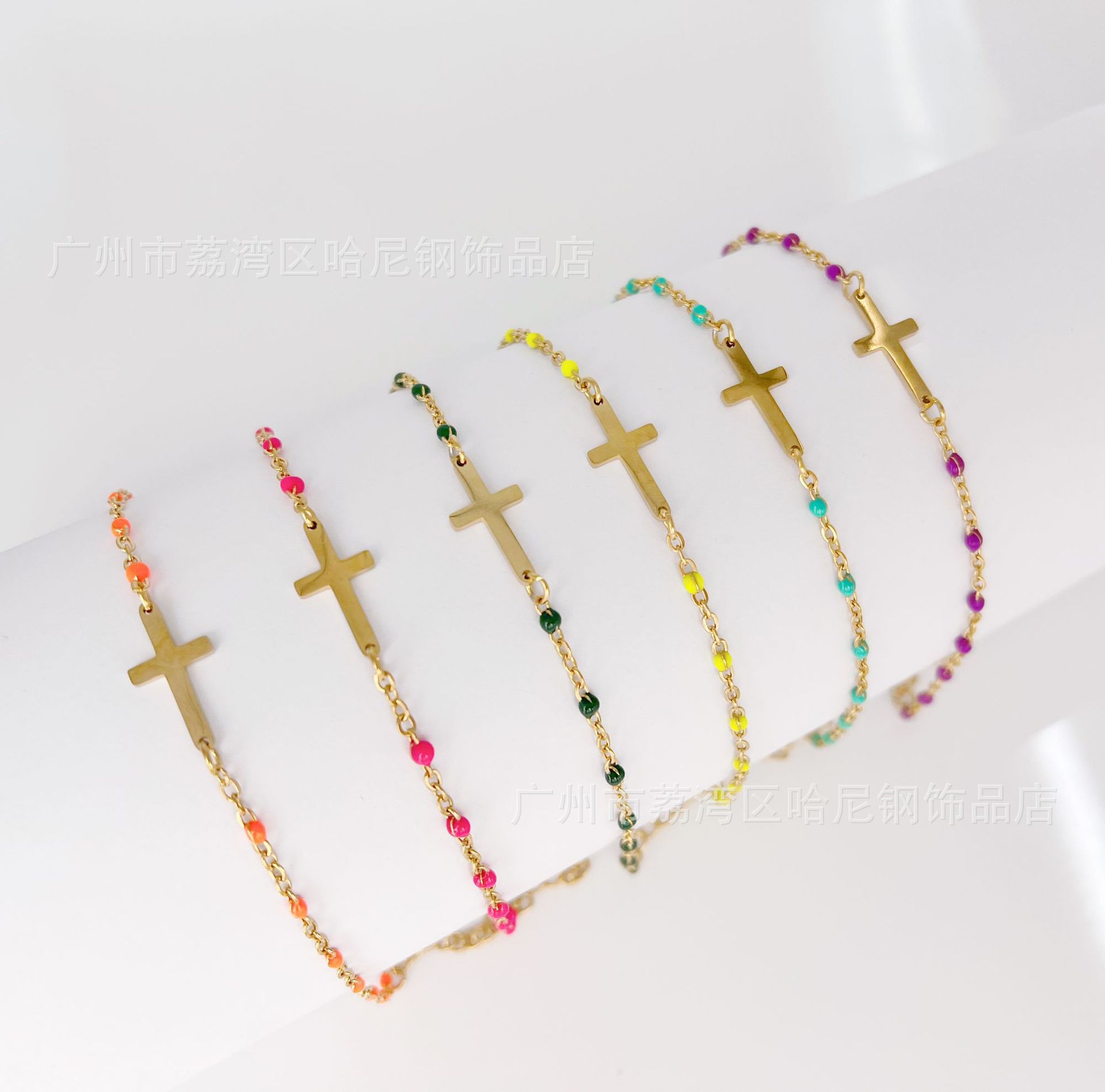 欧美风新款不锈钢十字架滴油手链 宗教图腾滴油手链 女士饰品现货