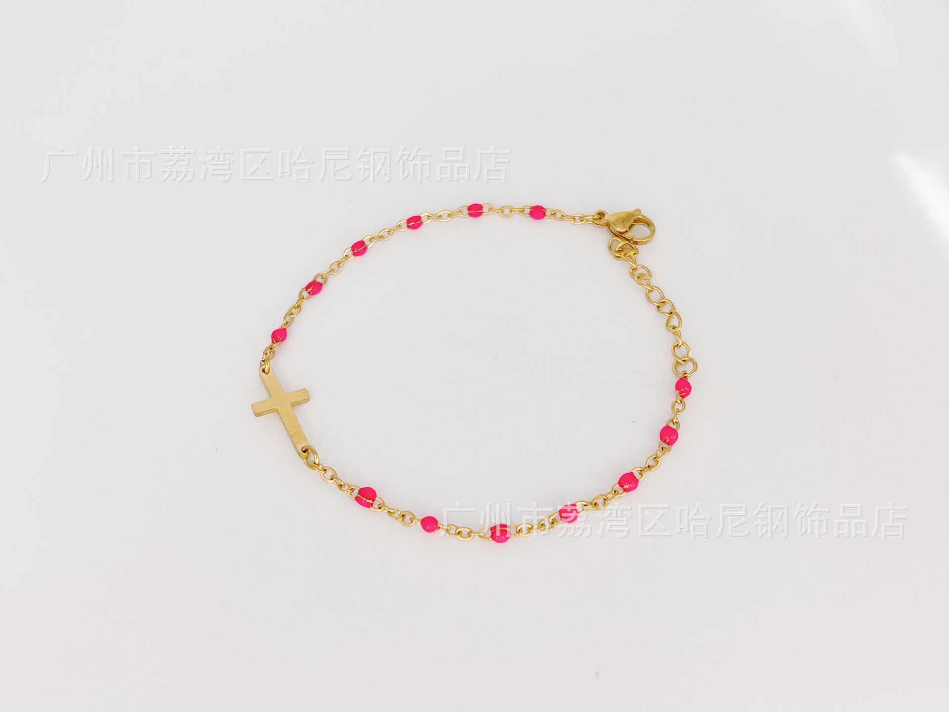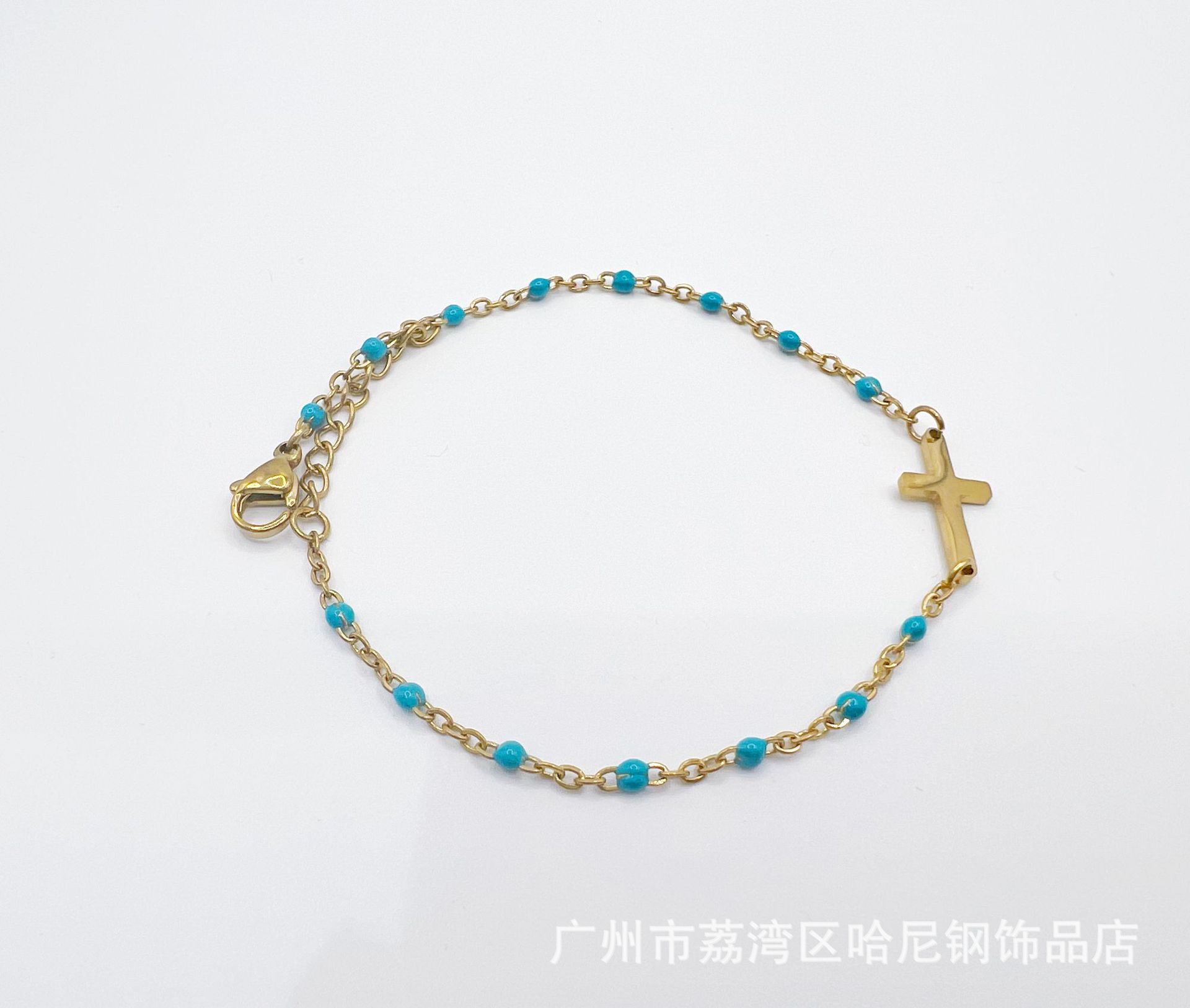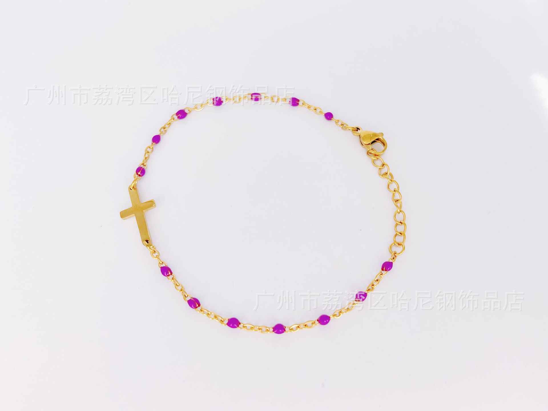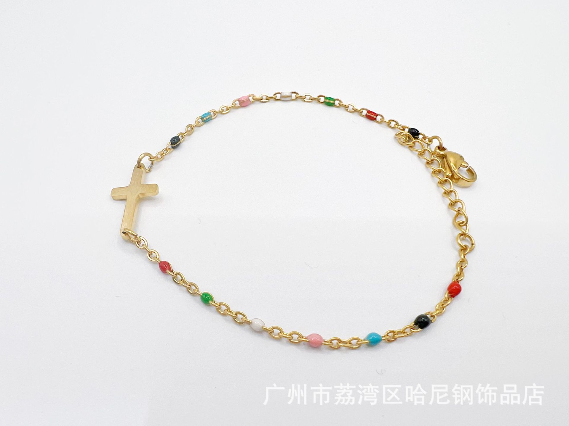 欧美风新款不锈钢十字架滴油手链 宗教图腾滴油手链 女士饰品现货
