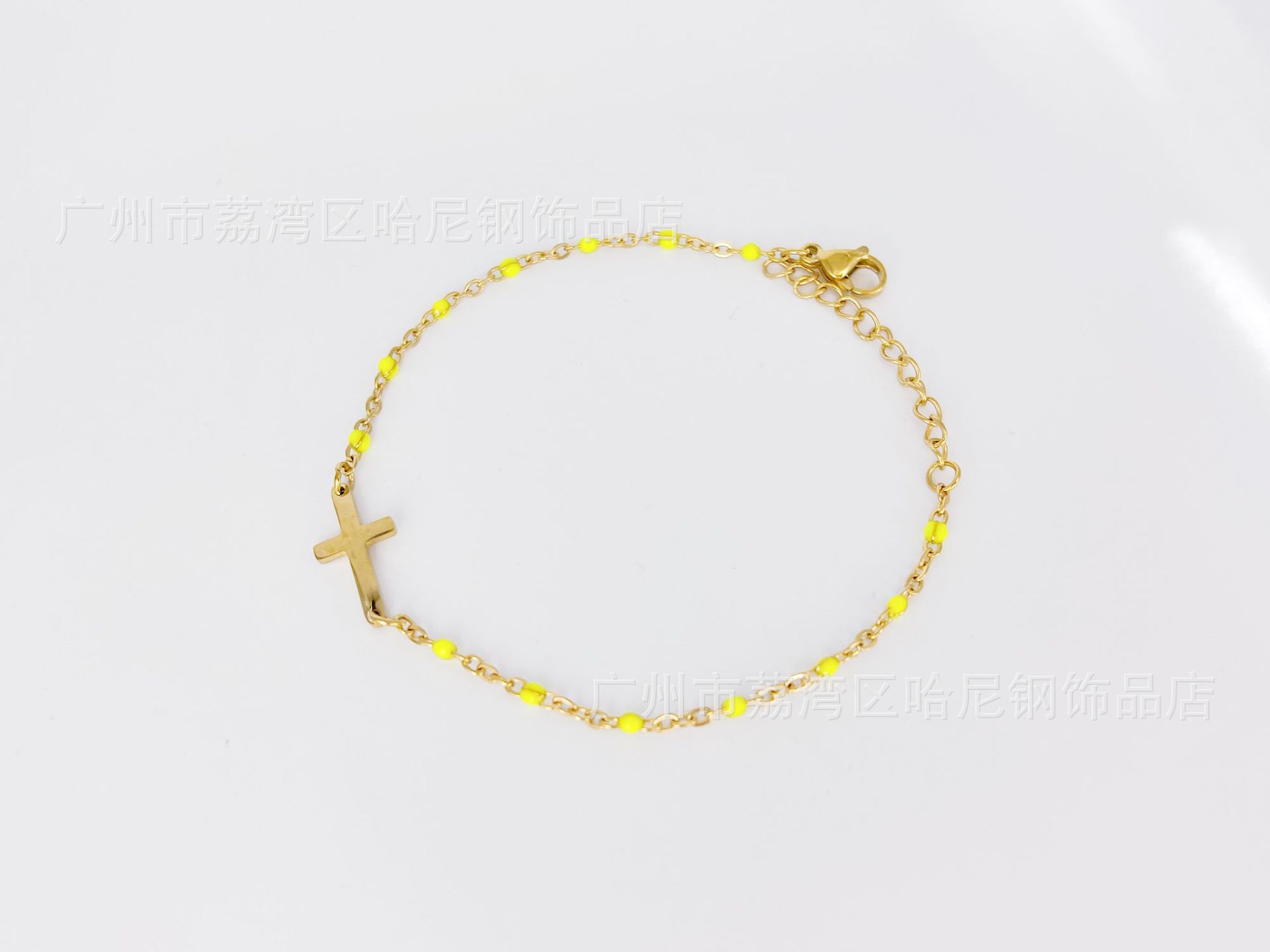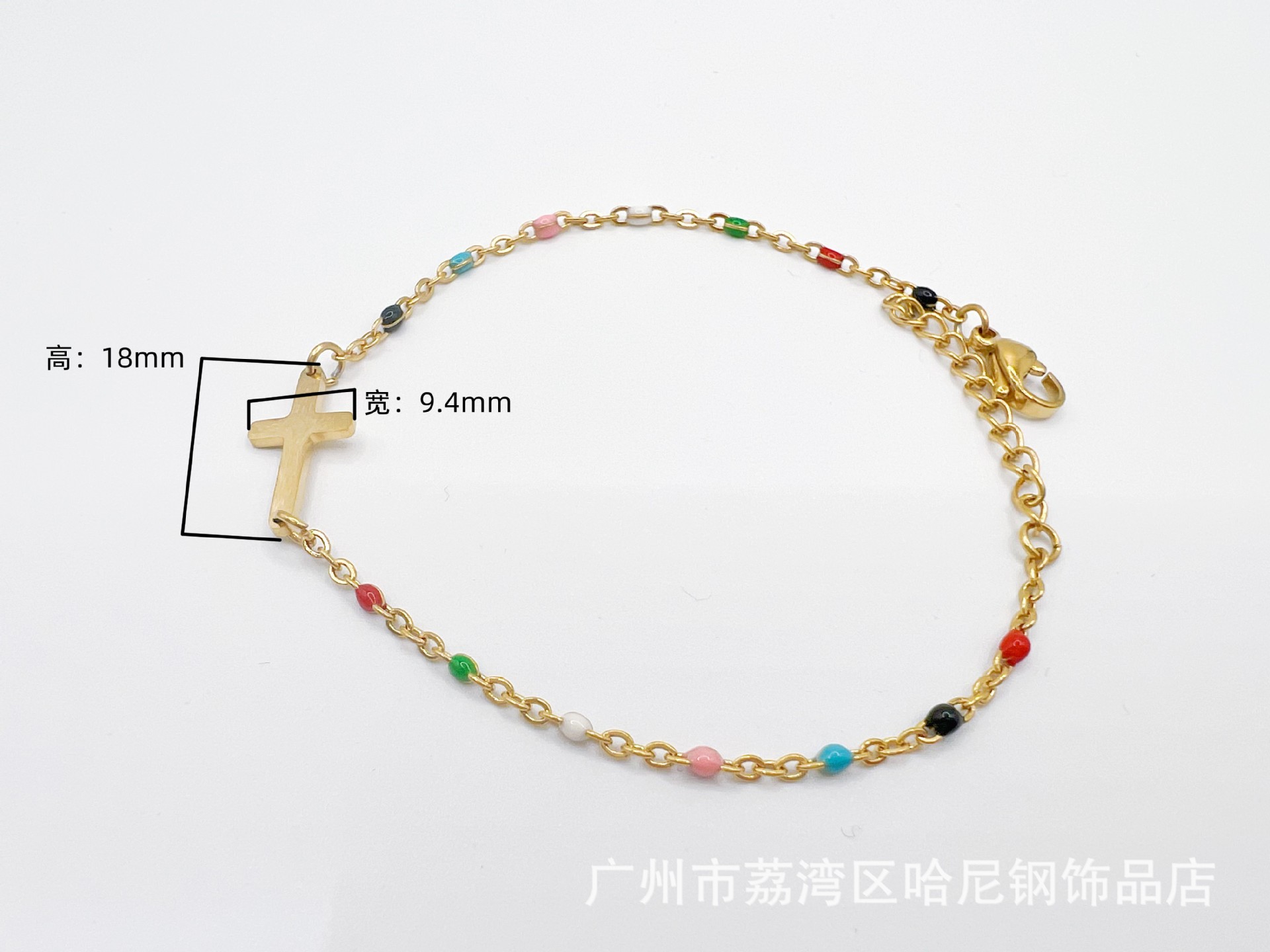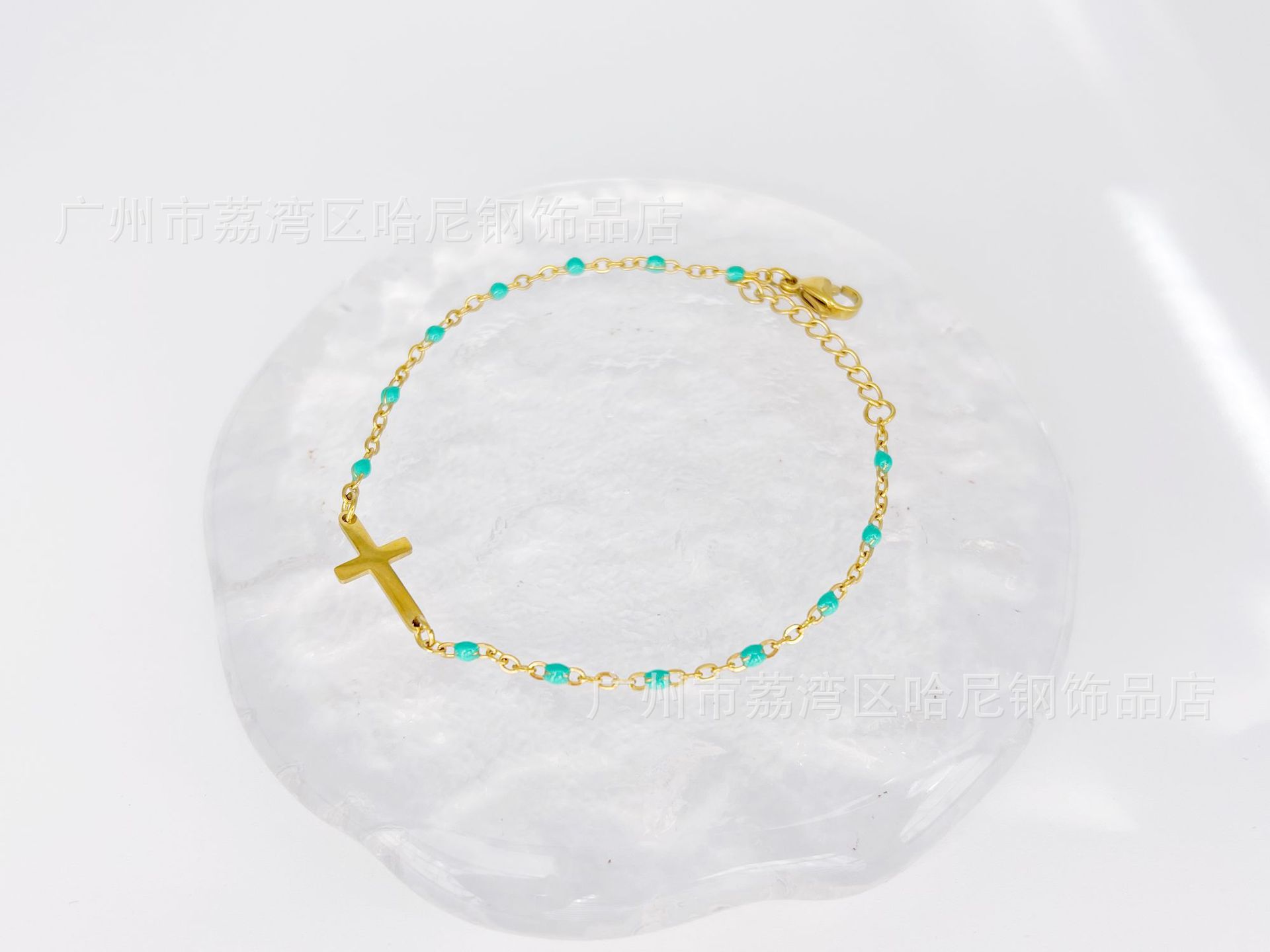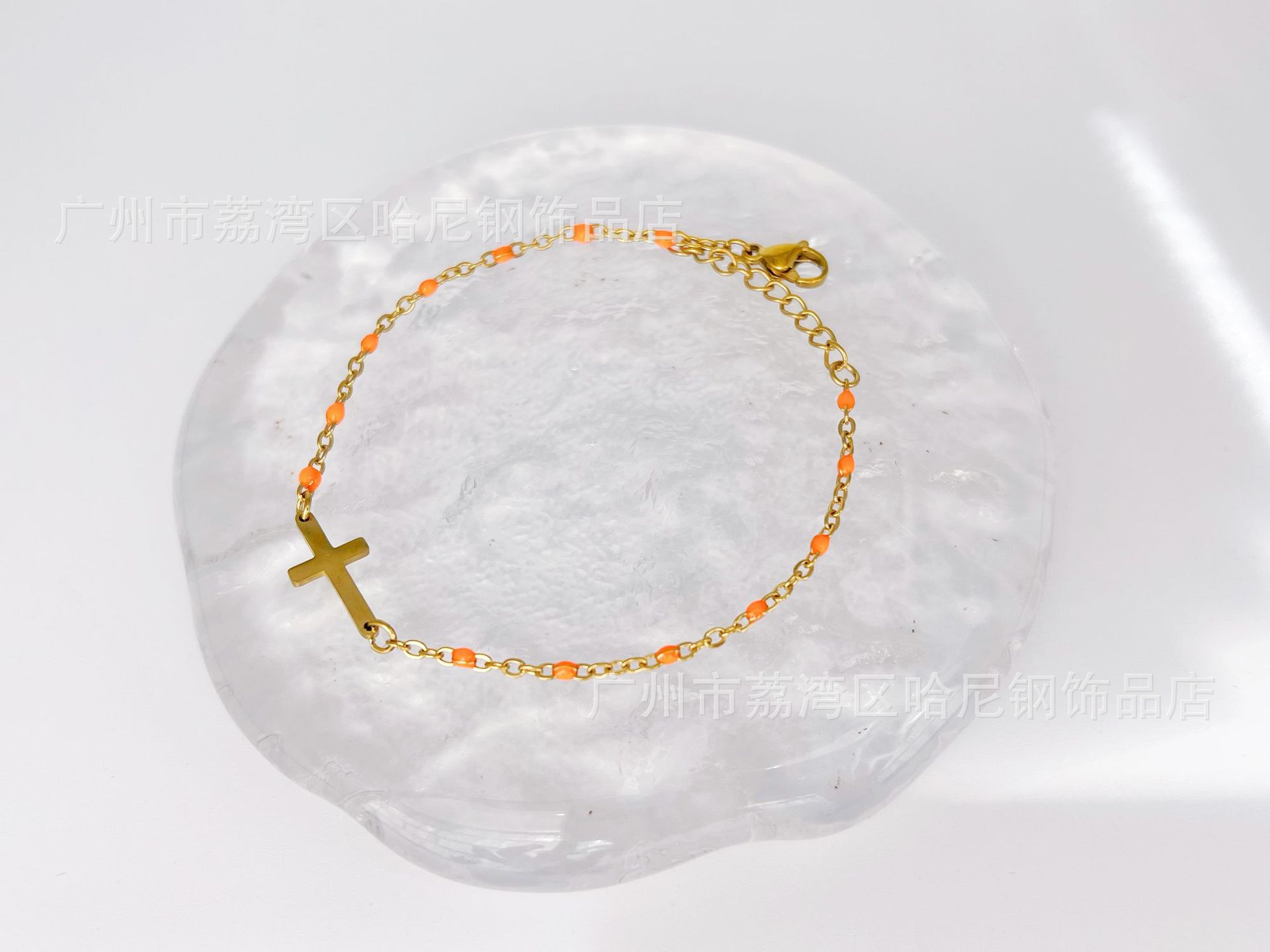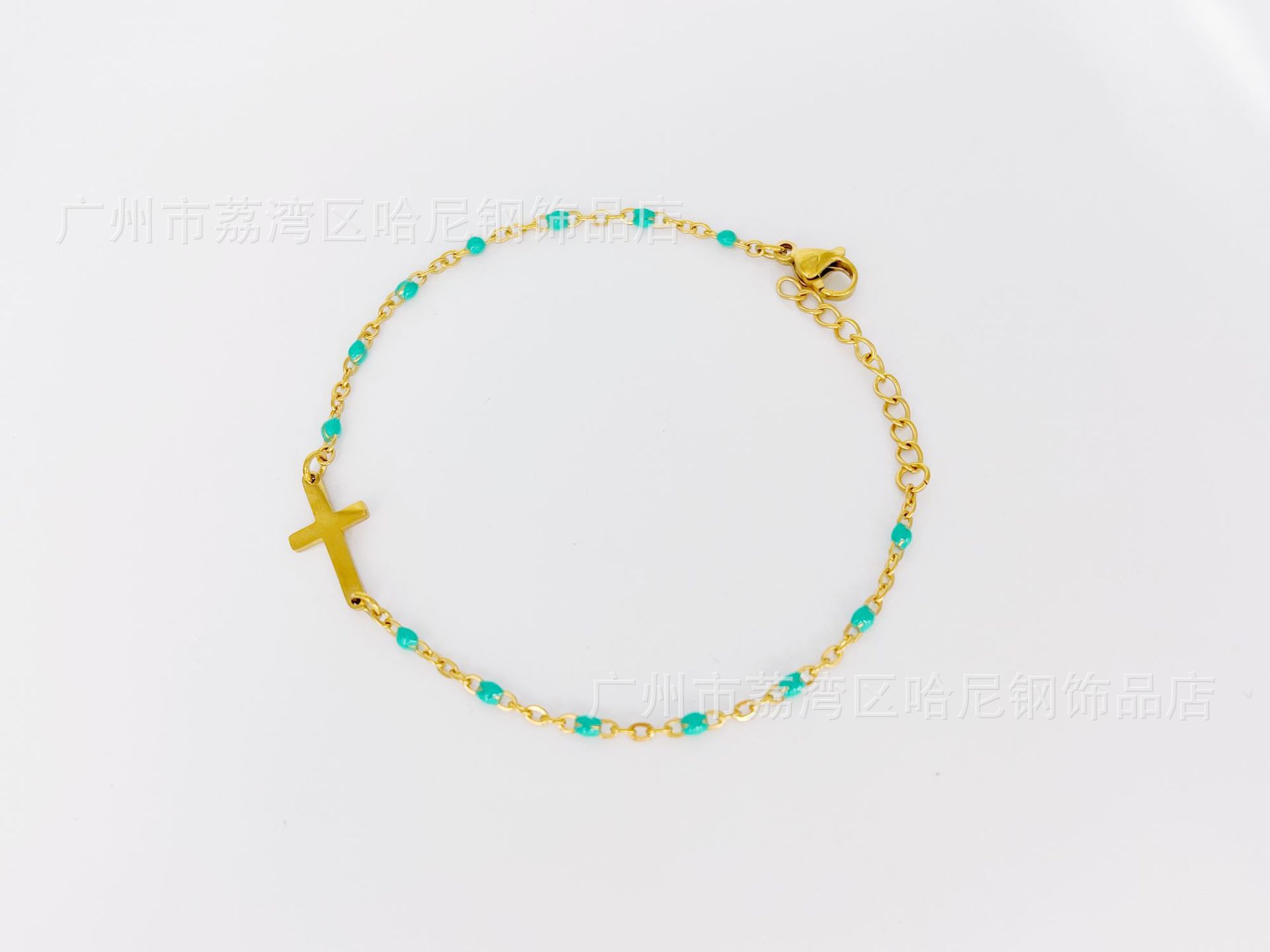 欧美风新款不锈钢十字架滴油手链 宗教图腾滴油手链 女士饰品现货