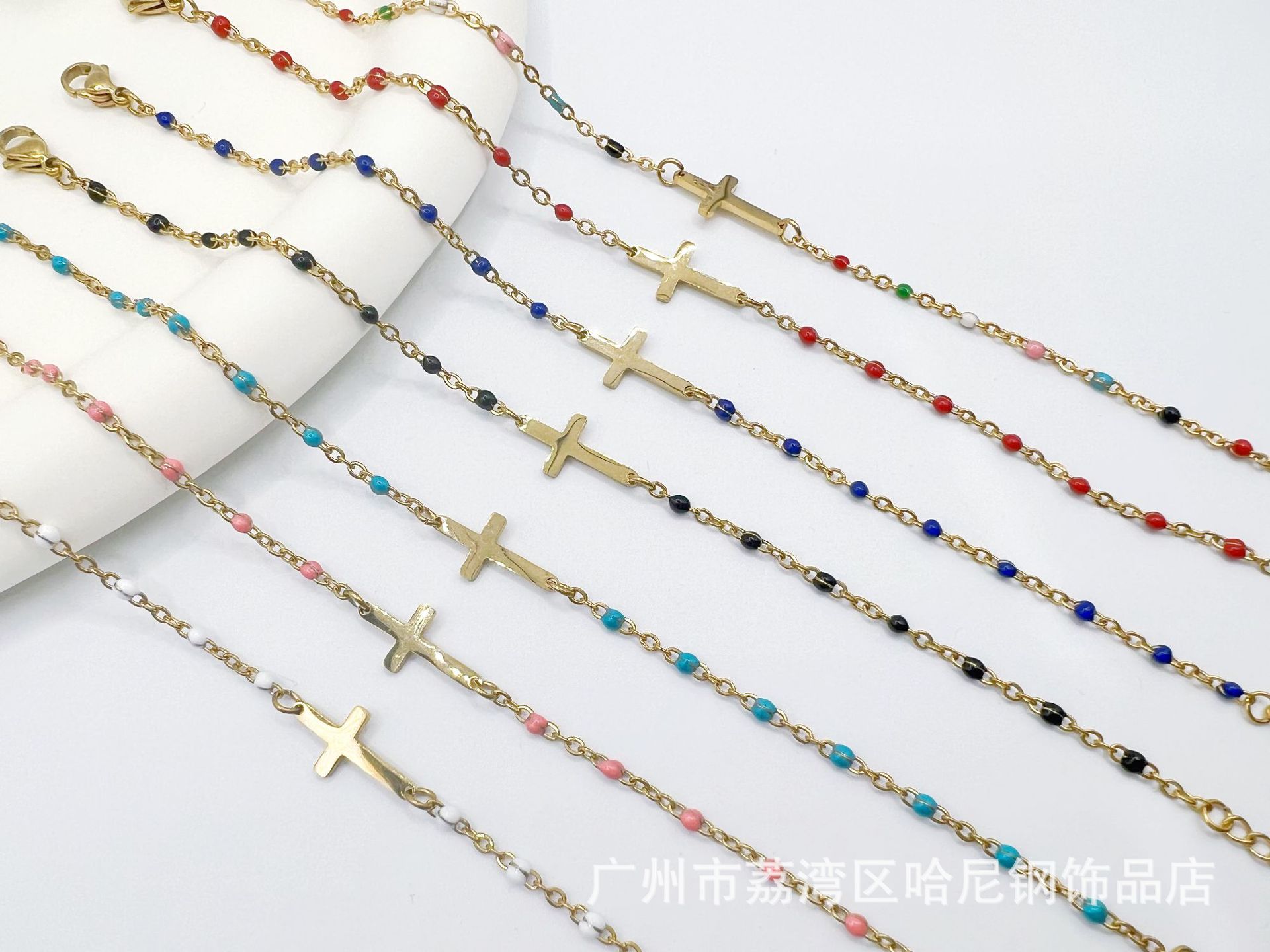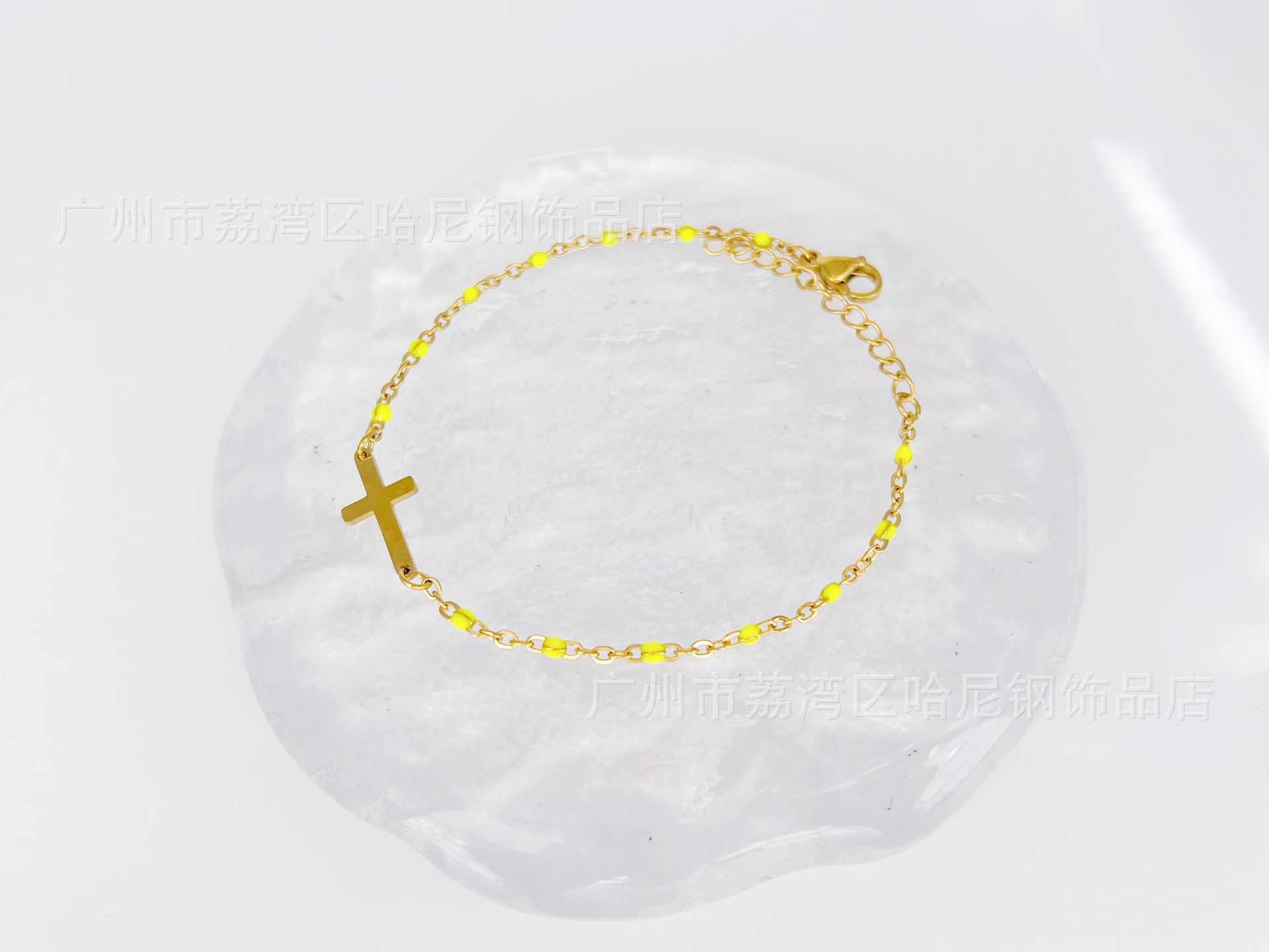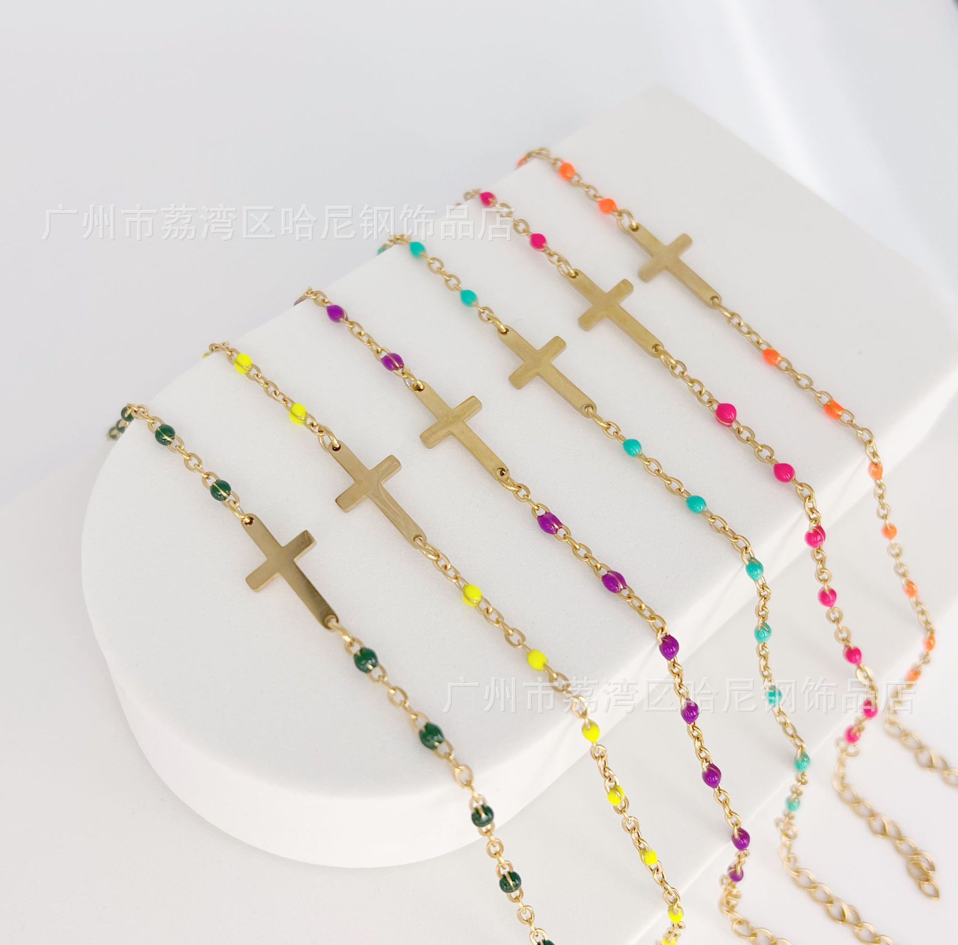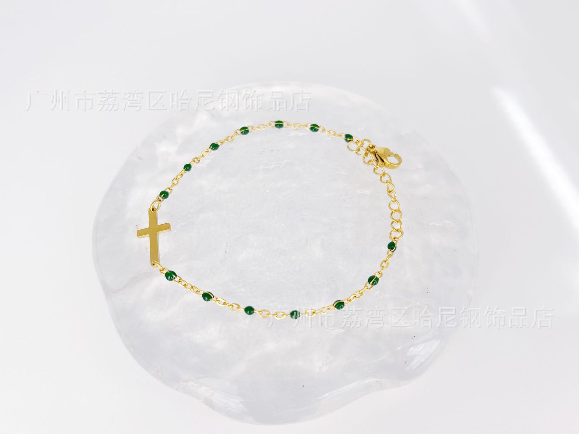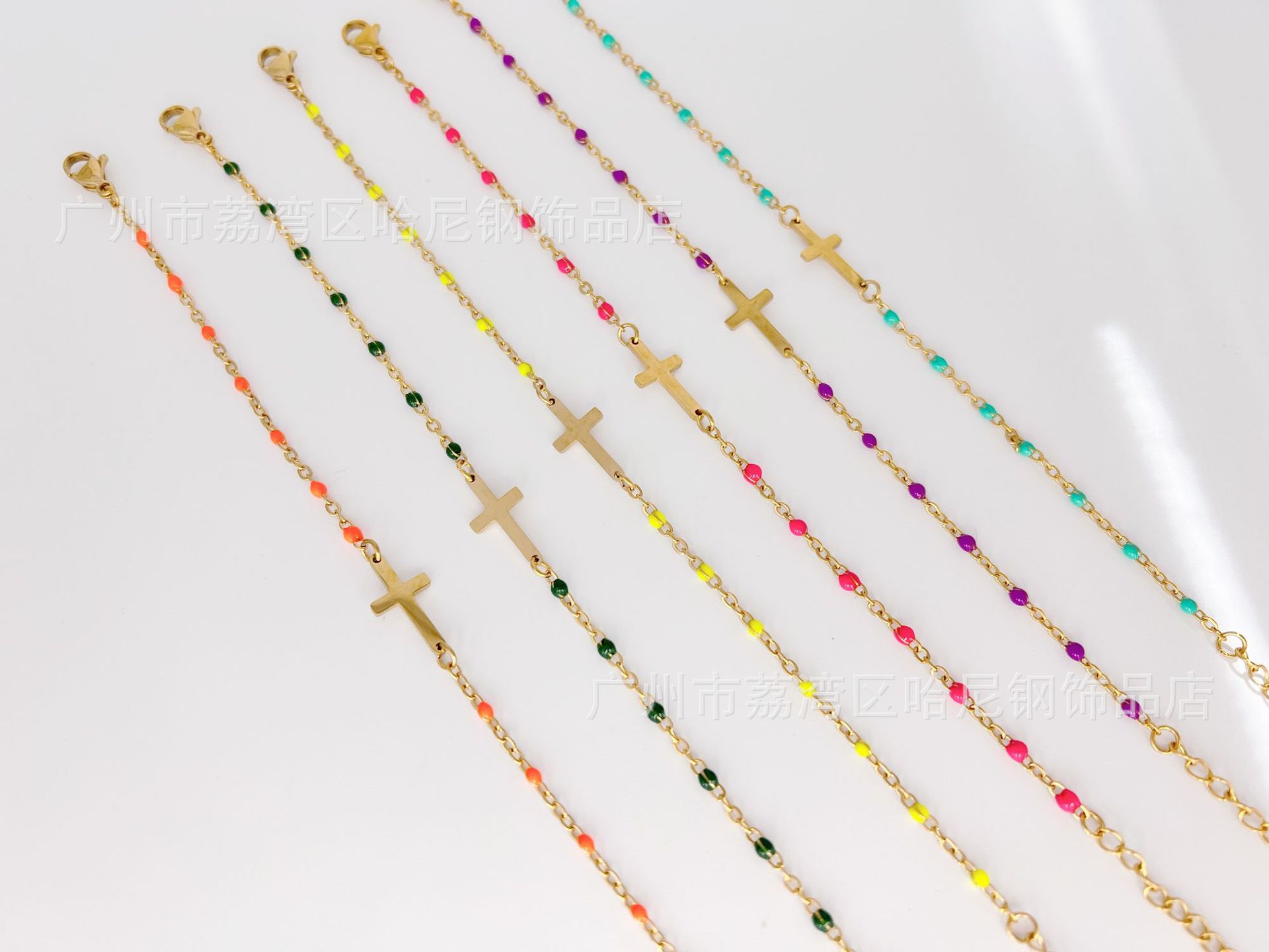 欧美风新款不锈钢十字架滴油手链 宗教图腾滴油手链 女士饰品现货