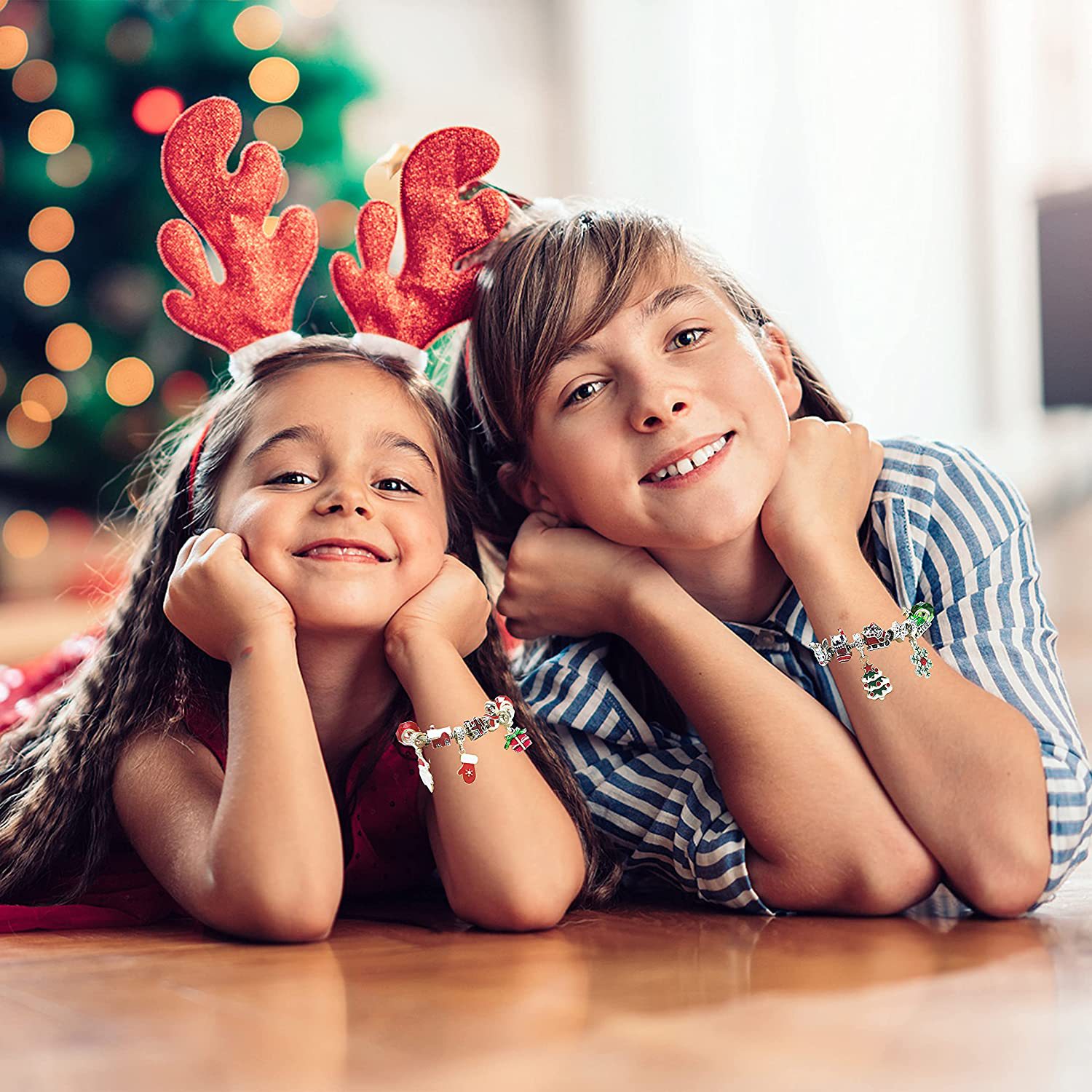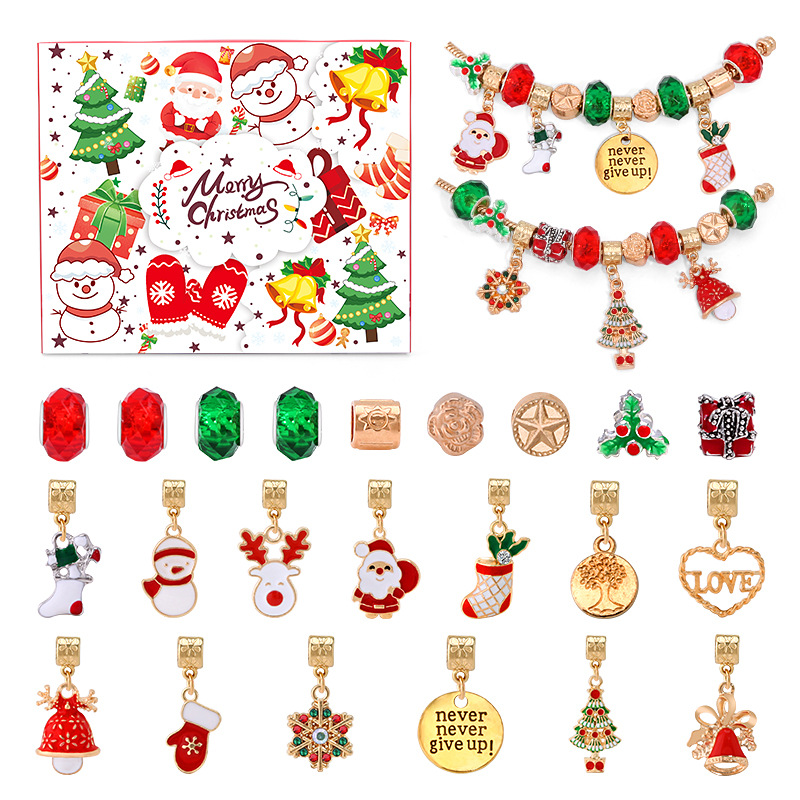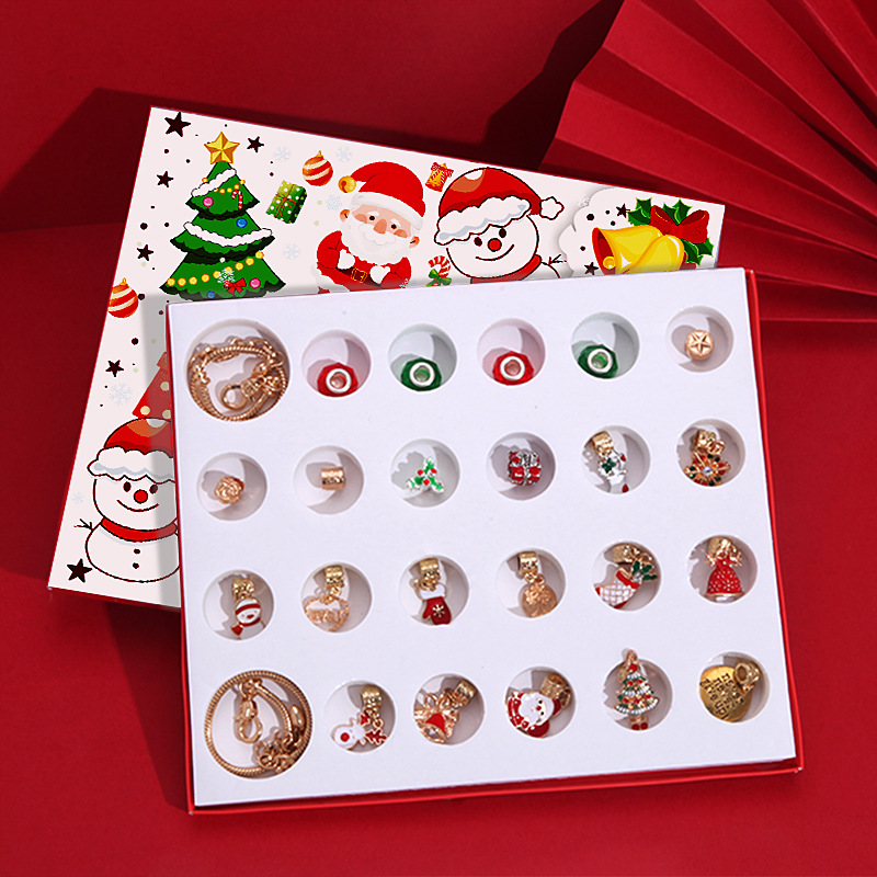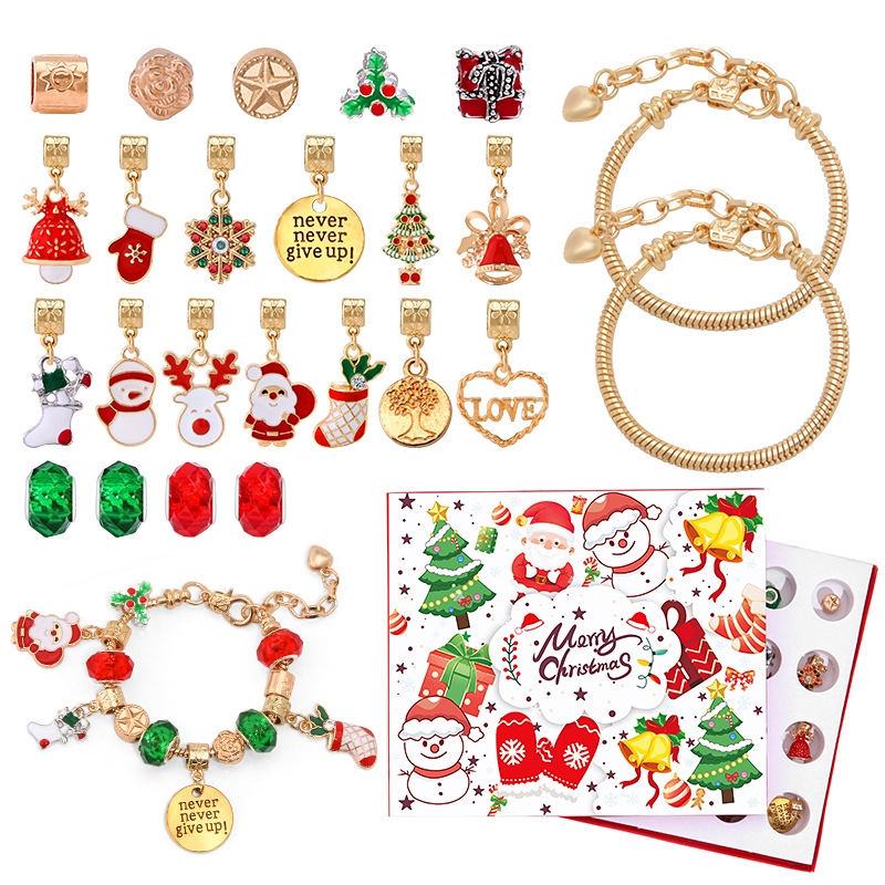 亚马逊热卖圣诞降临节24格日历倒数diy儿童手链惊喜盲盒金色套装