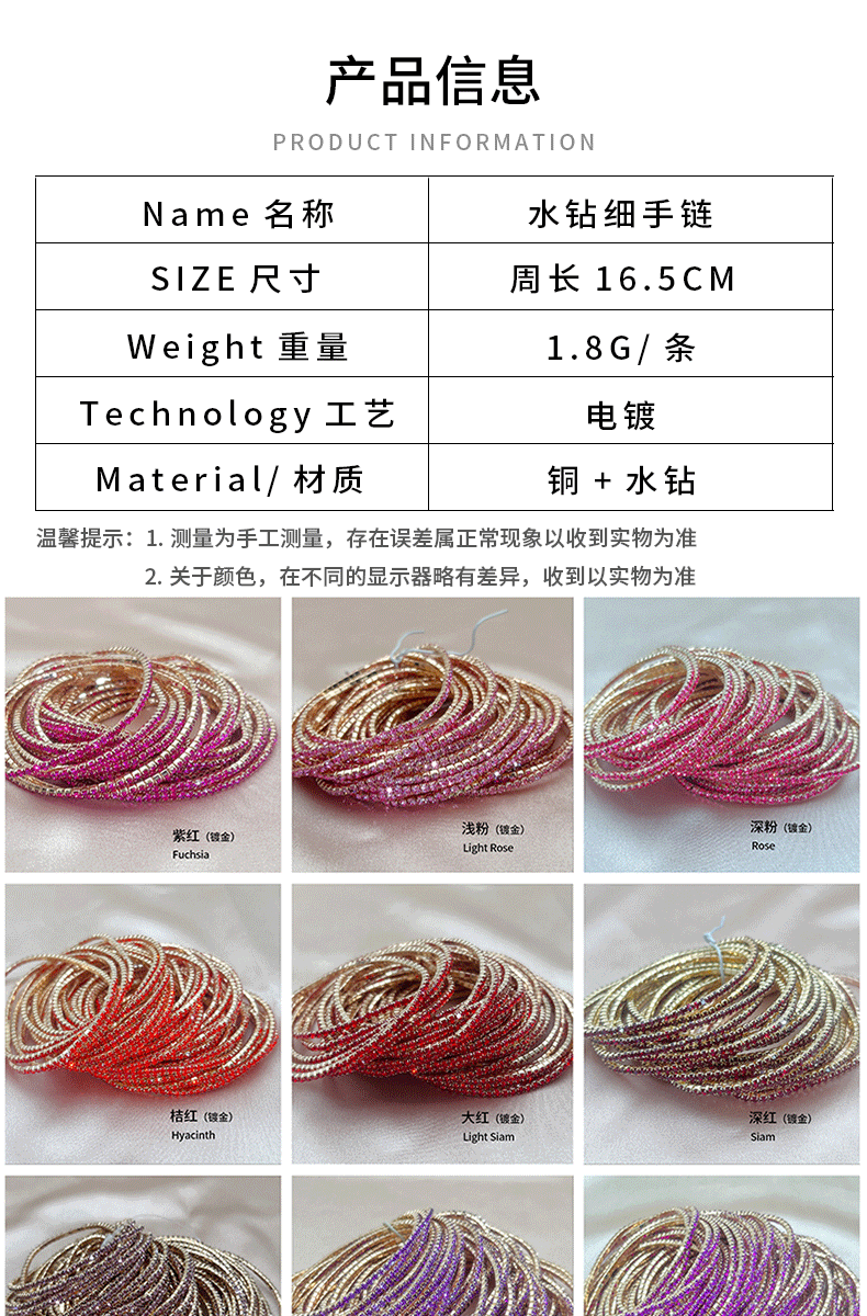 tennis网球镶钻爪链水钻弹力细手链百搭手镯欧美热销2M单色颜色全