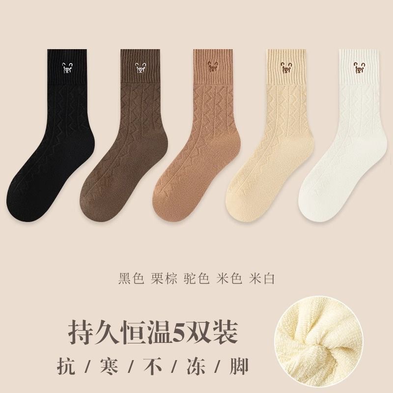 秋冬袜子女小熊中筒袜加厚毛圈袜日系地板袜可爱毛巾袜保暖雪地袜