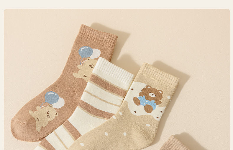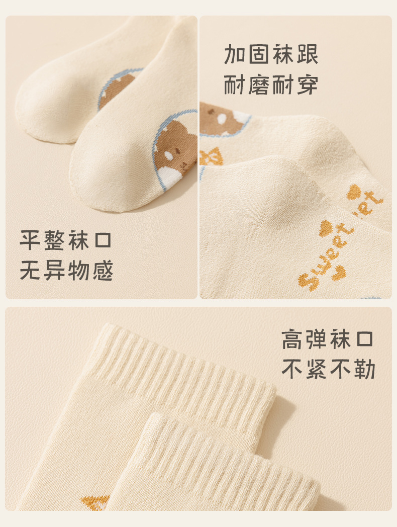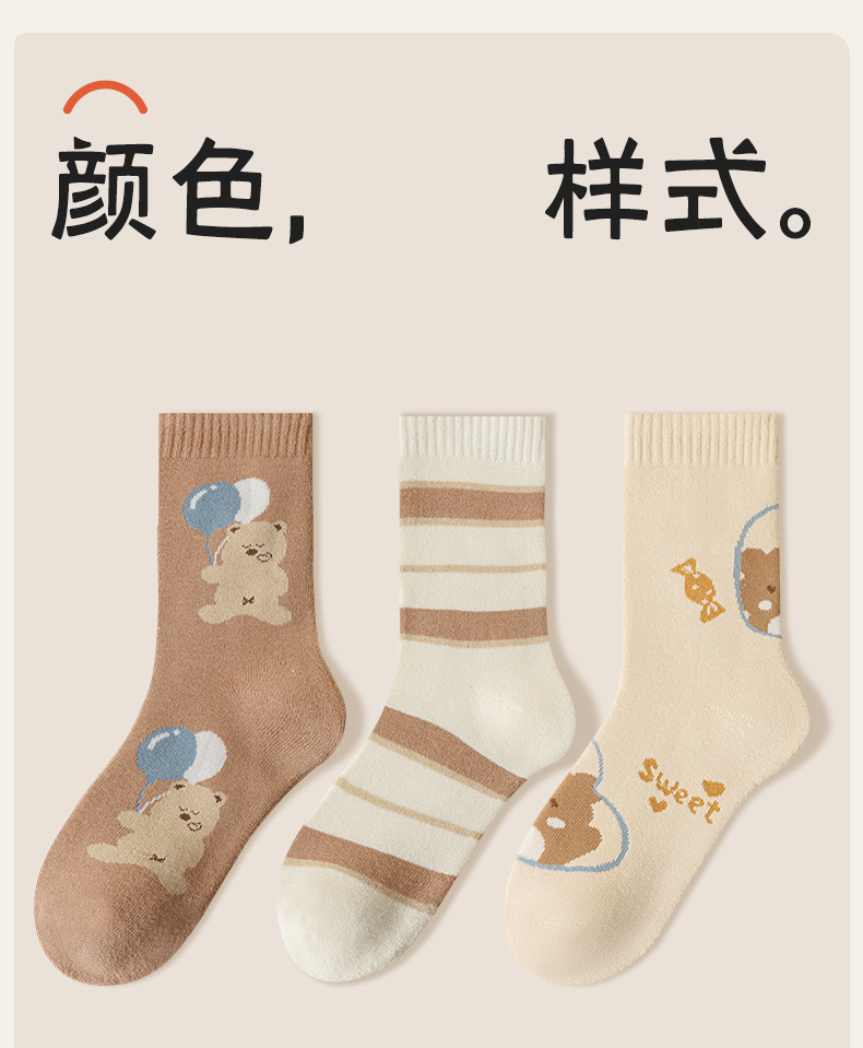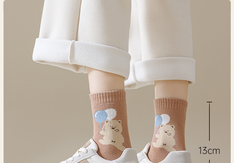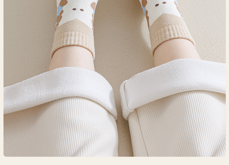 袜子女冬季加厚保暖毛圈袜女士小熊中筒月子袜冬天地板毛巾袜批发